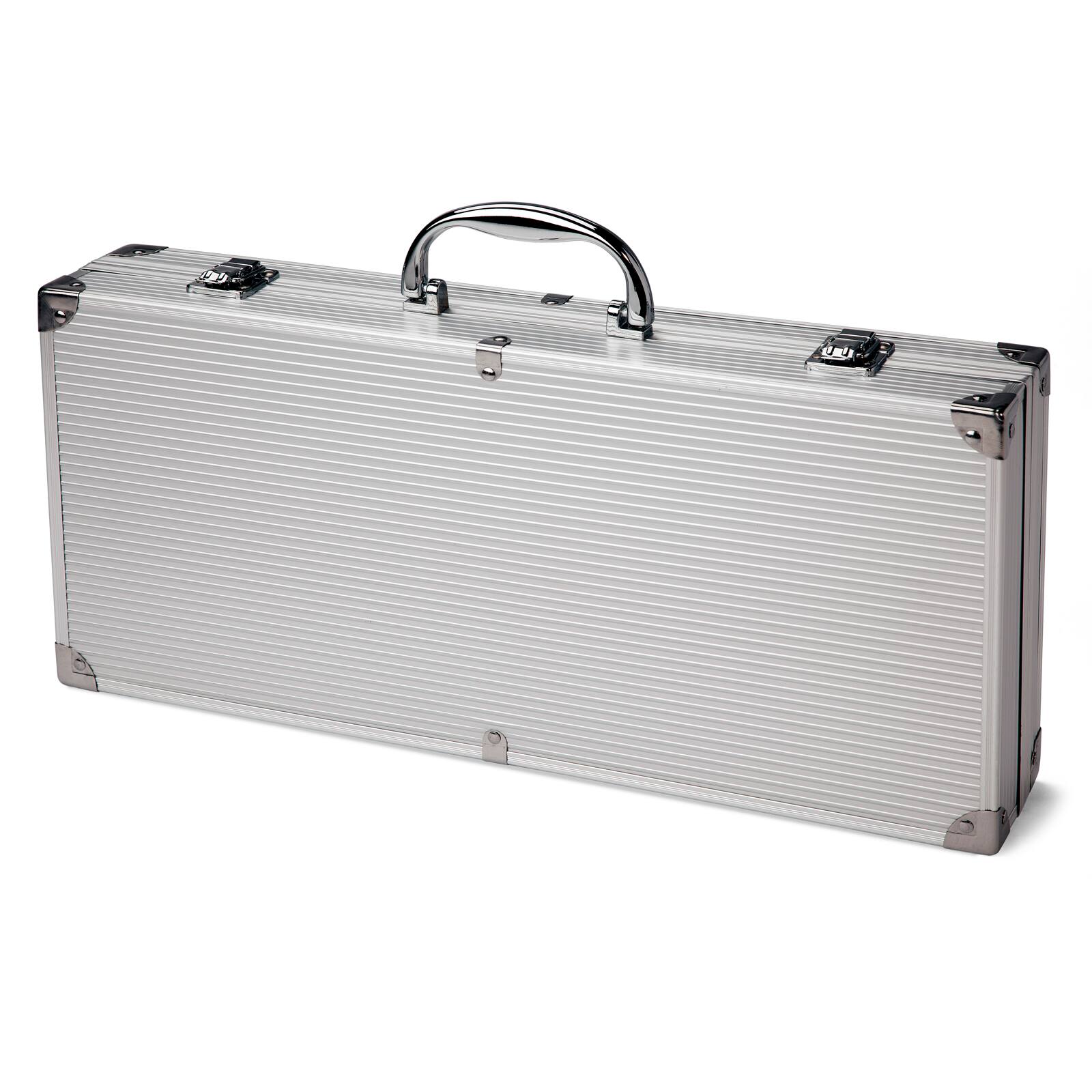 The Cuisinart 20 Piece Deluxe Grill Set provides you with all the essential grilling tools and also includes a bonus Digital Temperature Fork! And this 20 piece set conveniently comes in a stylish and durable aluminum carrying case. These grilling tools will be your best friend at the grill and the digital temperature fork will take the guesswork out of grilling. You’ll even be able to grill at night since the temperature fork has an integrated LED light that shines brightly down on your food. And with a backlight display, timer function, and an alarm that alerts you when food is done, you will have all of your bases covered. Professional stainless steel design and Cuisinart quality make this 20 piece tool set the perfect set for anyone, whether he or she is an amateur griller, an average seasonal griller, or a professional chef.