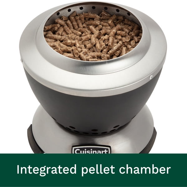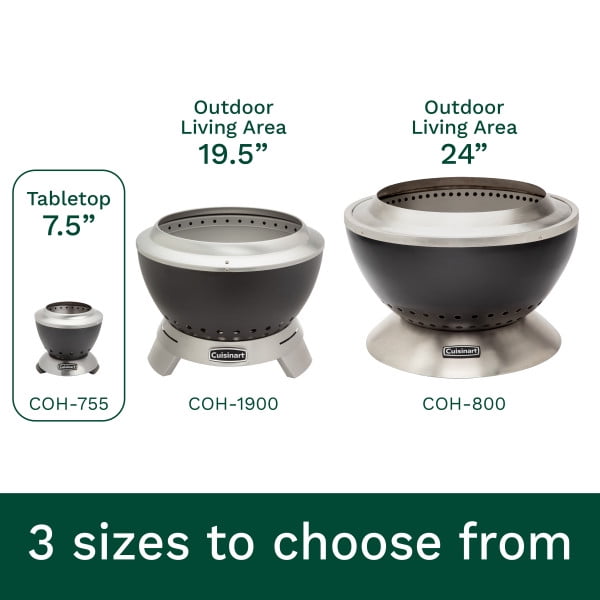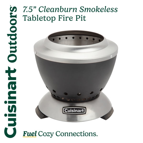 Take the warmth and ambiance of a fire wherever you go with the highly portable Cuisinart Cleanburn Smokeless Tabletop Fire Pit. This compact, 7.5-inch fire pit delivers the high heat of a traditional fire without the smoke. Its dual-fuel capability allows you to use wood pellets or mini firewood logs for a clean-burning flame that’s perfect for making s’mores or enjoying cozy evenings outdoors. The double-walled, stainless-steel design promotes superior airflow for quick ignition and efficient heating, while the patented removable ash base ensures easy cleanup in just two steps. Weighing just 2 lbs., it’s travel-friendly and includes a durable nylon carrying bag for effortless transport to your next adventure. Designed for tabletops, this sleek fire pit adds a modern touch to any outdoor space with raised legs providing additional heat dissipation. Whether for a patio dinner or a camping trip, the Cleanburn Smokeless Tabletop Fire Pit is the perfect companion for creating warm memories.