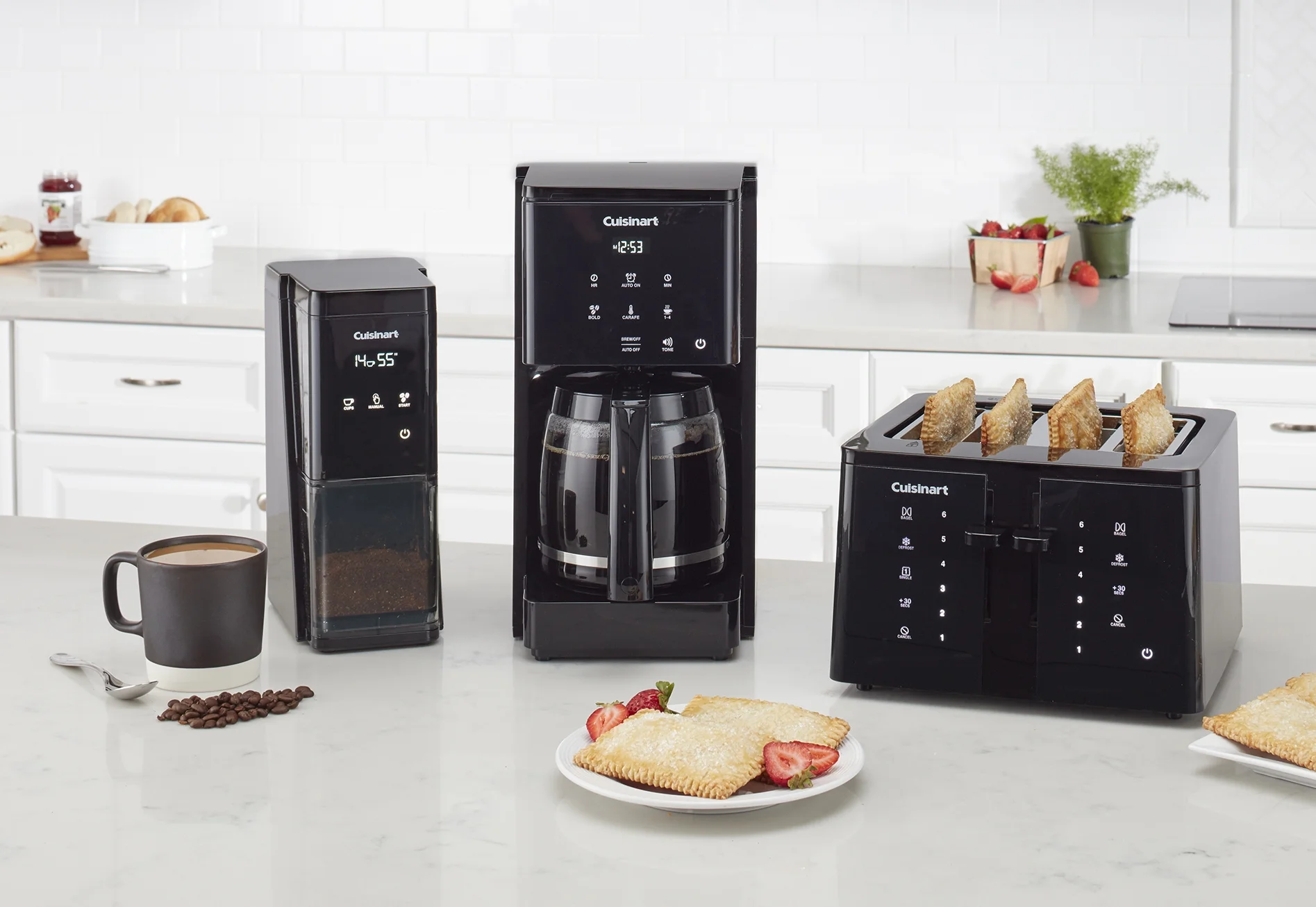 Cuisinart launches its new T Series line with a coffeemaker that is going to change the dynamic of today’s kitchen. Intuitive touchscreen controls let coffee lovers tap icons to choose start time, shutoff time, number of cups, and strength settings. When the coffeemaker is not in use, the LCD screen goes to sleep – creating an ultra-sleek look in your kitchen. Simply touch the power icon to wake up the screen when you are ready to brew! With PerfecTemp® Technology, this premium coffeemaker even brews hotter, and has two filters that protect the rich coffee flavor. Its superb coffee and a brand new look kitchens are going to love!