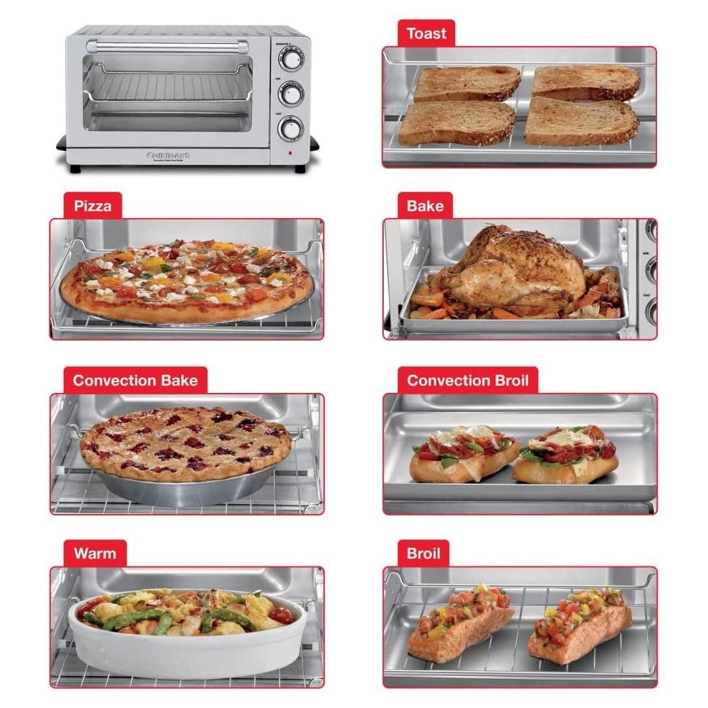 The best kinds of countertop ovens are affordable convection ovens with broilers. Bringing the classical approach to countertop ovens, the Cuisinart Convection Toaster Oven Broiler in Stainless Steel is meant to bring style and dependability to your kitchen! Made from stainless steel, its industrial styling features a 0.6 cubic foot capacity, large enough to fit a 12″ pizza or at least 6 slices of toast. Running off of a whopping 1800 watts of power, it does what a conventional oven can do, including bake, broil, toast, warm, convection bake, and convection broil. It even offers precise toast shade control, allowing you to perfectly make your favorite level of toast, whether you are making grilled cheese sandwiches or Texas garlic toast for your spaghetti and meatballs. With a glass window that allows you to monitor the cooking process without having to open the door, you can expect perfection every time. When it’s time to clean up, it won’t be a hassle since the interior features a nonstick coating and a removable crumb tray. Does a countertop oven get any better from this point? Backed by a three-year warranty, the Cuisinart Convection Toaster Oven Broiler in Stainless Steel is the one to have set up in your fashionable kitchen! Make pizzas, pies, cinnamon rolls, toast, roasted chicken and so much more! Cuisinart Convection Toaster Oven Broiler (Stainless Steel) Features: Color: Stainless Steel Durable stainless steel construction BPA-free material Non-stick interior Easy-to-read LED indicator Multiple cooking functions including Bake, Convection Bake, Broil, Convection Broil, Toast, and Warm Slide-out crumb tray for easy cleanup Precise toast shade control Adjustable temperature up to 500°F Glass door for quick viewing Power: 1800 watts Interior dimensions: 0.6 cubic feet Length: 19.1″ Width: 15.5″ Height: 9.8″ Wipe down with a damp cloth Limited 3-year manufacturer warranty Imported Shop more Cuisinart!