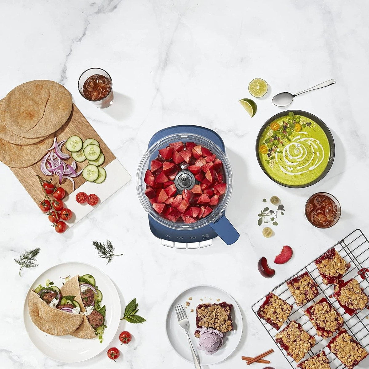 Inspired to make homemade roasted garlic hummus, oatmeal peanut butter energy bars, or even some old-fashioned mashed potatoes? If so, then the Cuisinart Core Custom 13 Cup Multifunction Food Processor in Marine Blue will allow you to make either and much more! Made from BPA-free plastic housing, the 13 Cup Multifunction Food Processor features a powerful motor and 13-cup Tritan work bowl to provide the best performance and capacity for larger quantities. You may choose to chop, puree, shred, slice, and more with the included chopping/mixing blade, reversible shredding disc, and adjustable slicing disc. Also included are the small, medium, and large pushers with a bowl lid and seal. There are four control paddles that switch seamlessly from Mix, Low, High, and Pulse to allow you versatility for any food processing job, even for emulsification and gentle mixing. Enjoy the possibilities from vegetable dip and salsa to meatballs and pizza dough! With its sleek and gorgeous design, it will match any decor and style you have going on in your kitchen, as it comes with a removable hub where all accessories may nest together to save space for optimal storage. All pieces and accessories are also dishwasher-safe for easy clean-up. With a three-year manufacturer warranty, the Cuisinart Core Custom 13 Cup Multifunction Food Processor in Marine Blue will guarantee you success in your kitchen, helping you make the dinners you and your family deserve! Cuisinart Core Custom 13 Cup Multifunction Food Processor (Marine Blue) Features: Color: Marine Blue Made from BPA-free plastic housing Features a powerful motor Uses a 13-cup Tritan work bowl with lid and seal to provide the best performance Chop, puree, shred, slice, mix, and more Four paddle controls: Mix, Low, High, and Pulse The sleek and gorgeous design will match any decor and style Comes with a removable hub where all accessories may nest together All removable parts are dishwasher-safe Length: 11″ Width: 7.5″ Height: 15″ Wattage: 650 Watts Cord Length: 30″ 3-year limited warranty Imported What’s Included: Small pusher Medium pusher Large pusher Premium chopping blade Reversible shredding disc Adjustable slicing disc Instructions manual/recipe booklet Shop more Cuisinart!