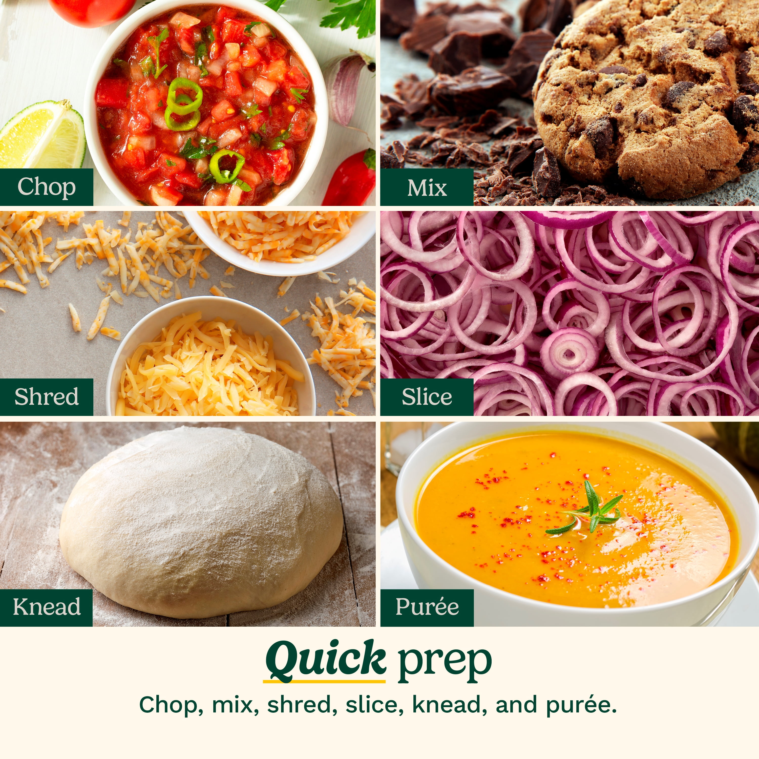 The New Cuisinart Elemental 8 Cup Food Processor is designed to perform any food prep task your recipe calls for. Big enough to chop ingredients for a party-sized portion of salsa, the Elemental 8 is also powerful enough to turn a full work bowl of vegetables into healthy puréed soups in seconds. The wipe-clean rubberized touch pad controls and reversible shredding and slicing discs make this food processor a firm favorite of cooks!