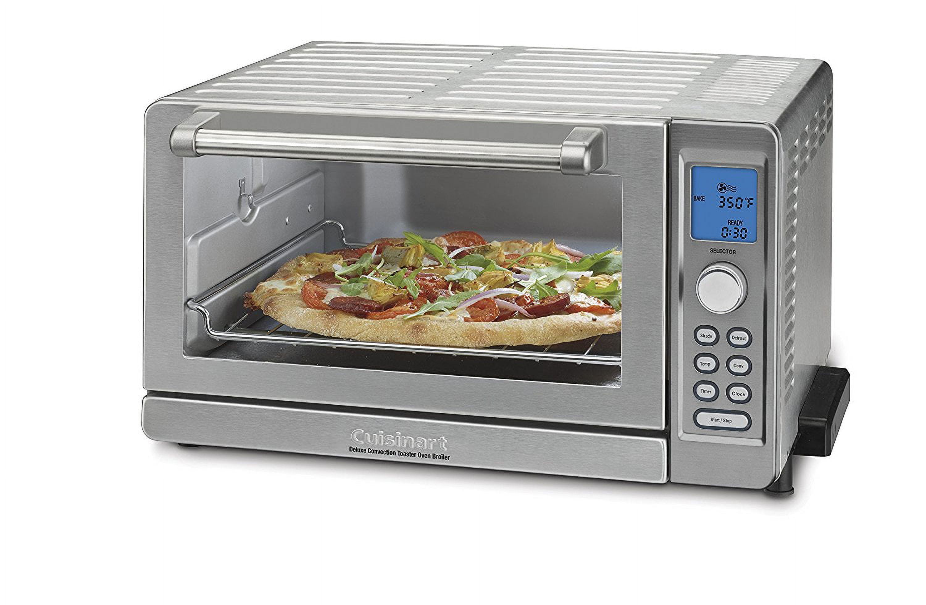Cuisinart Toaster Oven Broilers Deluxe Convection Toaster Oven Broiler: 9 functions 0.6 cu ft capacity Deluxe convection toaster oven broiler is controlled by an electronic dial and LED buttons Exact Heat sensor maintains precise temperatures Constructed with an Always Even shade control