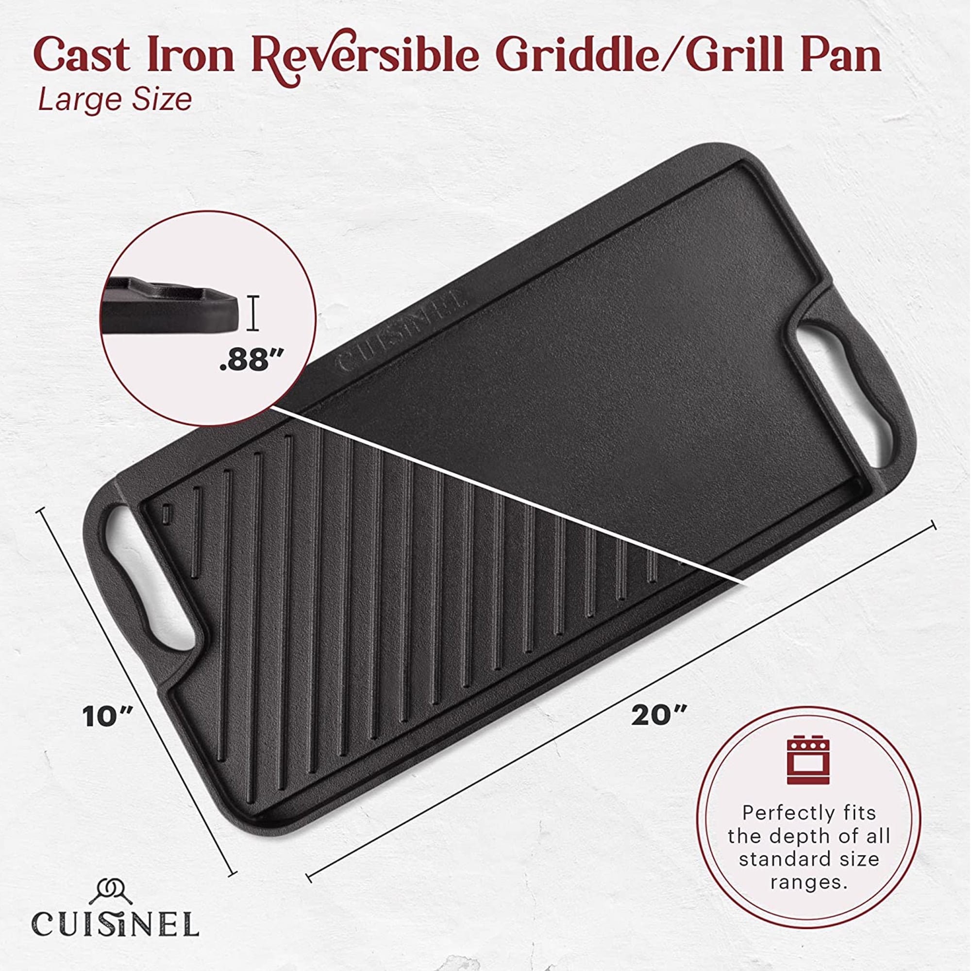 Cuisinel 20″ Pre-Seasoned Reversible Cast Iron Griddle Grill Combo