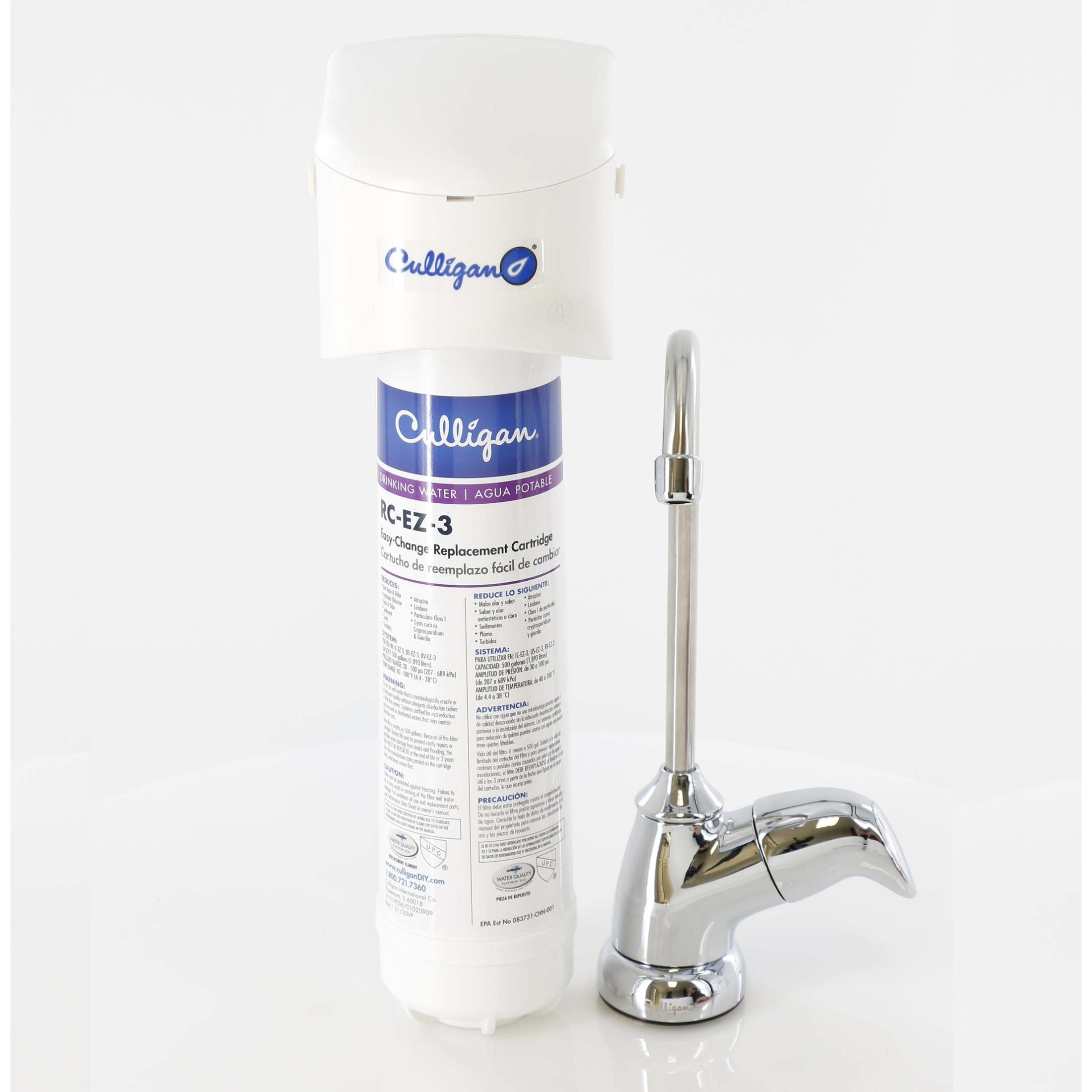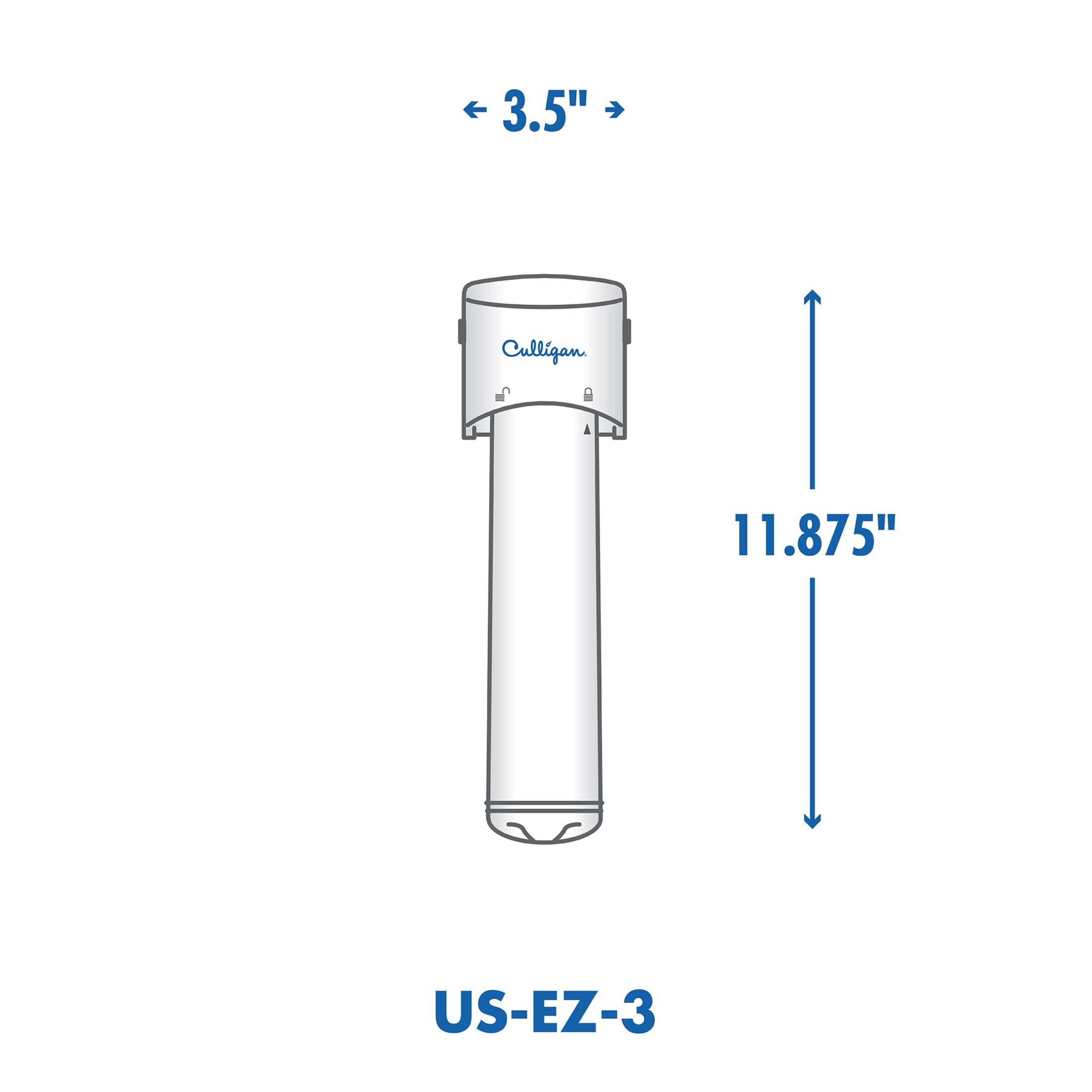 Clear, clean, great-tasting water for drinking and cooking is easier to achieve than ever before with the Culligan® family of EZ-Change Drinking Water Filters. The Culligan® US-EZ-3 Advanced Under-sink Drinking Water Filter System features a twist-on, twist-off mechanism, quick-connect fittings, and double water shut-off. The filter reduces bad taste & odor, aesthetic chlorine taste & odor, sediment, lead, and cysts such as giardia & cryptosporidium, turbidity, atrazine, lindane, and particulate class I. The package includes filter head with built in bracket, RC-EZ-3 Advanced Filtration replacement cartridge, mounting screws, supply adapter, lead-free faucet with built-in electronic life indicator, 1/4-inch plastic tubing.
