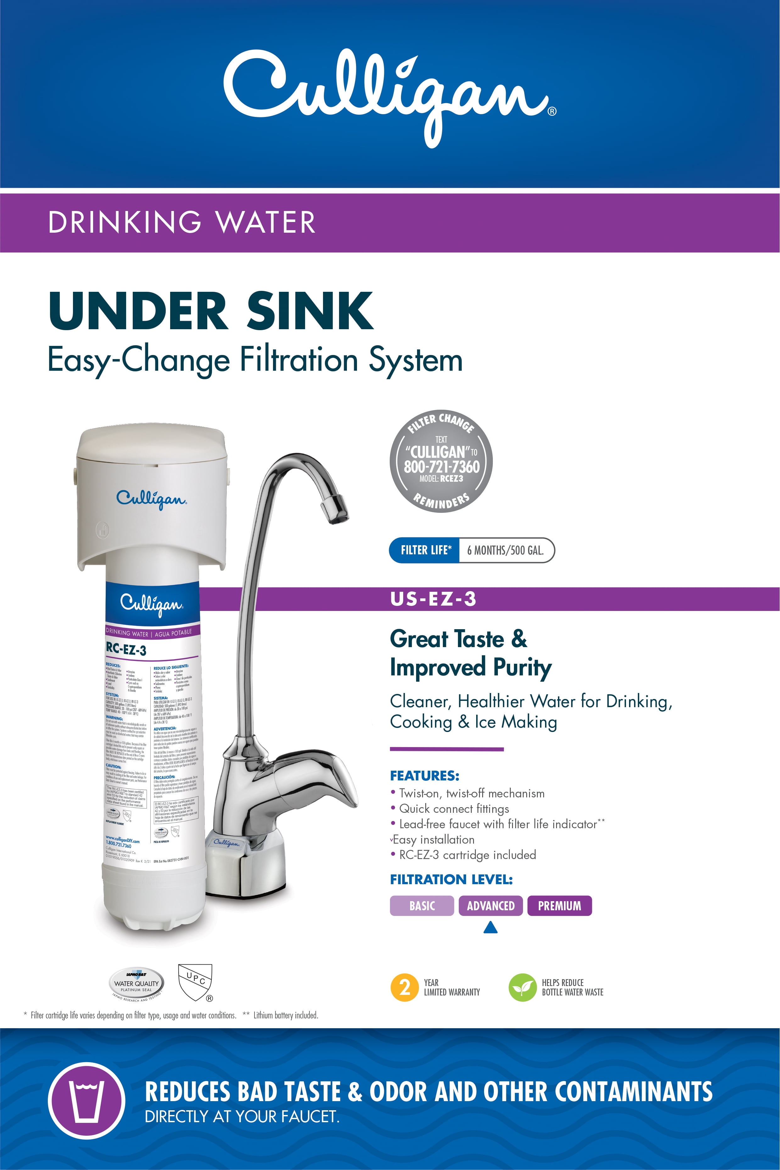 Culligan US-EZ-3 Under Sink Water Filtration System, Advanced