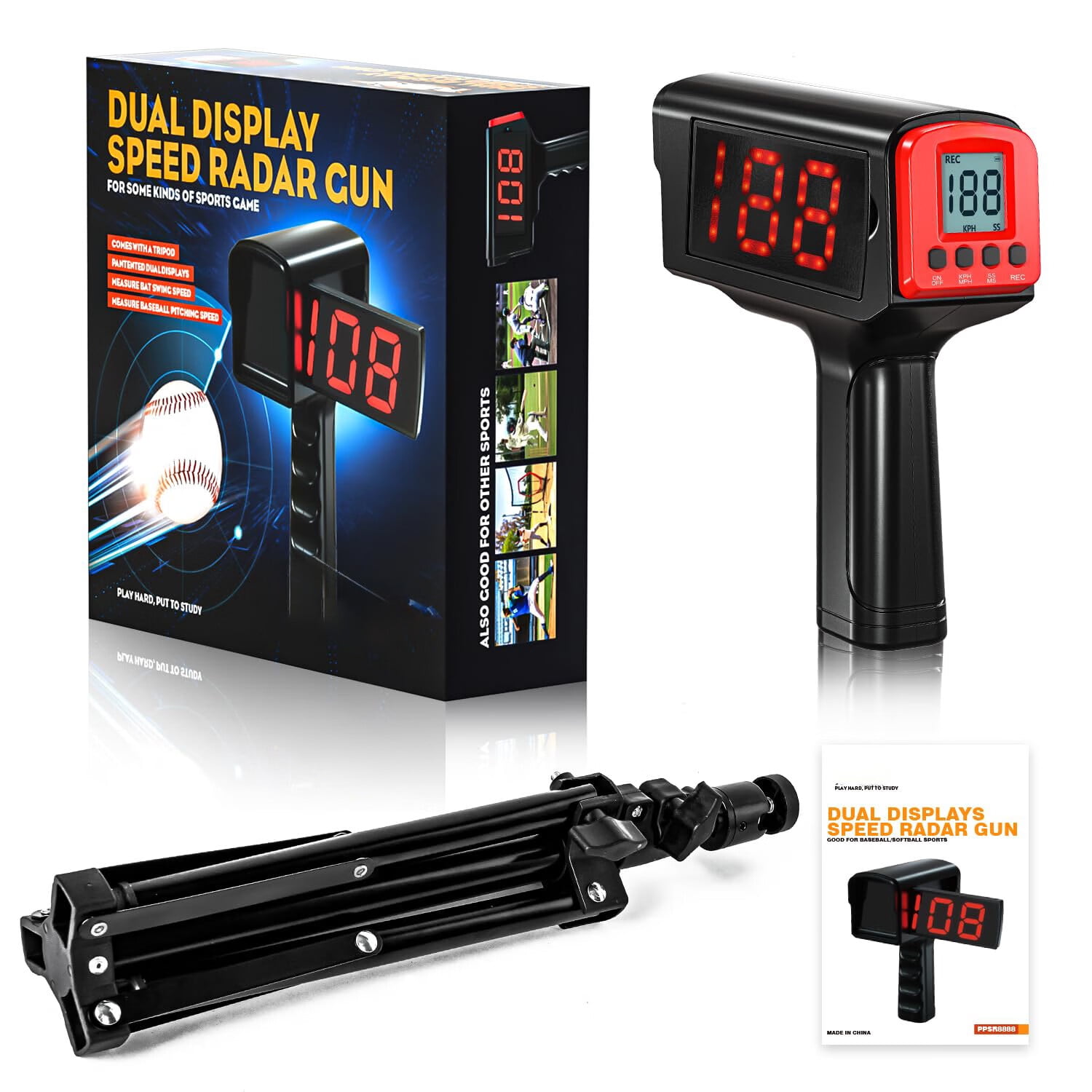 【Speed Recall Feature】 Baseball hitting speed radar gun can store the last ten records of hits, pitches or swings. you can analyze your pitching, running, hitting, and fielding through your data, to improve your skill level. 【Wider Range For Measuring Speed】The baseball speed radar is able to shoot and catch as low as 3 mph to as high as 150 mph.+/-1mph/kph accuracy. 【Large & Clear Display】 CureCalor baseball speed radar features a side large LED display for solo practice and a back LCD display for coaches to accurately view your progress. Baseball speed radar gun is the most accurate, clean and intuitive tool for any players/coaches to analyze pitching, hitting, and fielding. Perfect for baseball beginners or pros, individual training as well as team training. 【Handheld Or Hands-Free Operation】 The speed radar gun is easy to use, turns on the power, aims at the target and automatically measures the baseball speed without cosine effect. You can use a handheld or mount it on a tripod for hands-free. perfect for practice at home, yard, or field. 【Best Gift】This baseball radar speed gun is the best birthday gift for children or elders. Imagine the scene of them receiving this perfect gift. It will be an unforgettable memory for a lifetime!
