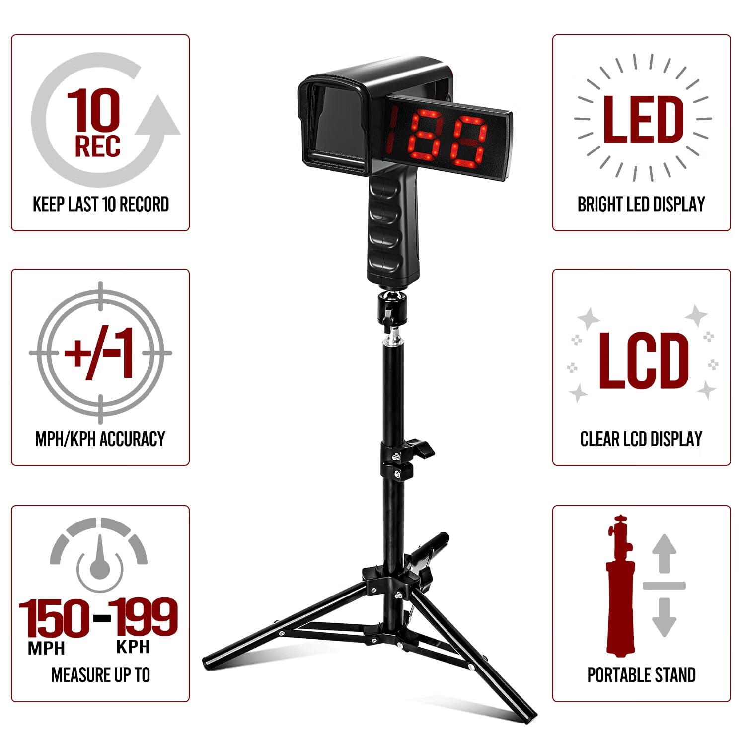 CureCalor Baseball Radar Gun, LED+LCD Large Display, Speed Sensors with Adjustable Tripod