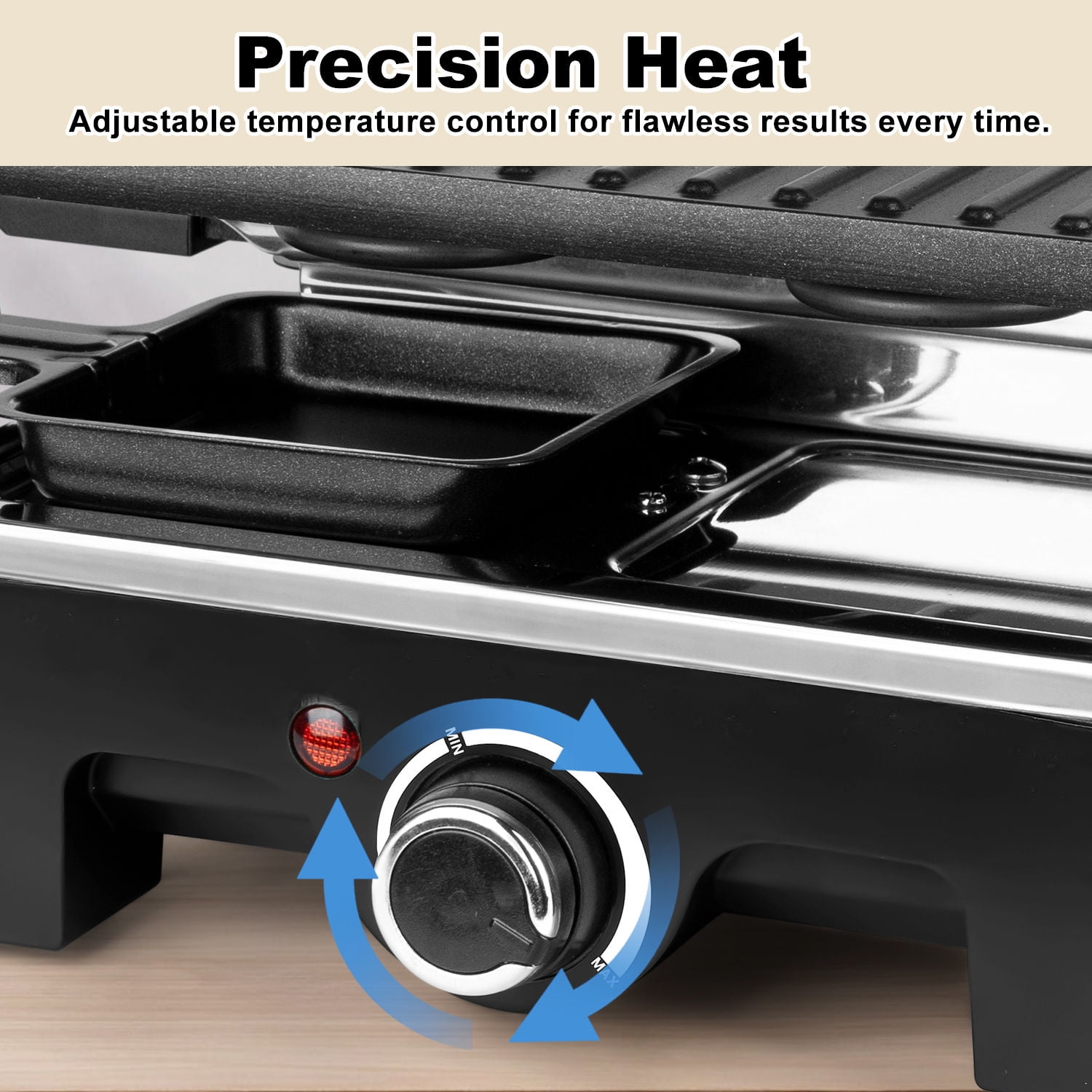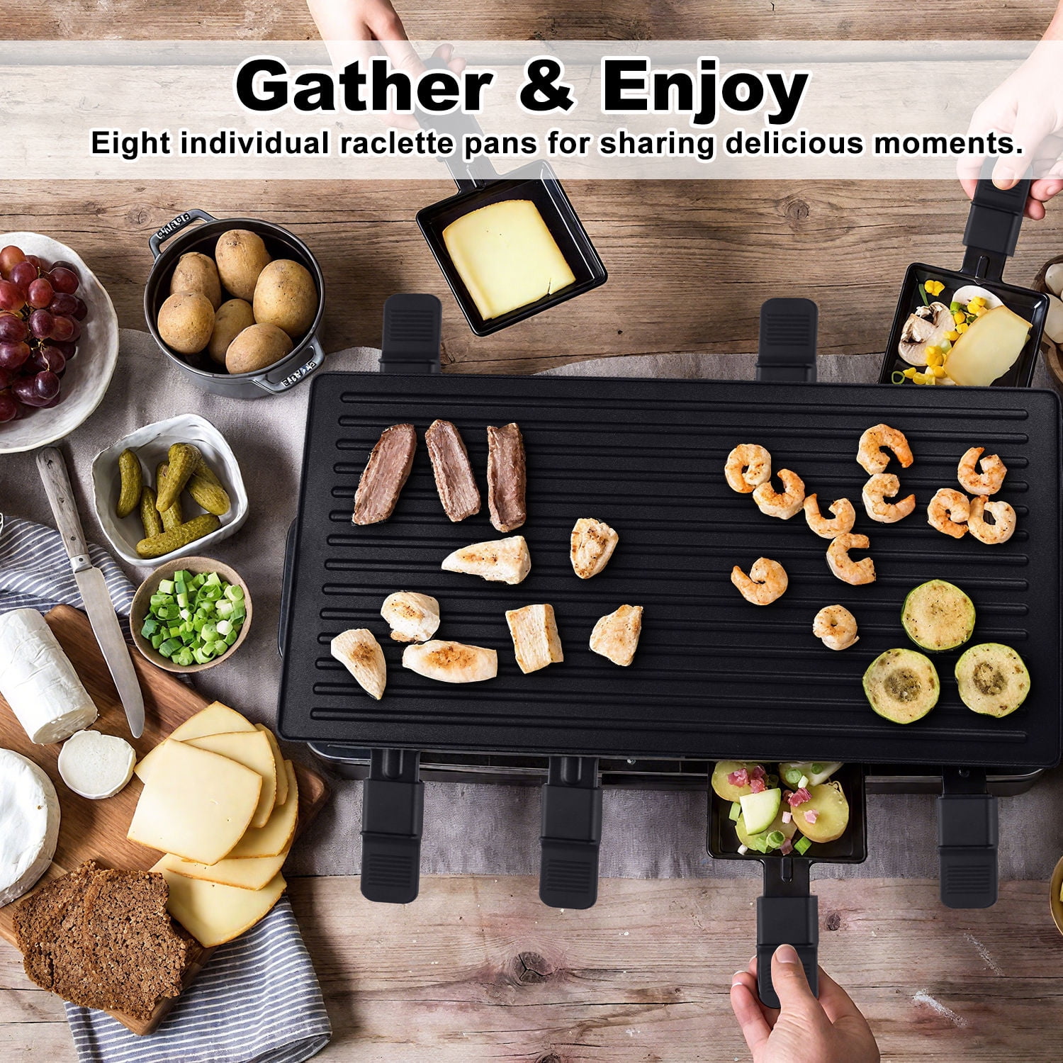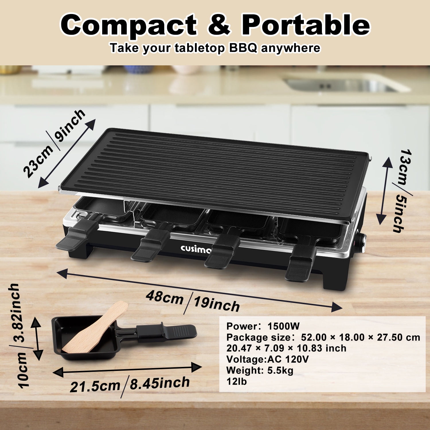 CUSIMAX Raclette Table Grill, Indoor Electric Grill & Griddle, Korean BBQ Grill with 2 in 1 Reversible Non-stick Plate, Crepe Maker, Electric Skillet, Sandwich Maker, Panini Press, 8 Raclette Pans &