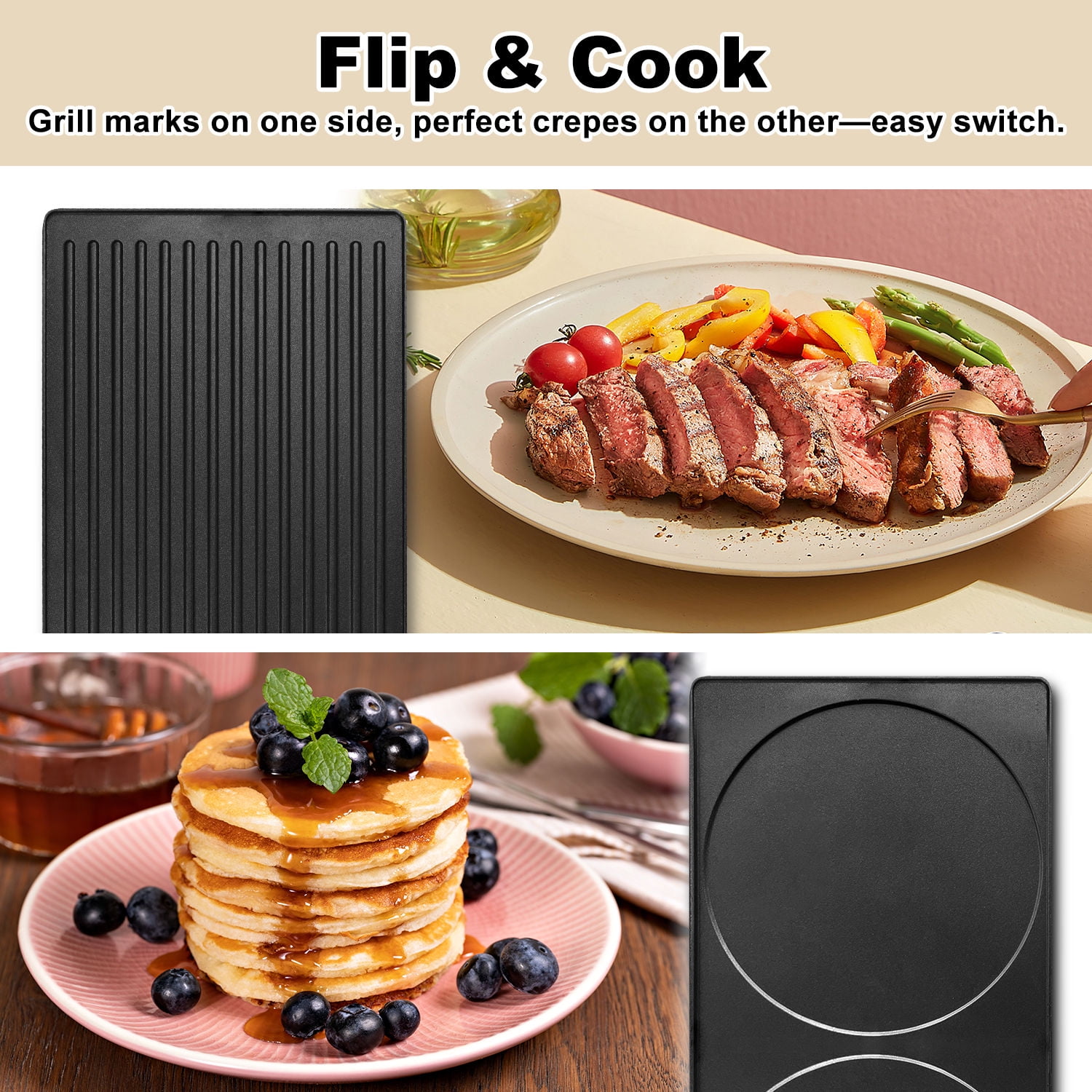 ❃ High Power & Non-Stick Grill – CUSIMAX 1500W brand-new electric raclette grill, ideal for parties and family dinners. With a reversible non-stick baking tray, the grooved surface allows grilling with marks and easily removes excess oil. The flat surface is perfect for making crepes, pancakes, and eggs for breakfast. This 2-in-1 grill saves you the hassle of pulling out other equipment! ❃ Adjustable Heating Control – Thanks to the adjustable heating control and indicator light, this brand-new indoor table grill is suitable for roasting all kinds of meat, seafood, vegetables, eggs, crepes, and pancakes. It heats up in advance for better results, making it convenient for your entire day’s meals. ❃ Worry-Free Customer Service – CUSIMAX is committed to providing the best service. Enjoy free lifetime customer support and a 180-day worry-free return policy. If you encounter any problems, feel free to contact us. Choose CUSIMAX, no risk! ❃Adjustable Heating Control-Thanks to the adjustable heating control & the indicator light, this indoor table grill Suitable for roasting all kinds of meat, seafood, vegetables or eggs, crepes and pancakes. Just finish your whole day meals in one machine. Heats up in advance for the better results. ❃Worry-Free Customer Service-CUSIMAX is committed to providing the best service. Free lifetime customer service + 180-days worry-free return policy. If the you encounters any problems, please feel free to contact us. Choose CUSIMAX, No Risk!