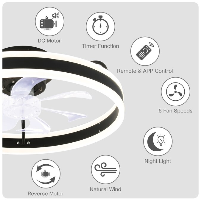 - APP and Remote Control: The low-profile ceiling fan has a reverse function, 6-gear wind speed, smart timing, and dimming and all functions can be operated by handheld remote control or APP Control.