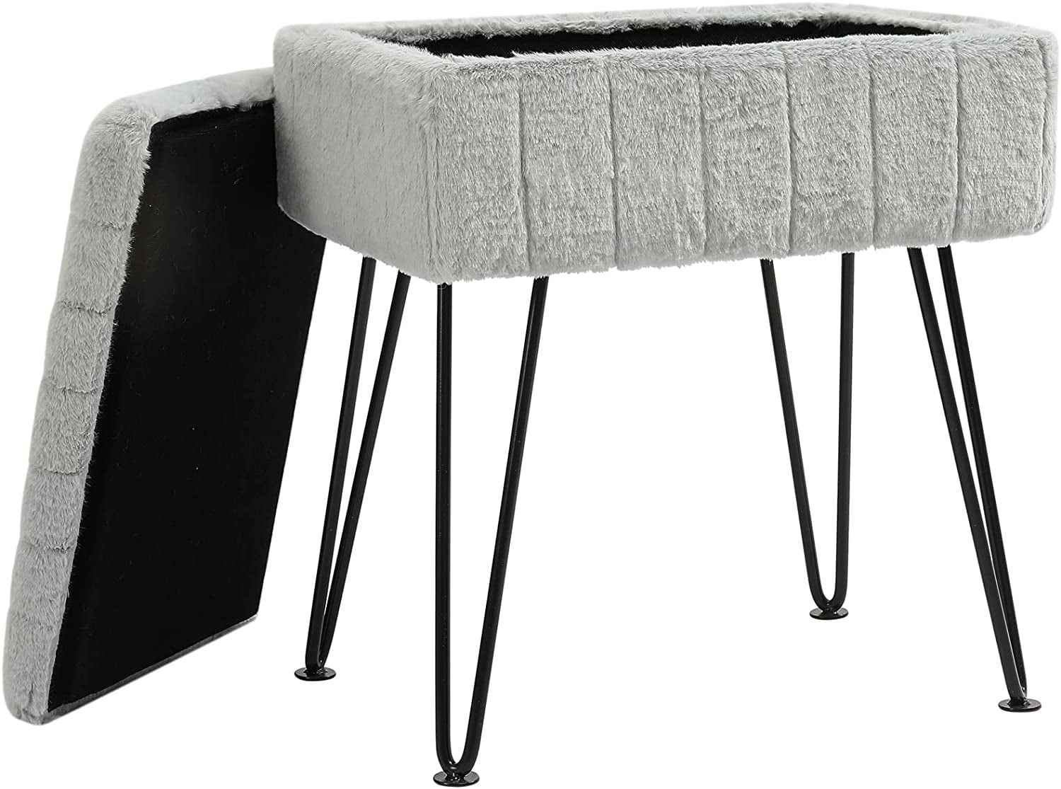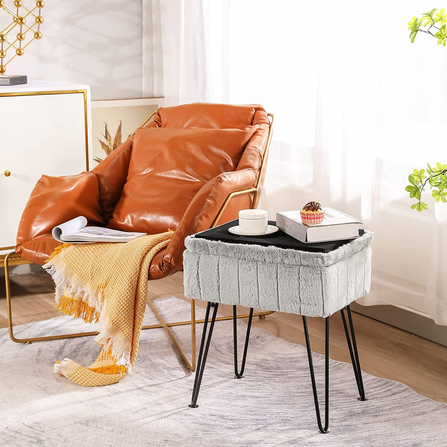 Combining practicality and fashion, modern and elegant style design, this chic rectangular storage stool designed by Cuyoca provides essential convenience for any family. The hidden storage space is perfect for storing and organizing your toys, books, game accessories, or other small items, adding a touch of elegance to your home. It can also be used as a stool, coffee table, footstool, and vanity stool, making it a must-have for elegant ladies. If you are looking for fashionable and versatile furniture, this faux fur stool will be your solution.