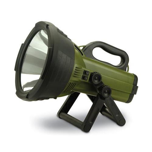 Illuminate just about anything with this powerful and portable spotlight flashlight 18 million candlepower light output Features a Philips 130/100 watt H4 Halogen bulb with 2 levels of power adjustment Adjustable swivel stands so you can point the light exactly where you need it The battery fully charges in 20 hours Durable rubberized construction to stand up to heavy use in any outdoor environment Recharge with either the AC/DC adapter or 12-volt DC car plug adapter [both included] Includes [2] 6-volt sealed lead-acid batteries Color: Green Dimensions [L x W x H]: 10.80 x 17.40 x 11.00 inches Weight: 9.75 pounds Manufacturer warranty: 1-year warranty Illuminate just about anything with this powerful and portable spotlight flashlight 18 million candlepower light output Features a Philips 130/100 watt H4 Halogen bulb with 2 levels of power adjustment Adjustable swivel stands so you can point the light exactly where you need it The battery fully charges in 20 hours Durable rubberized construction to stand up to heavy use in any outdoor environment Recharge with either the AC/DC adapter or 12-volt DC car plug adapter (both included) Includes (2) 6-volt sealed lead-acid batteries Color: Green Dimensions (L x W x H): 10.80 x 17.40 x 11.00 inches Weight: 9.75 pounds Manufacturer warranty: 1-year warranty