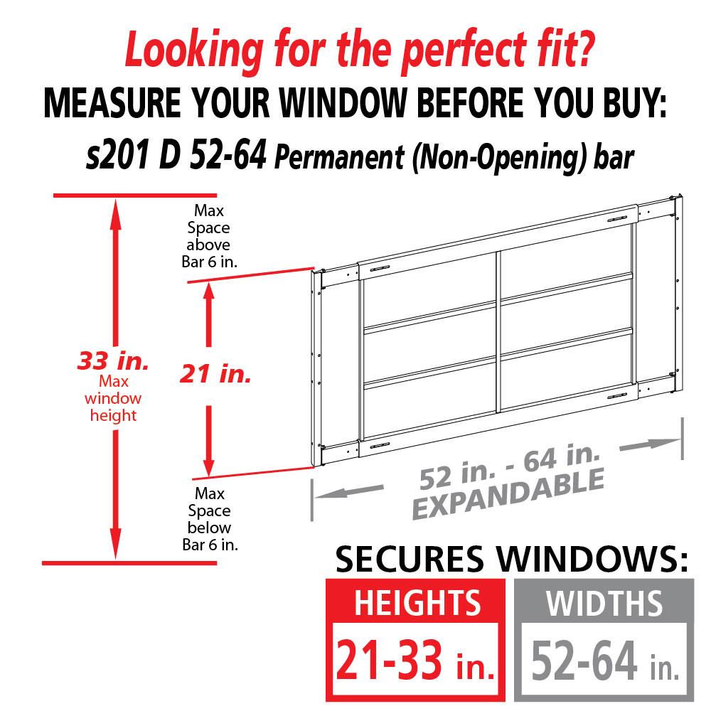 Our fixed mount (non-opening) window bar prevents entry through windows that do not function as secondary escape routes. This easy-to-install window bar does not open and is designed for permanent installations. Perfect for garage and shed windows, store fronts, shop and office security. Steel rods (roll bars) in the tubing of this model, make the bars hacksaw resistant and give you complete peace of mind.