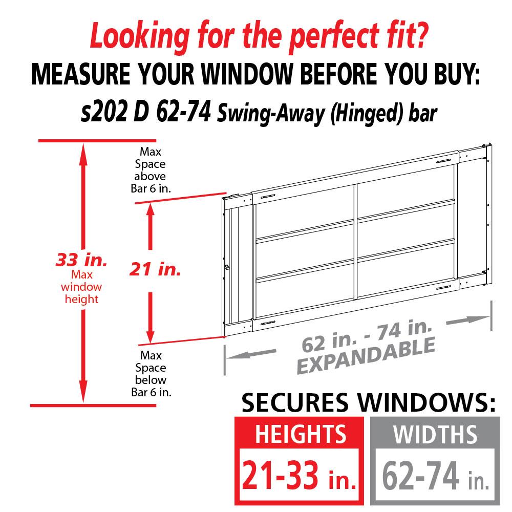 Get instant security for your home and family with this easy-to-install window bar. Made of 14 gauge steel with the added protection of saw-resistant roll bars, this popular model is hinged for easy access to your window in case of fire and for cleaning.