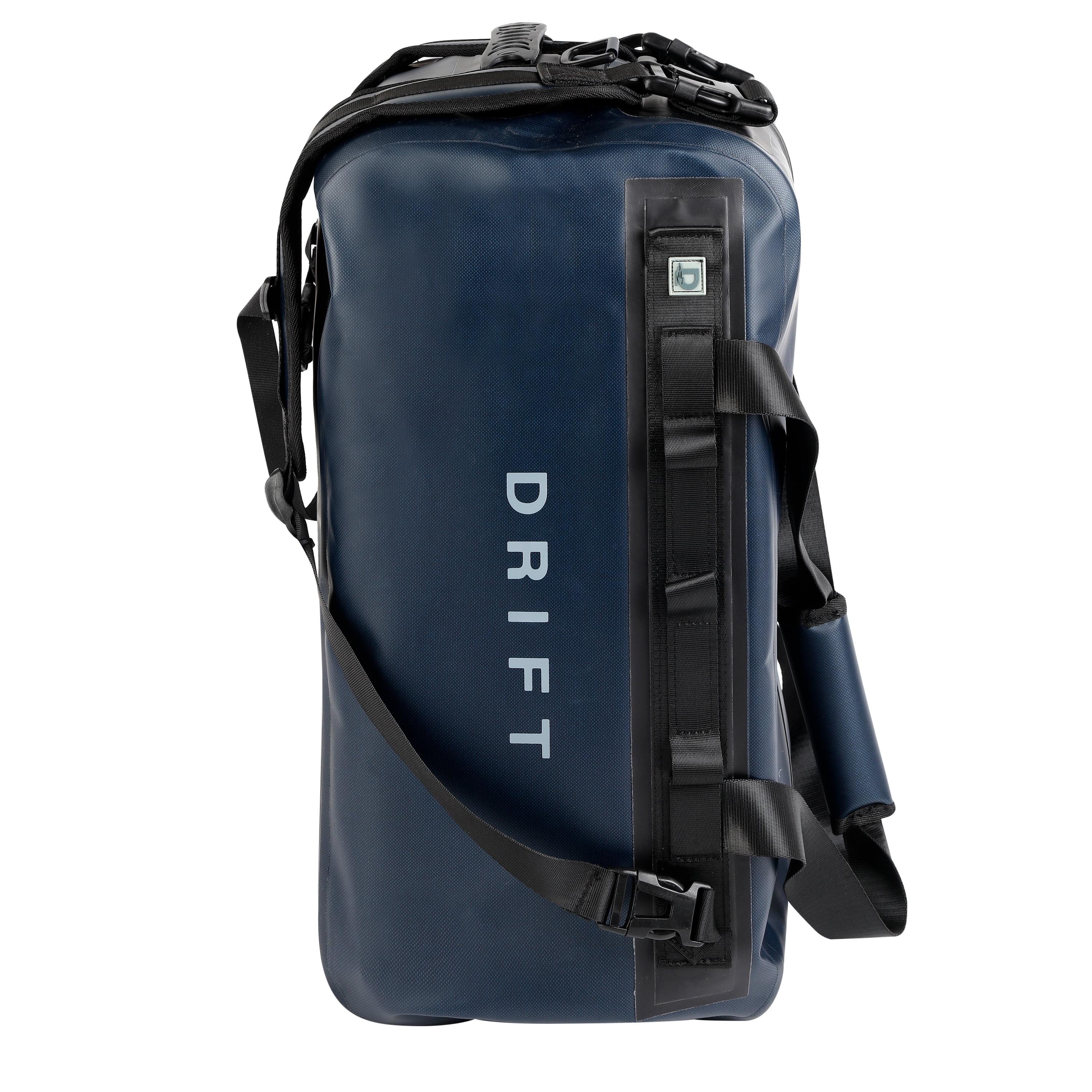 DRIFT Waterproof Boat Bag with Backpack Straps, TPU Coating, 840 Denier, 33L, Navy Blue DRIFT Waterproof Boat Bag IPX6 waterproof Perfect duffle bag for several outdoor water sports activities Solid blue pattern For Camping, Beach, Travel, Kayaking, and Fishing Waterproof Boat Bag, Backpack, and floating dry bag Reinforced double-layer underside Webbing loops for attaching gear to the exterior Durable no-slip handles with comfortable grip Detachable padded backpack straps Carrying Capacity: 33 Liters 840 denier fabric shell with TPU coating Dimensions: 20″ x 10.6″ x 9.84″