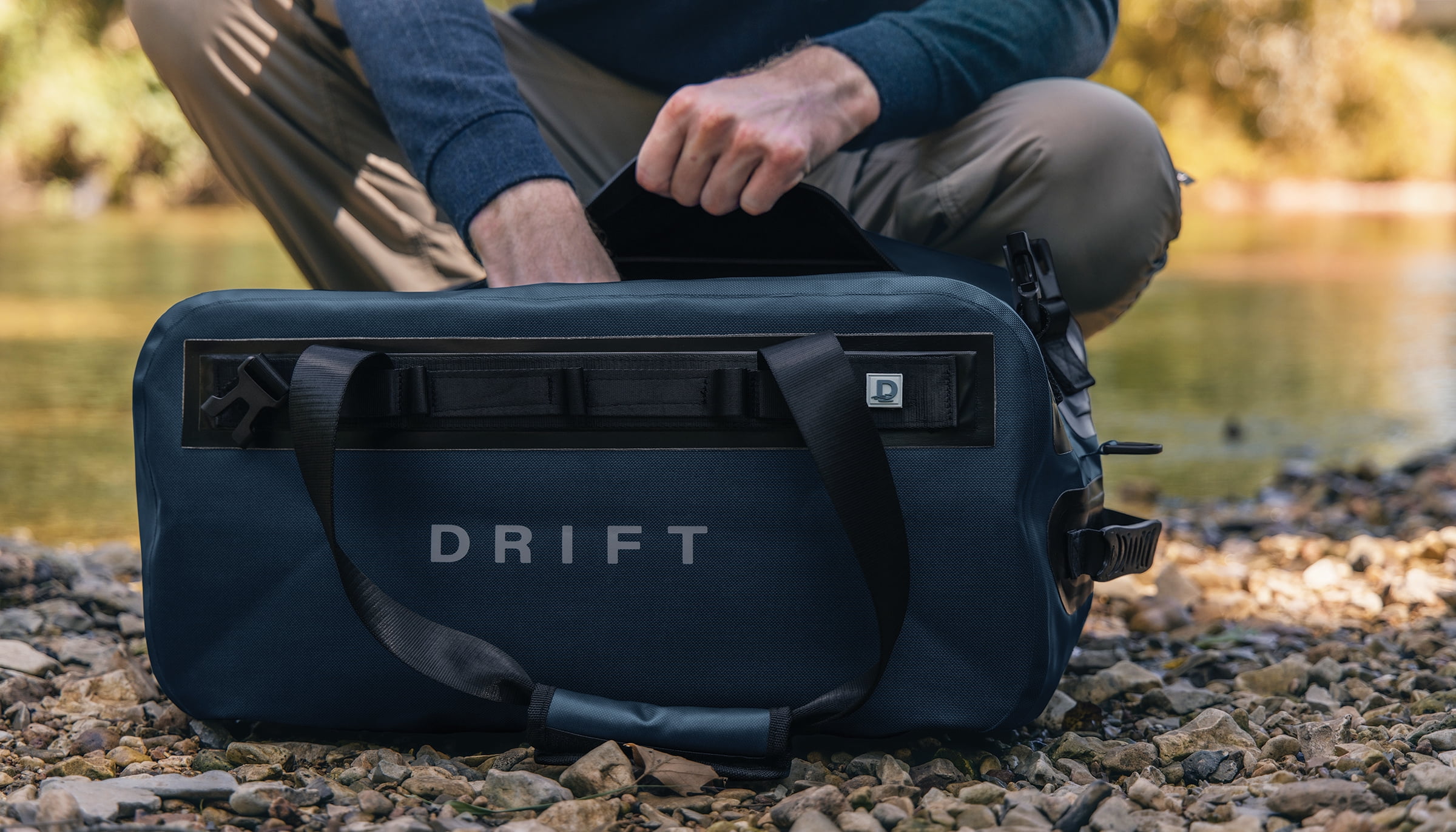 D DRIFT ALL THINGS WATER Waterproof Boat Bag – 33L Navy Blue Backpack with TPU Coating, 840 Denier, Floating Dry Bag for Kayaking, Fishing, and Outdoor Adventures