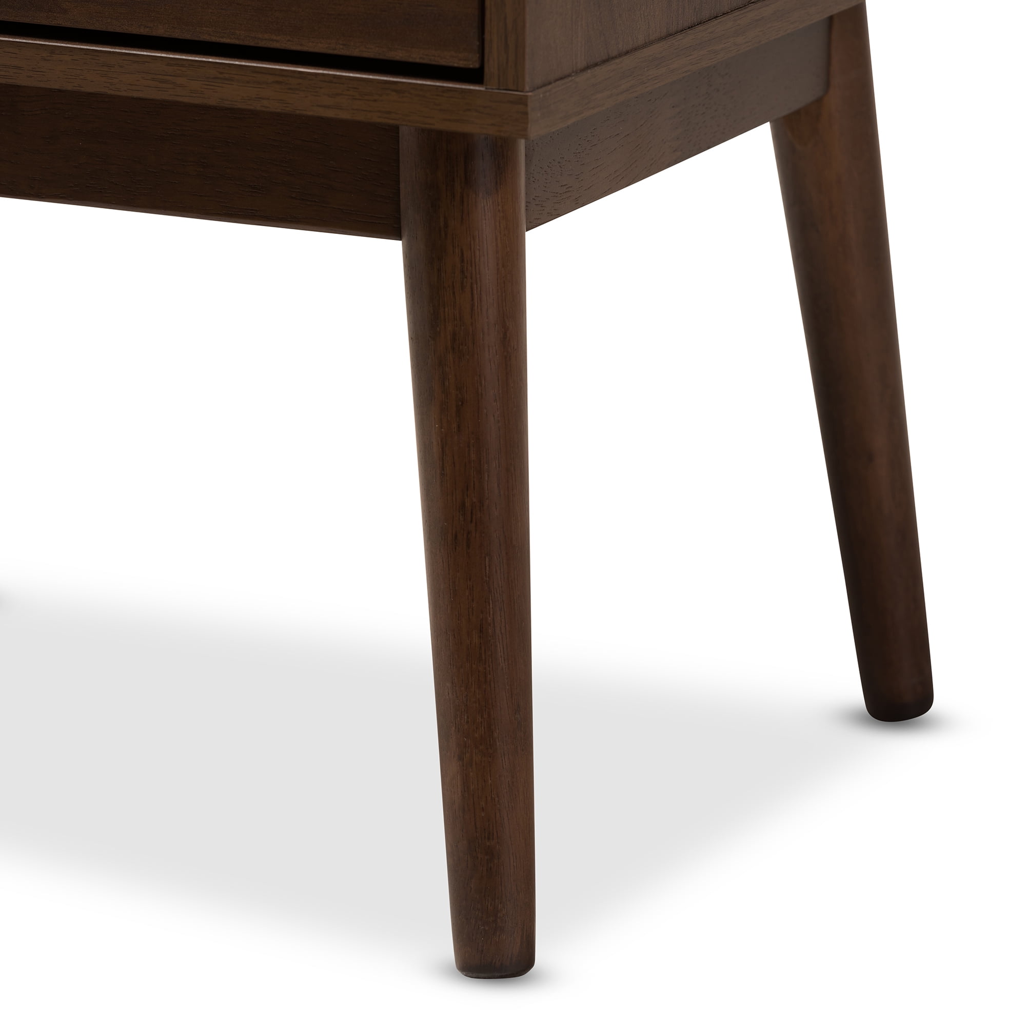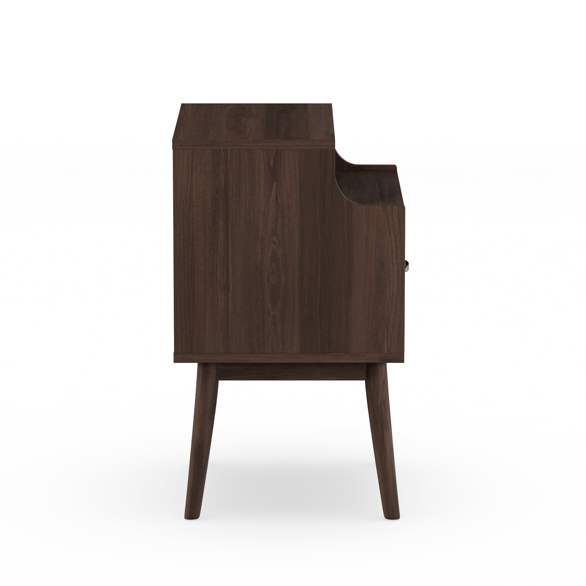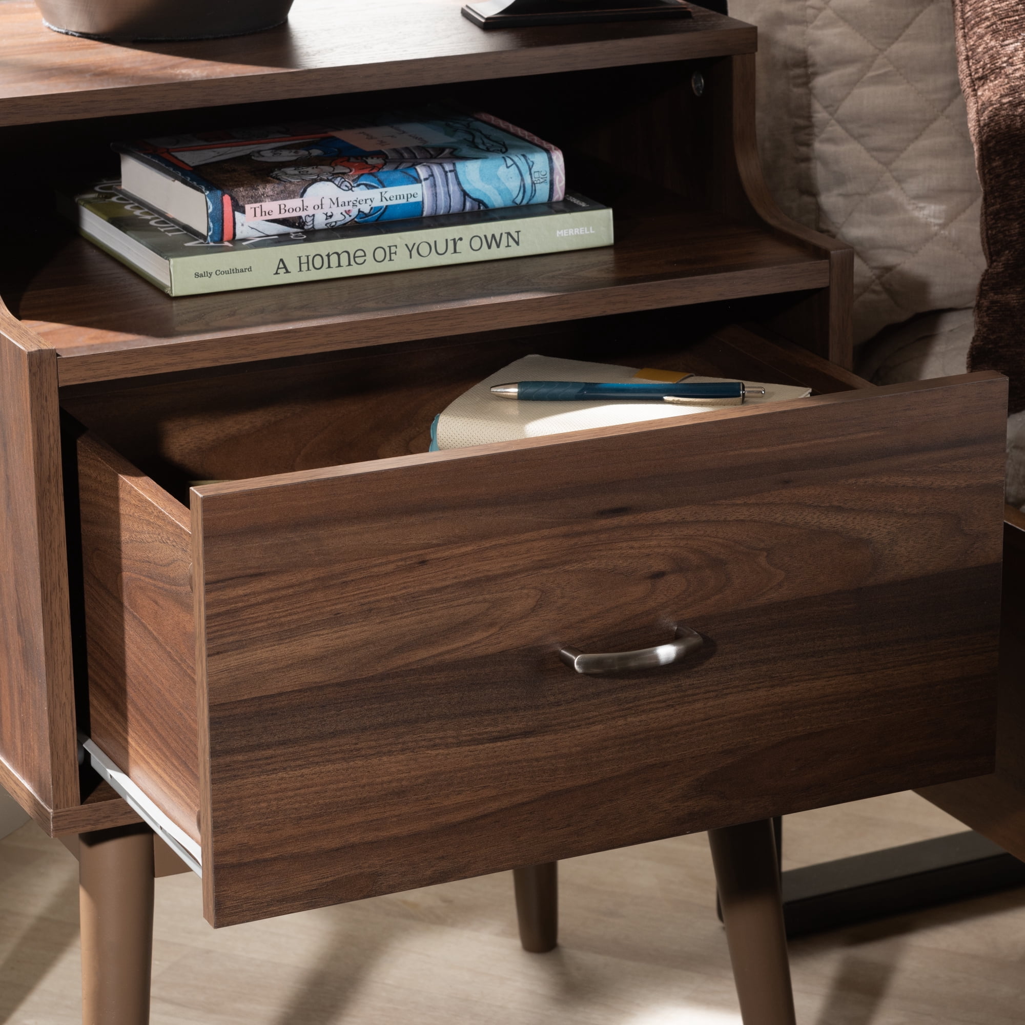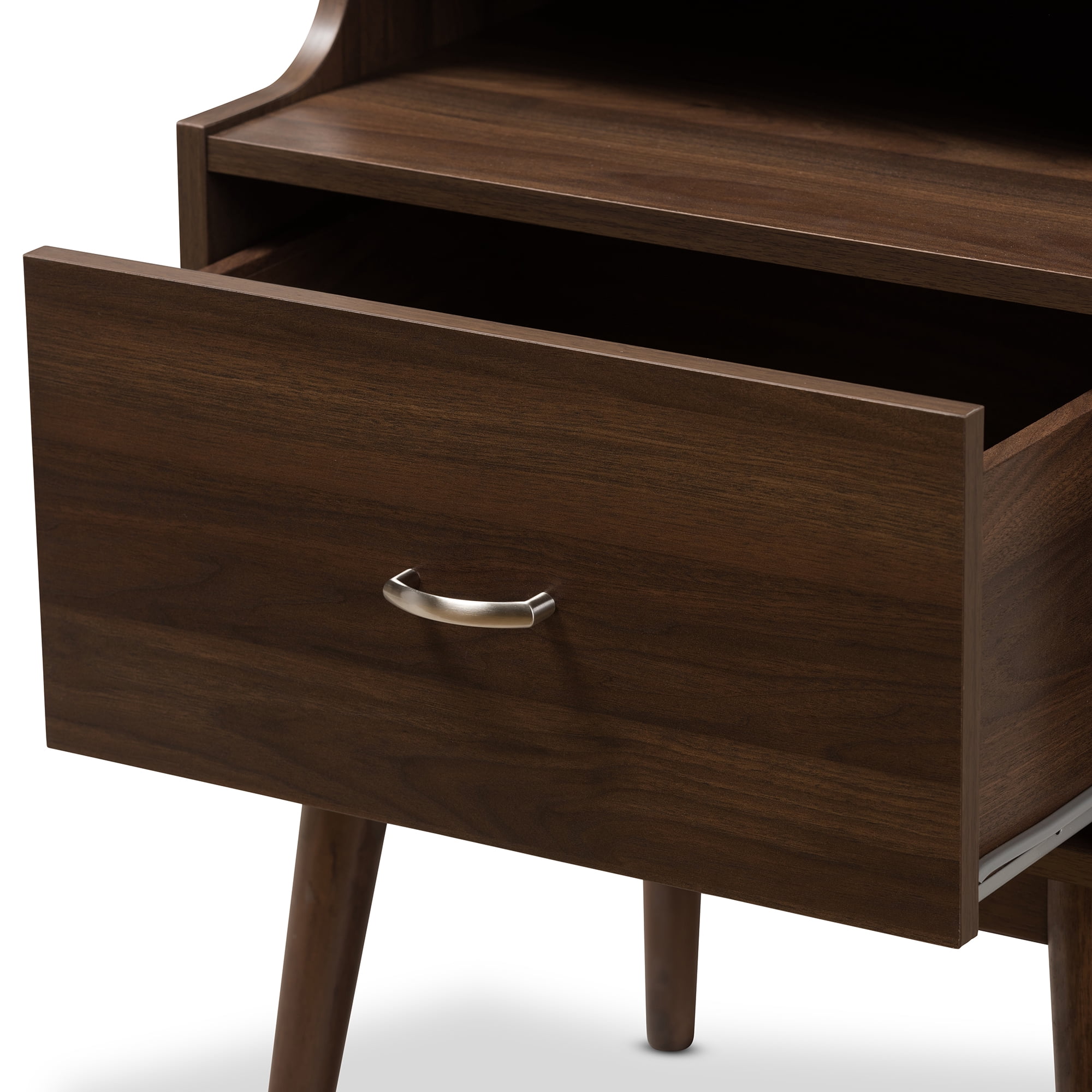 Mid-century modern nightstand; Walnut wood finishing; One drawer