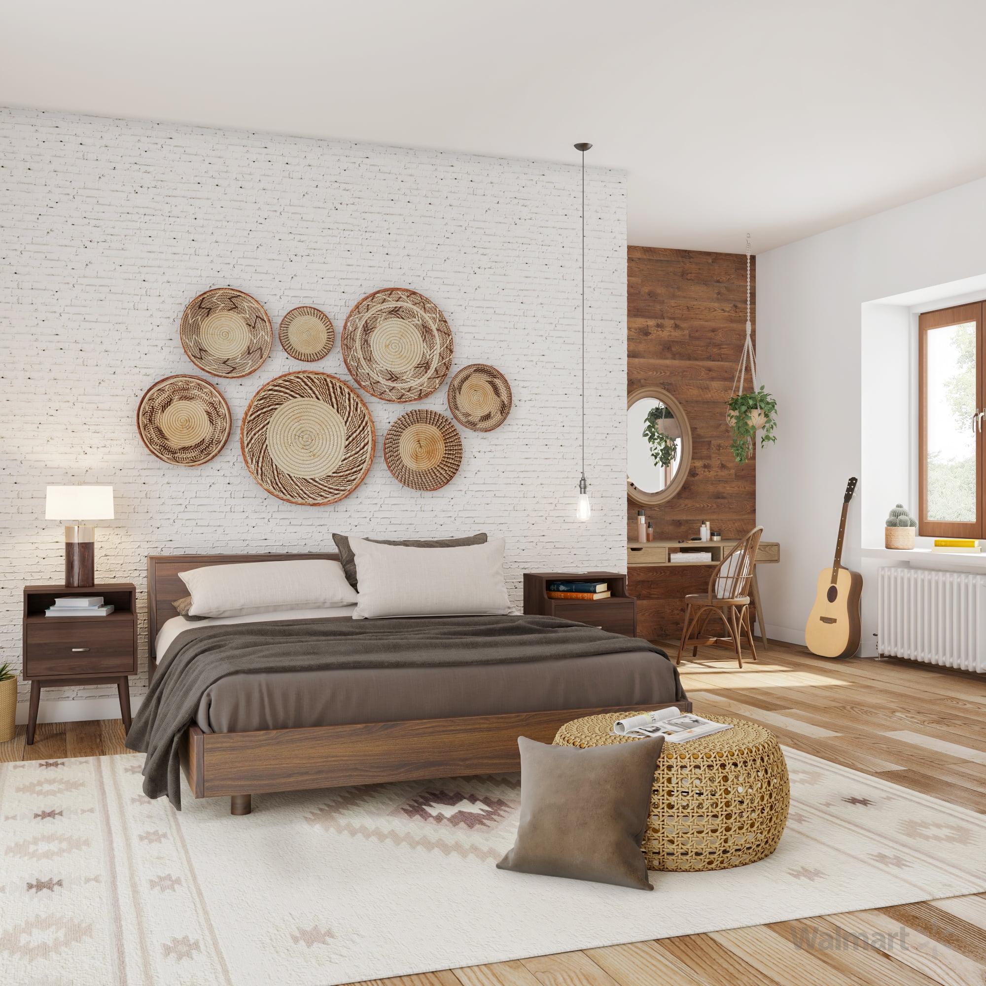Robust design with minimalist detailing for a handsome form that balances wood finishing with modernism, the Dahna 1-drawer nightstand complements a range of interior aesthetics from colonial to contemporary for versatile styling. Constructed of engineered wood and MDF boards for sturdiness, the nightstand features one pull-out drawer on metal runners for a smooth movement for your clothes and linens. Finished in walnut brown veneer for an alluring woodgrain, the Dahna is accented with sleek metal handles for simple functionality with contemporary looks. Solid wood angled legs in a tapered design, for a Scandinavian touch in your décor hold up the Dahna sturdily. Made in Malaysia, the Dahna requires assembly.