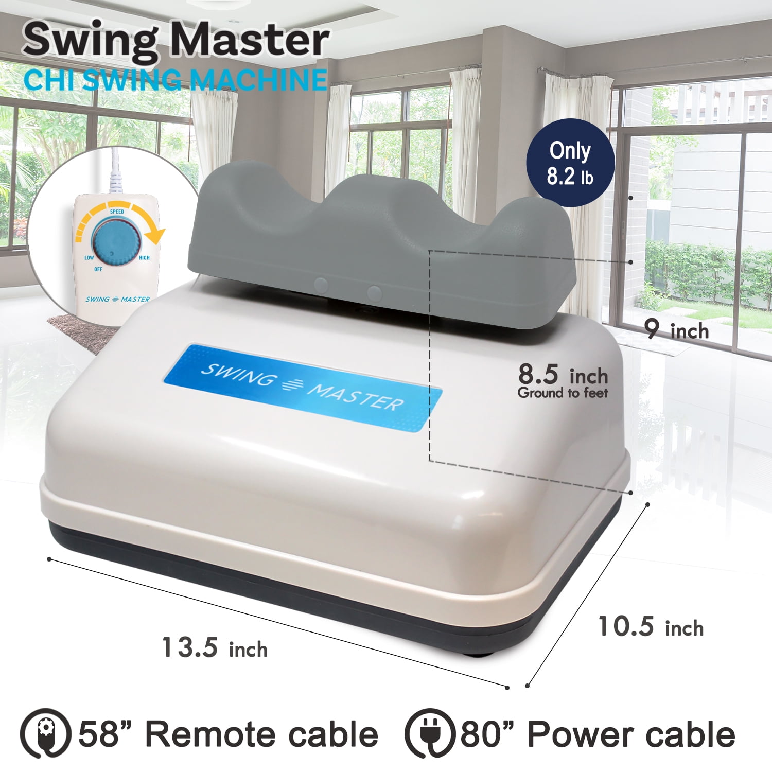 Harness the power of its wave-like motion, targeting ankles to the spine for improved muscle contractions Increases oxygen in the blood and promotes a more flexible spine Easy-to-use design with comfortable ankle pads for a relaxing experience Convenient speed control with the included remote Enjoy the fish-like motion that boosts blood oxygenation and enhances overall well-being Adjustable to suit your needs Strong 15-Watt Motor with a Standard AC 120V-60Hz power supply for reliable performance Remote control for easy operation Padded ankles for a comfortable experience Auto-timer for convenient use A chi machine, or passive aerobic exerciser, makes energizing exercise accessible for everyone Offers three treatments to boost circulation, soothe pain, and speed healing