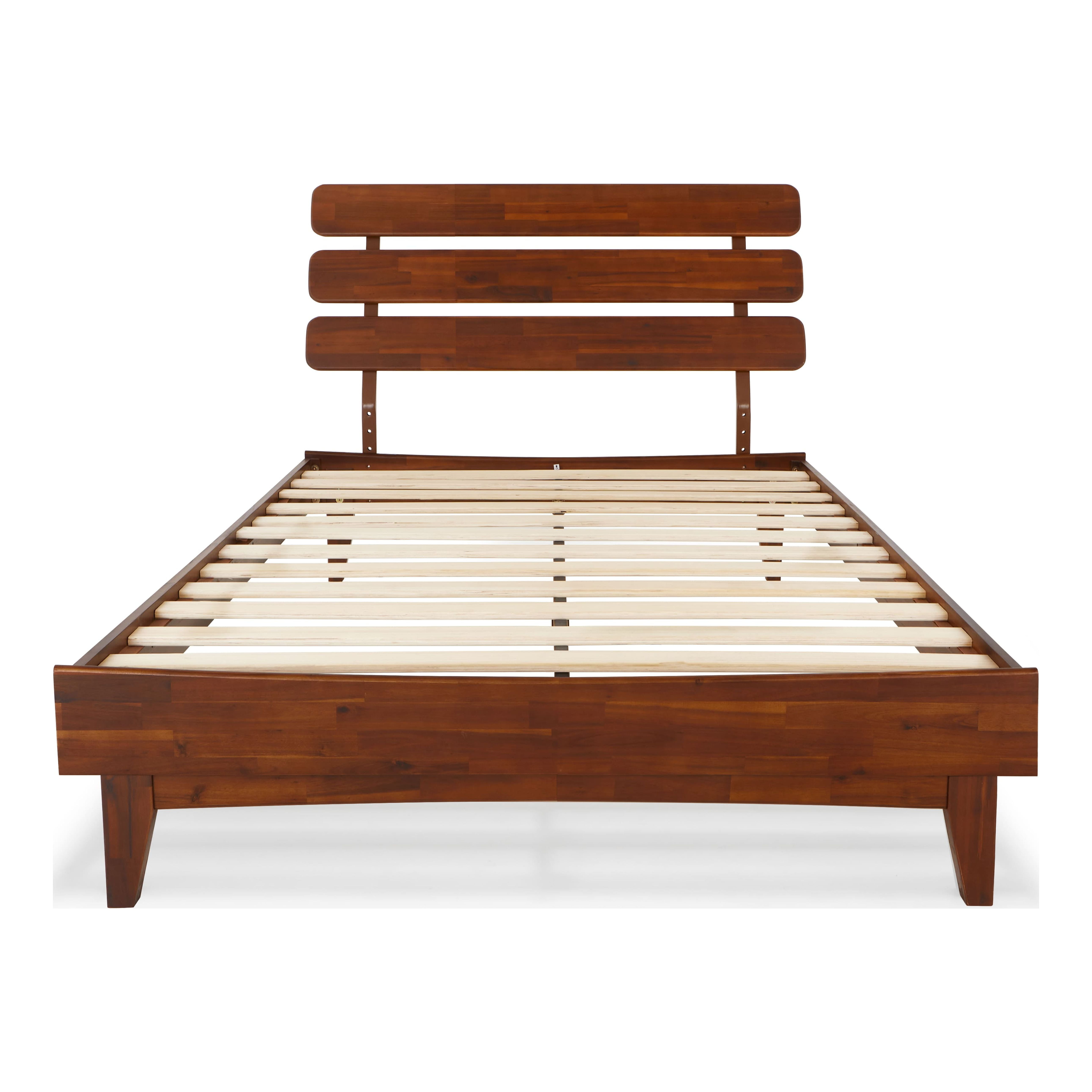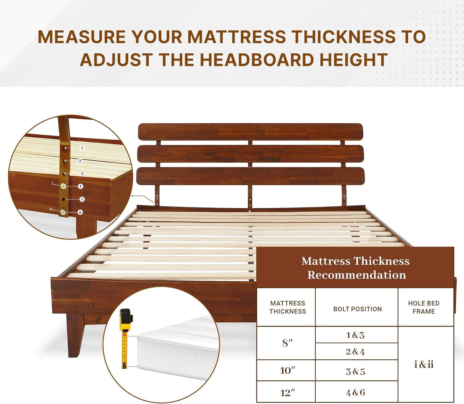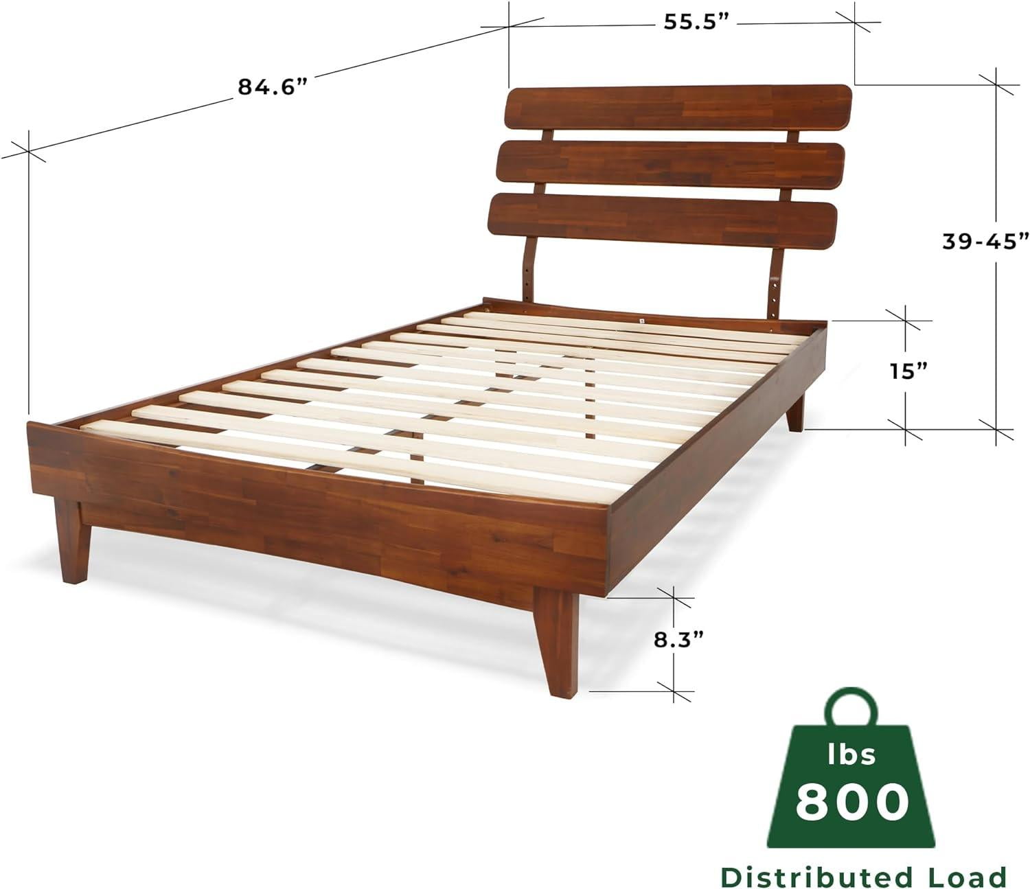 Dalen 45″ Full Bed Frame, Adjustable Headboard, Mid-Century, Solid Wood, Dark Choco