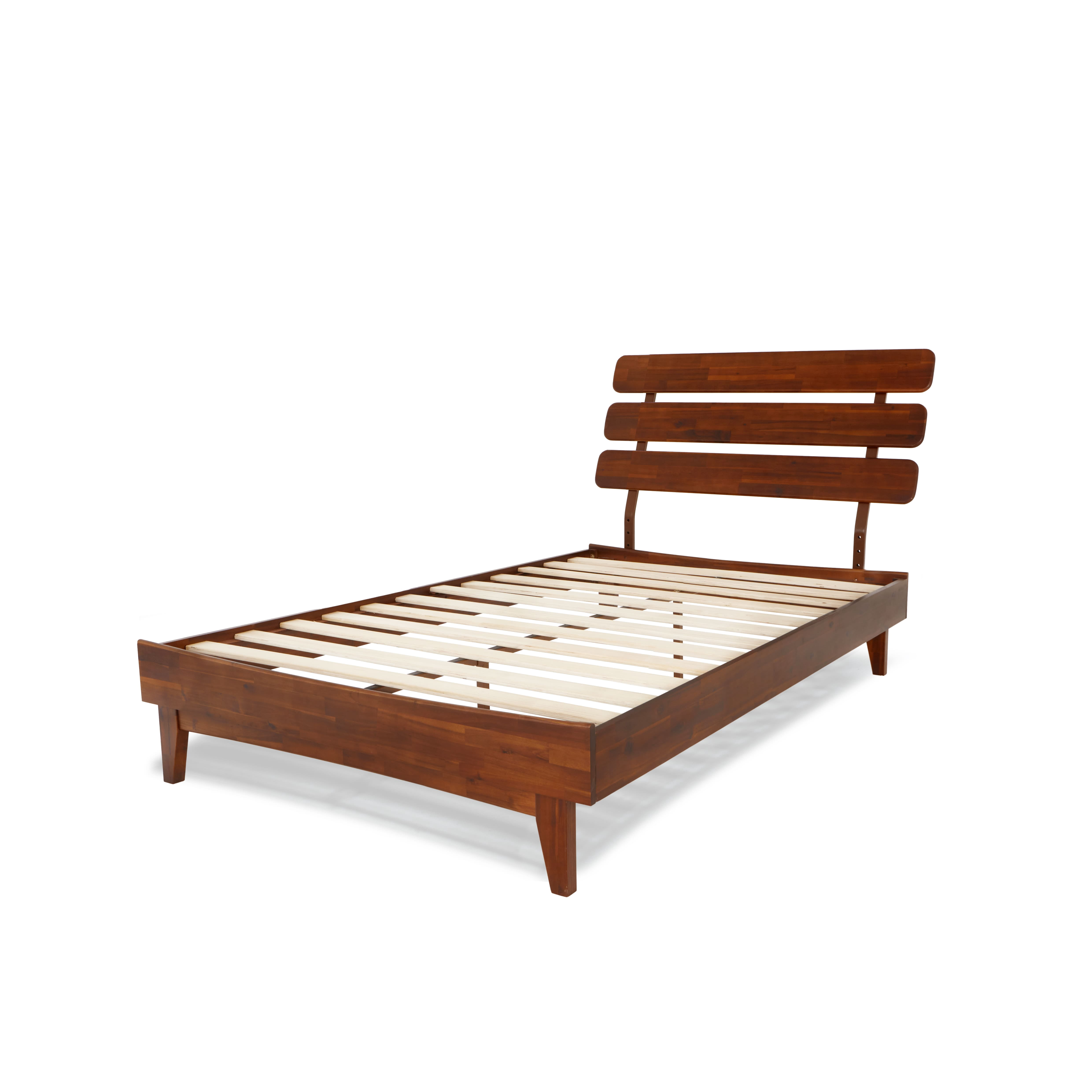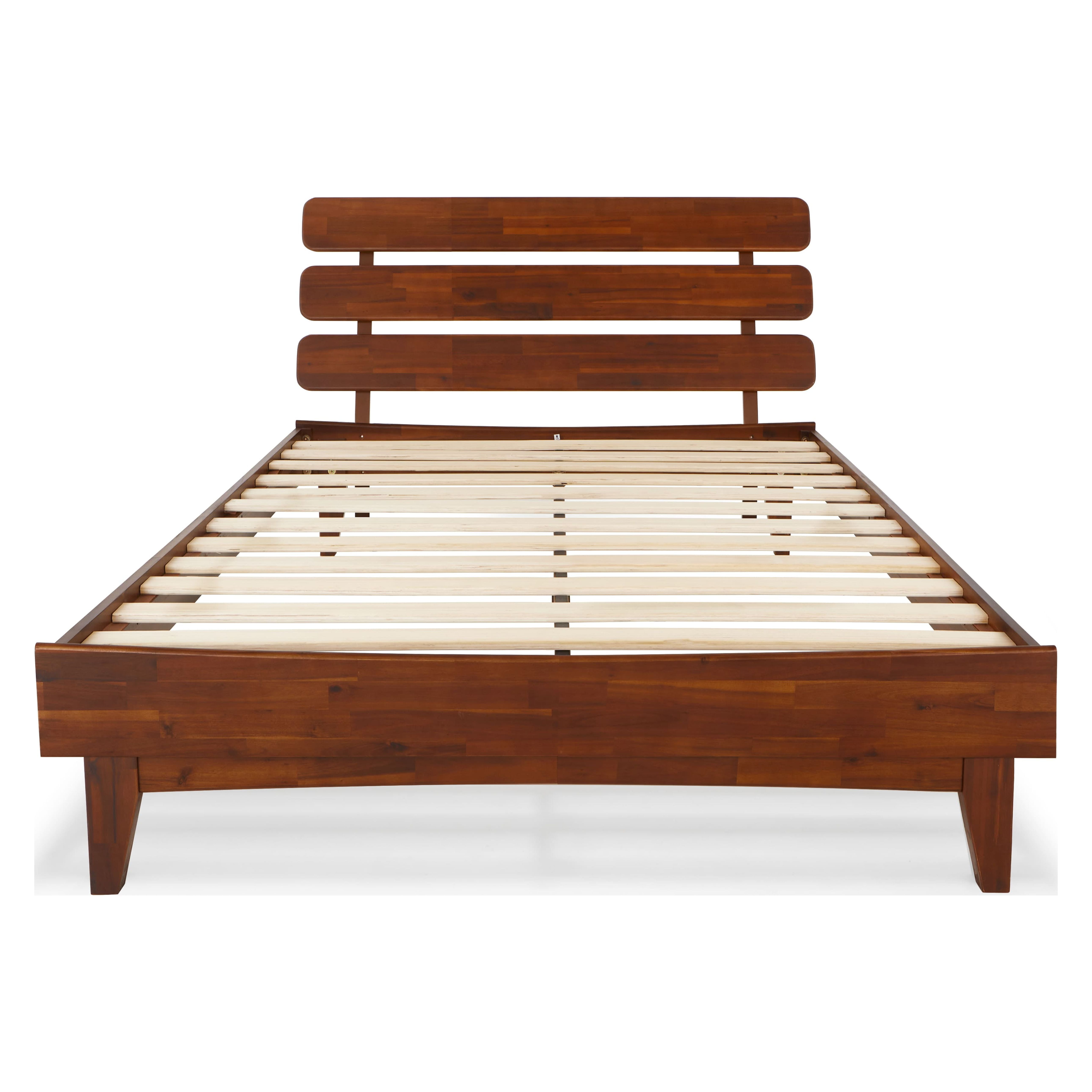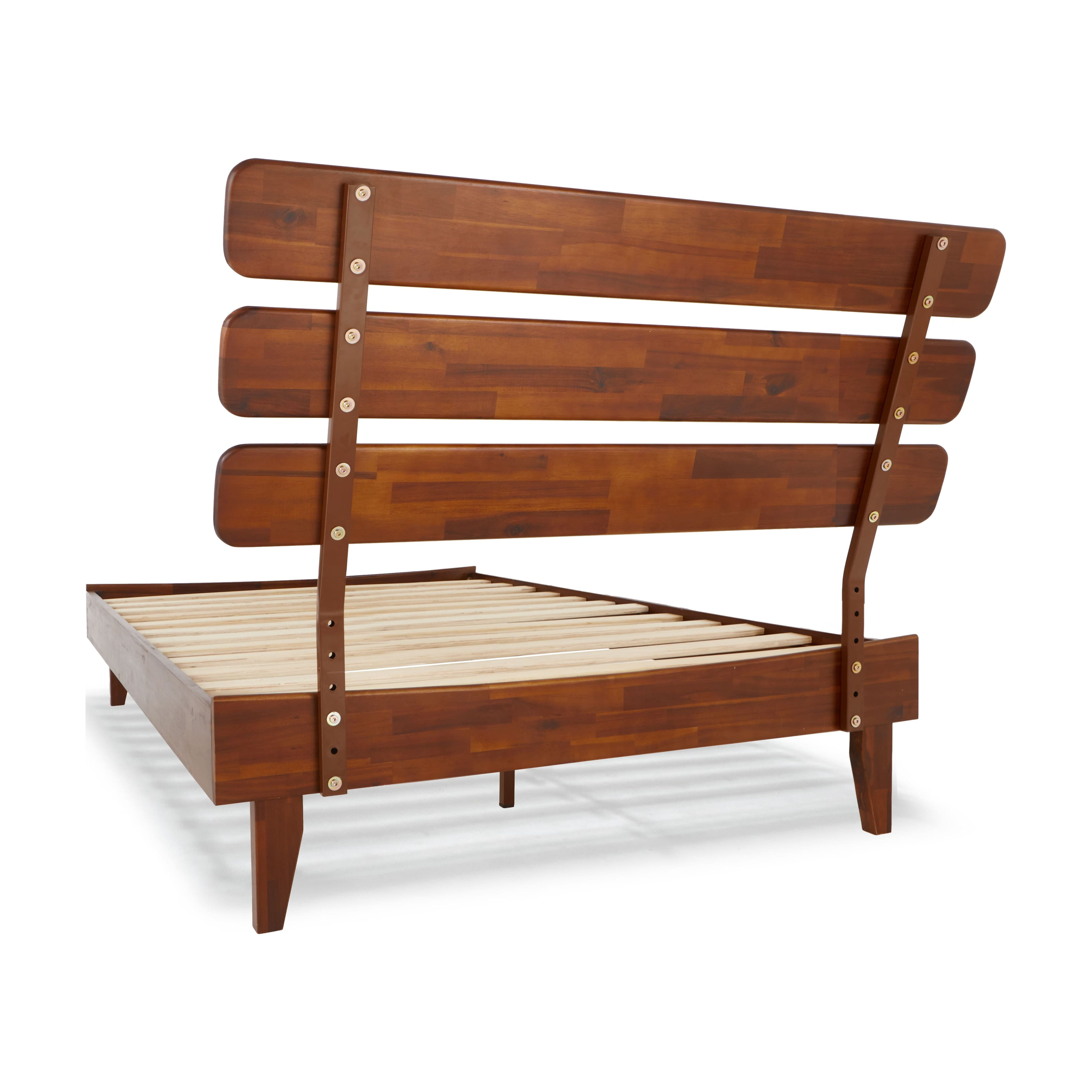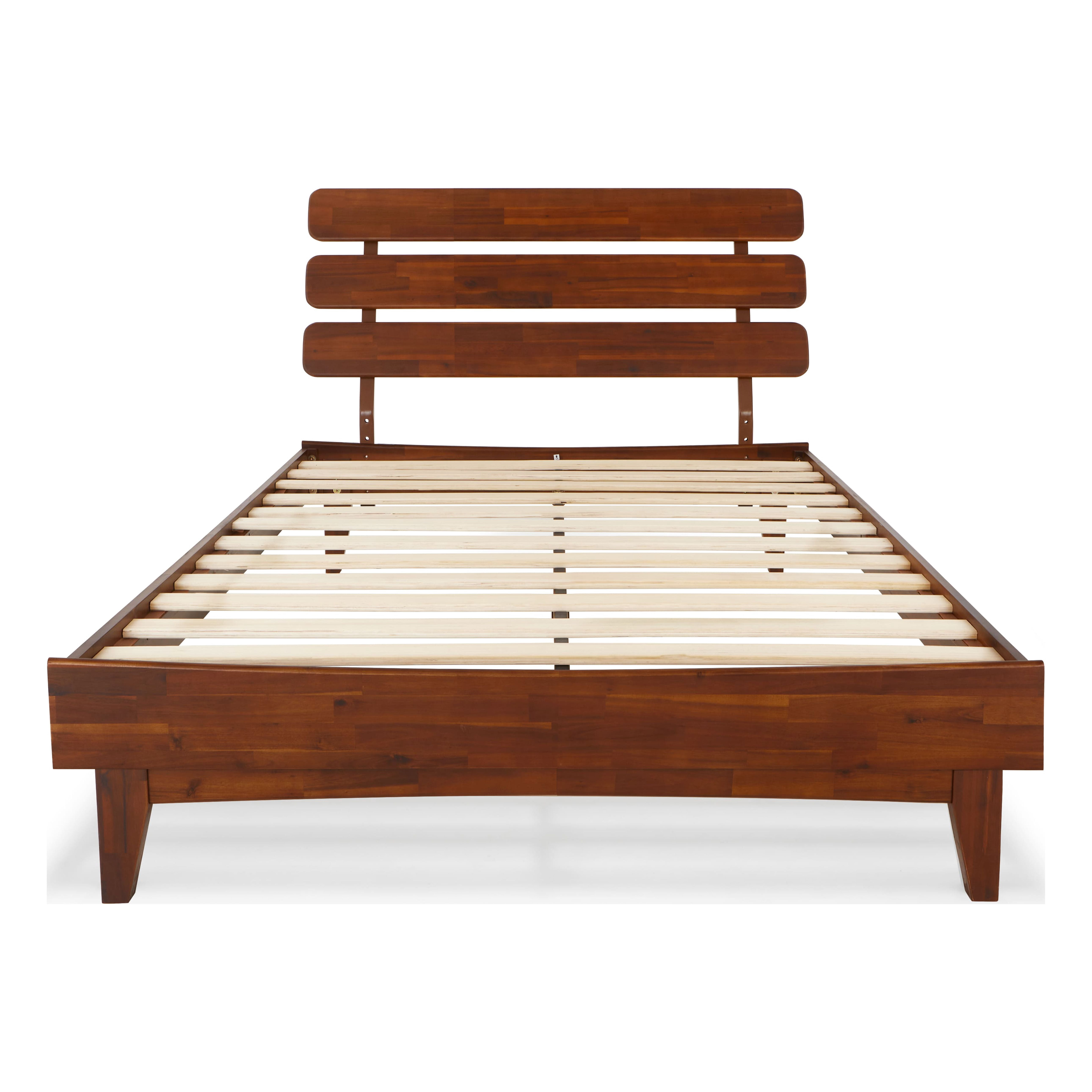 Dalen 45″ Full Bed Frame, Adjustable Headboard, Mid-Century, Solid Wood, Dark Choco