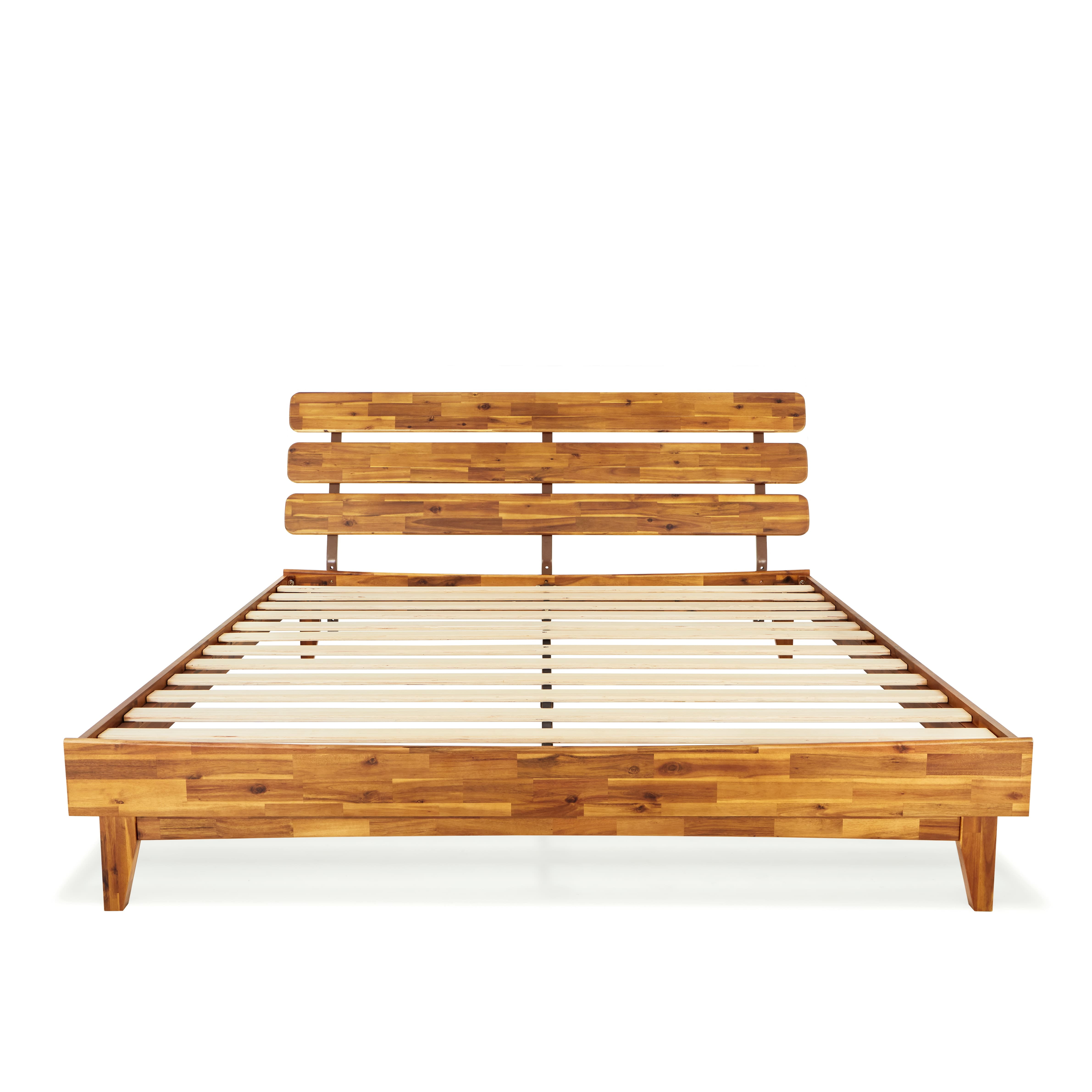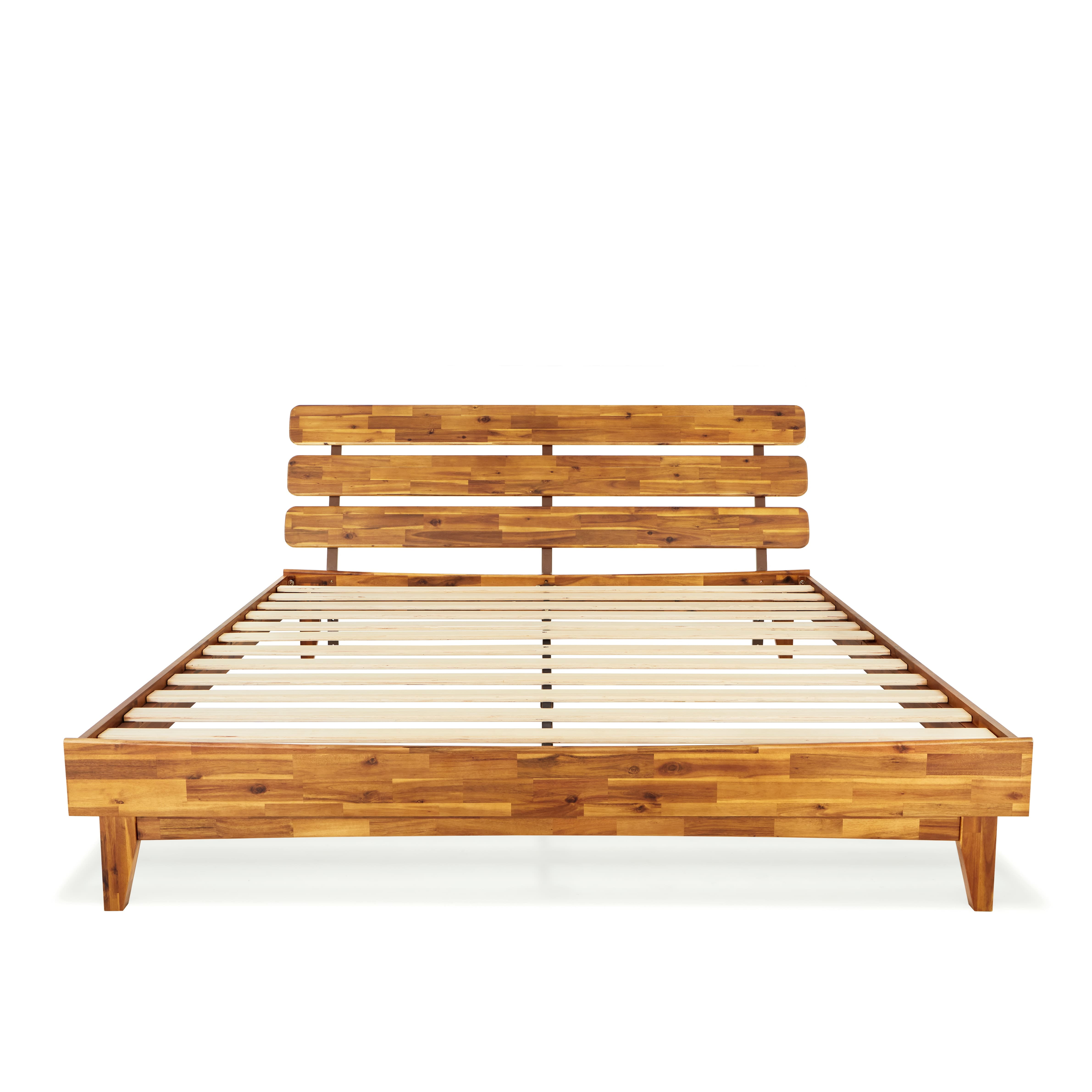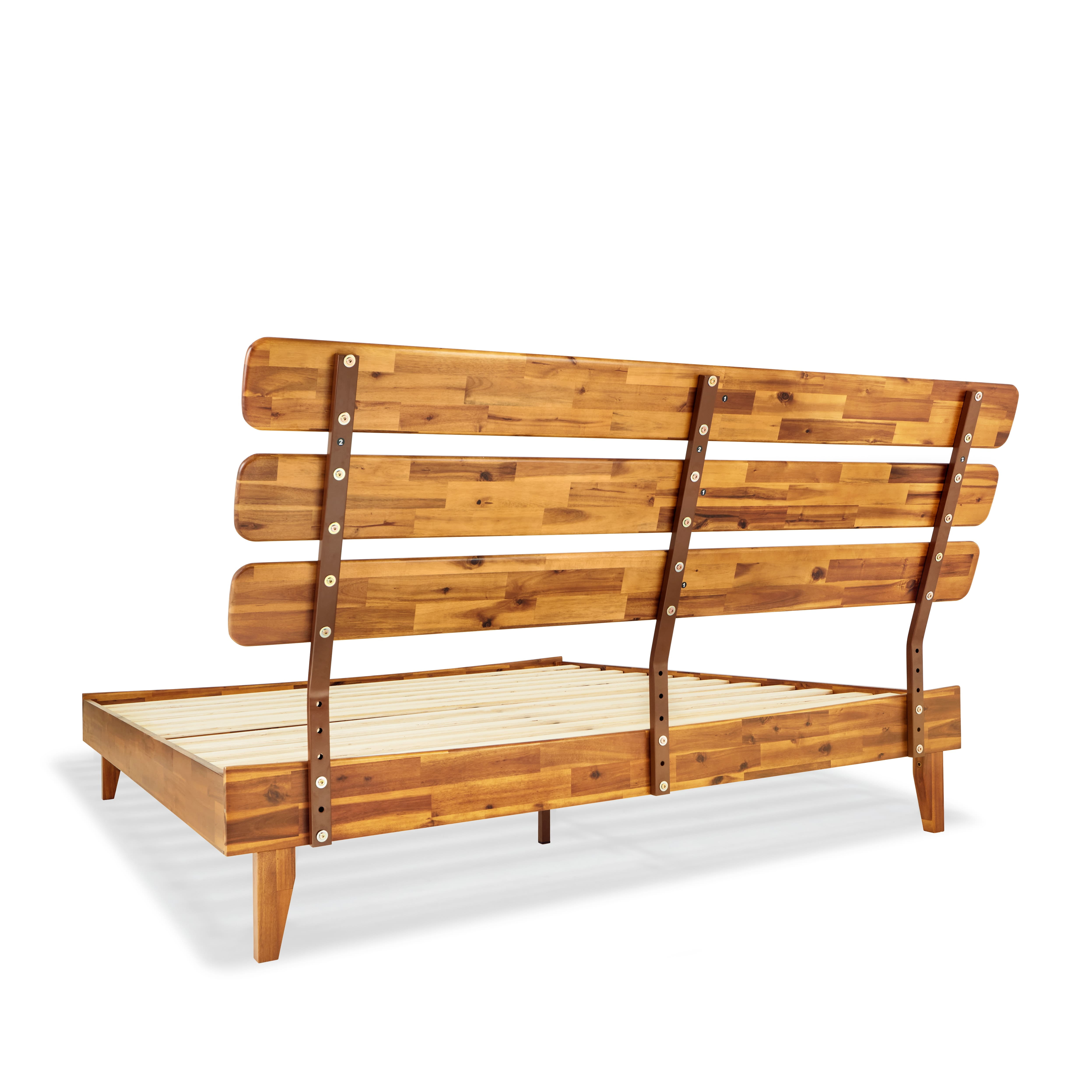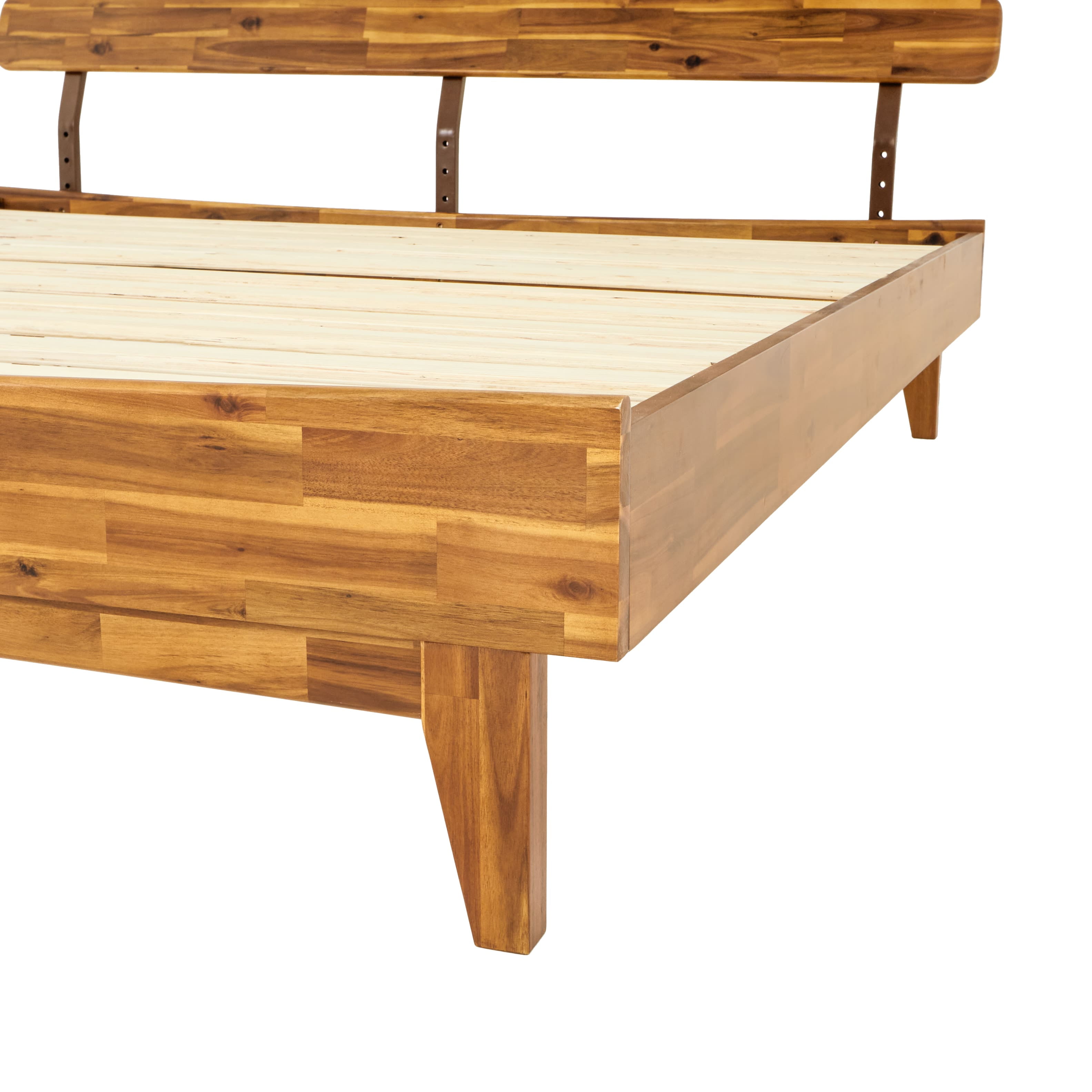 Dalen 45″ King Bed Frame, Adjustable Headboard, Mid-Century, Solid Wood, Caramel