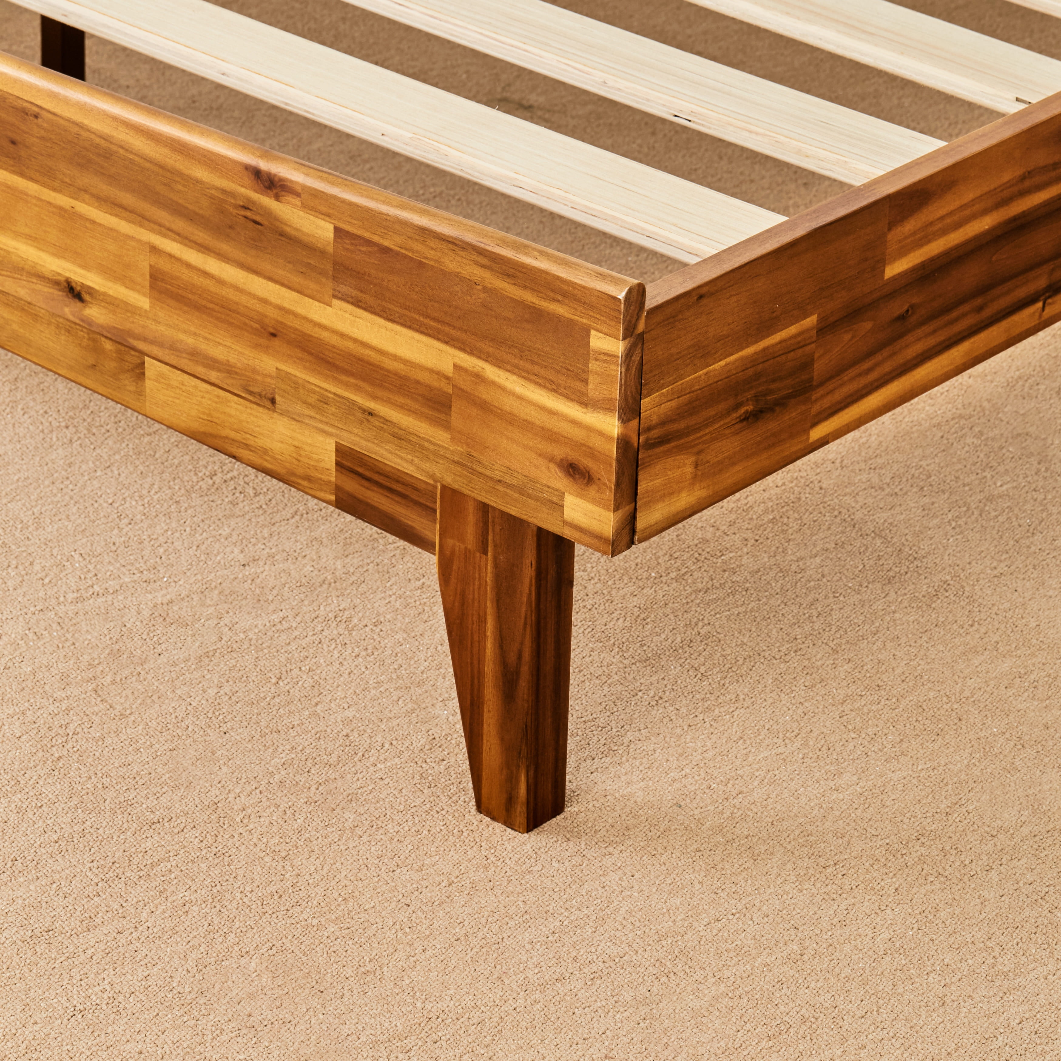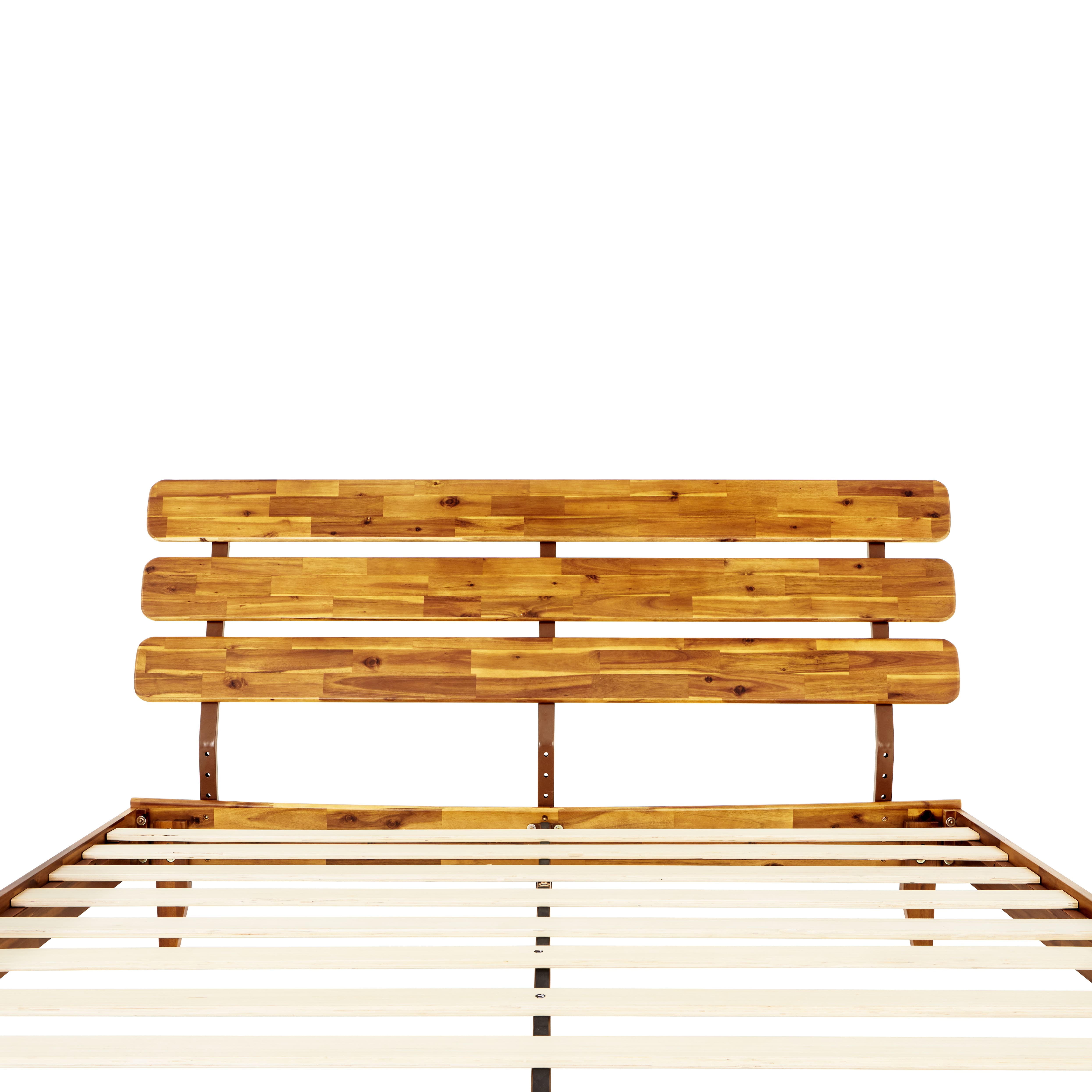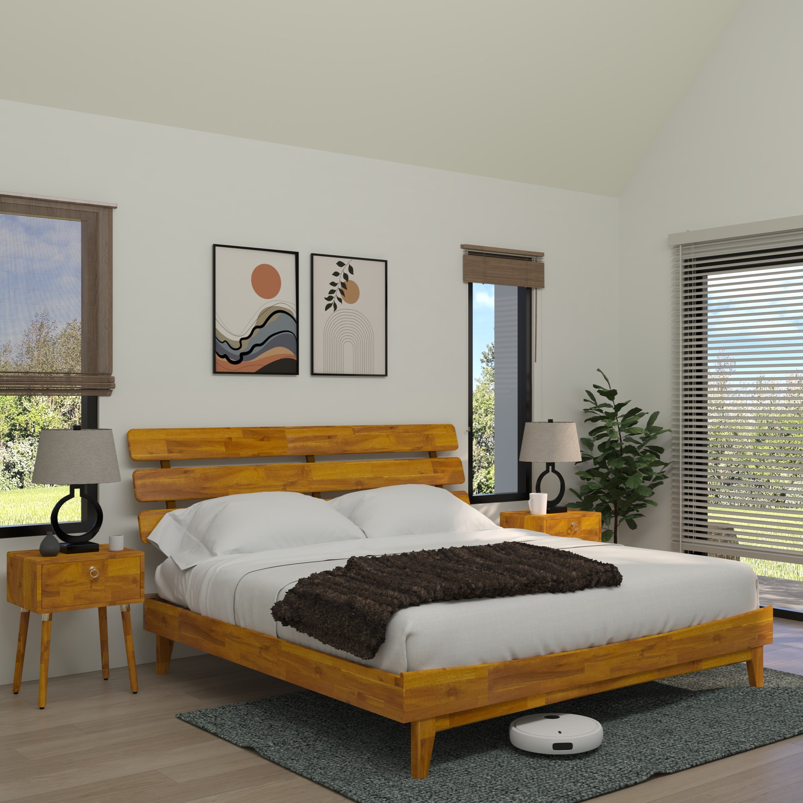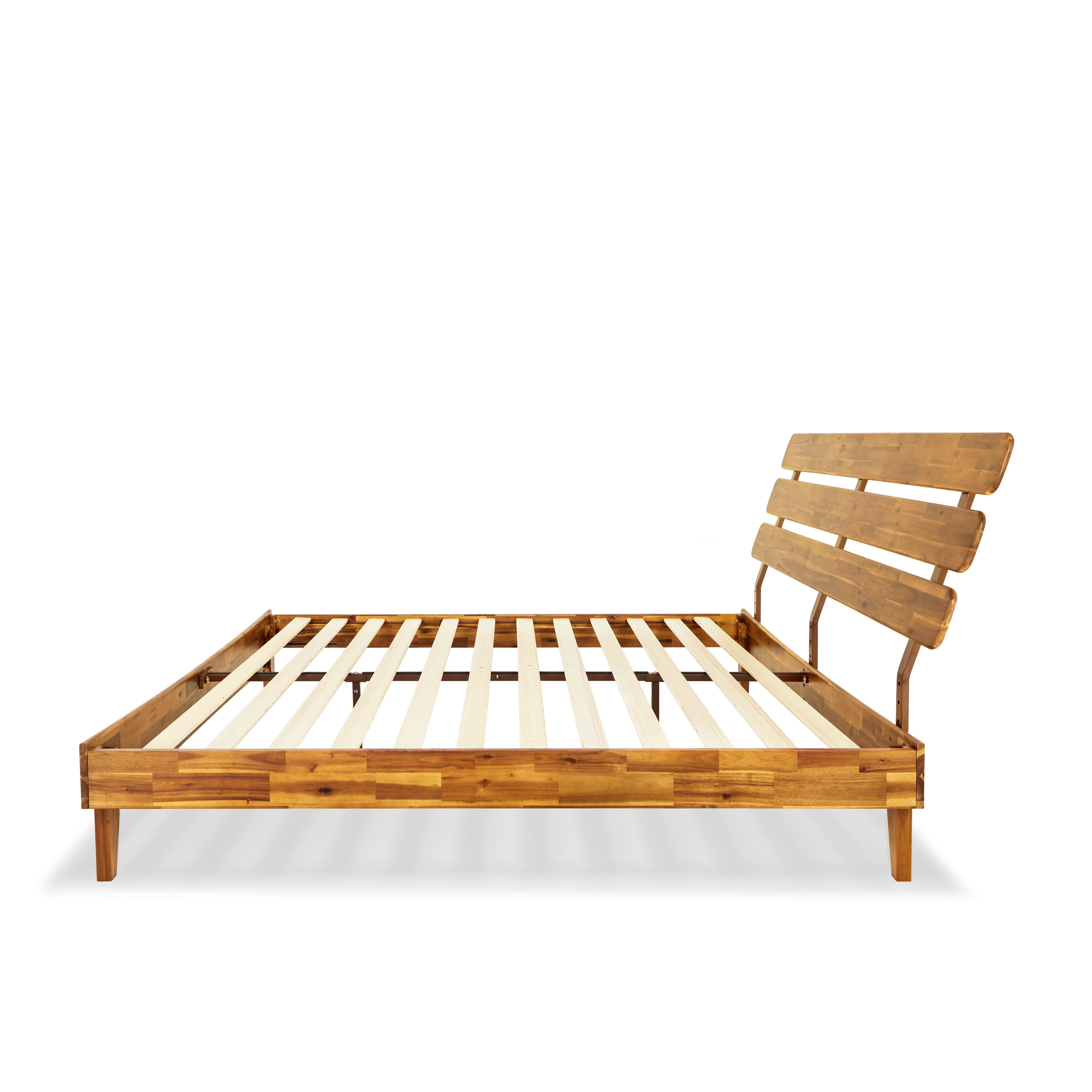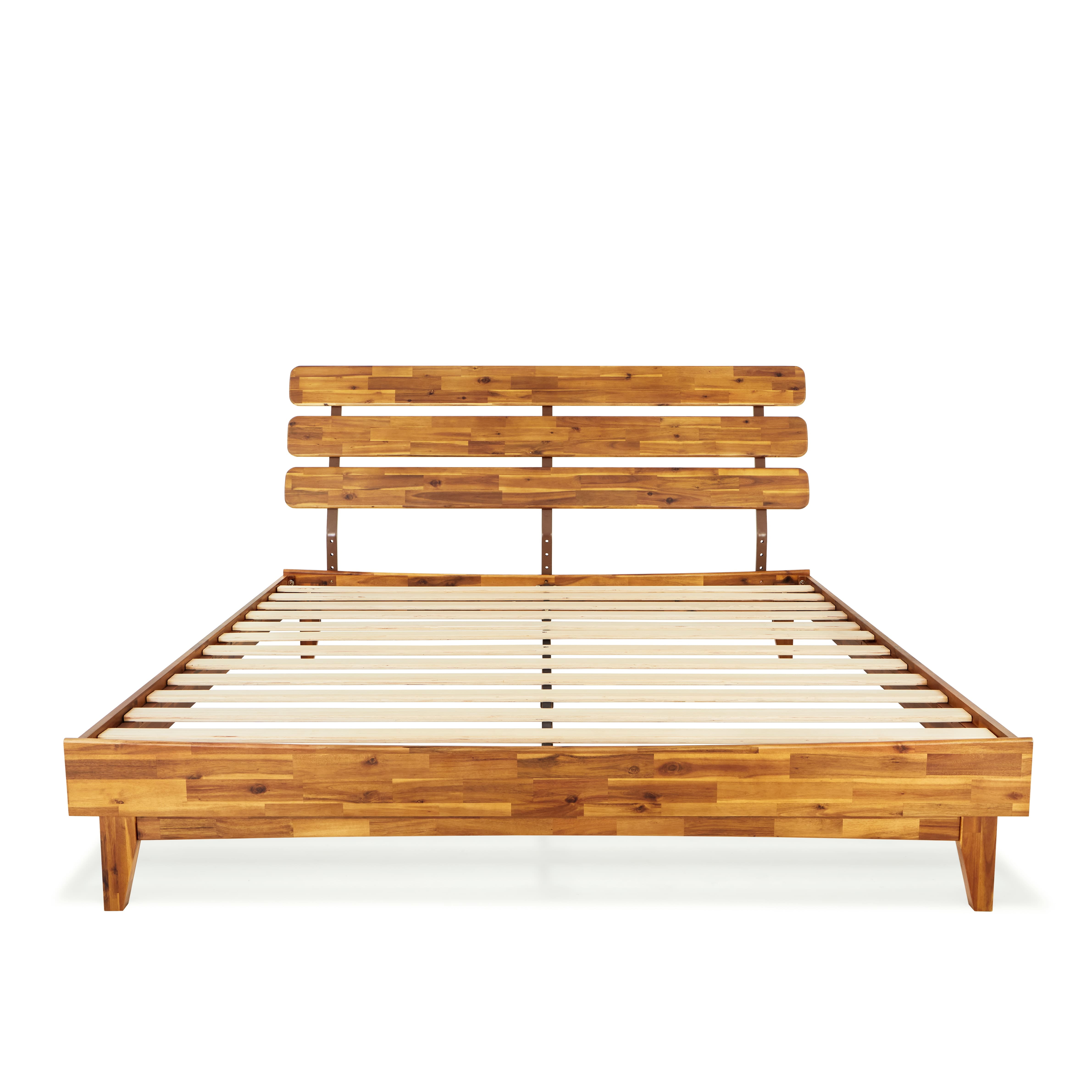 Dalen 45″ King Bed Frame, Adjustable Headboard, Mid-Century, Solid Wood, Caramel