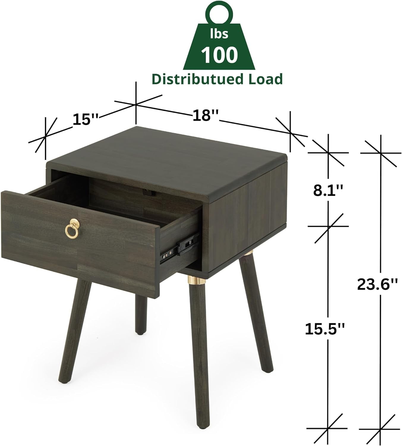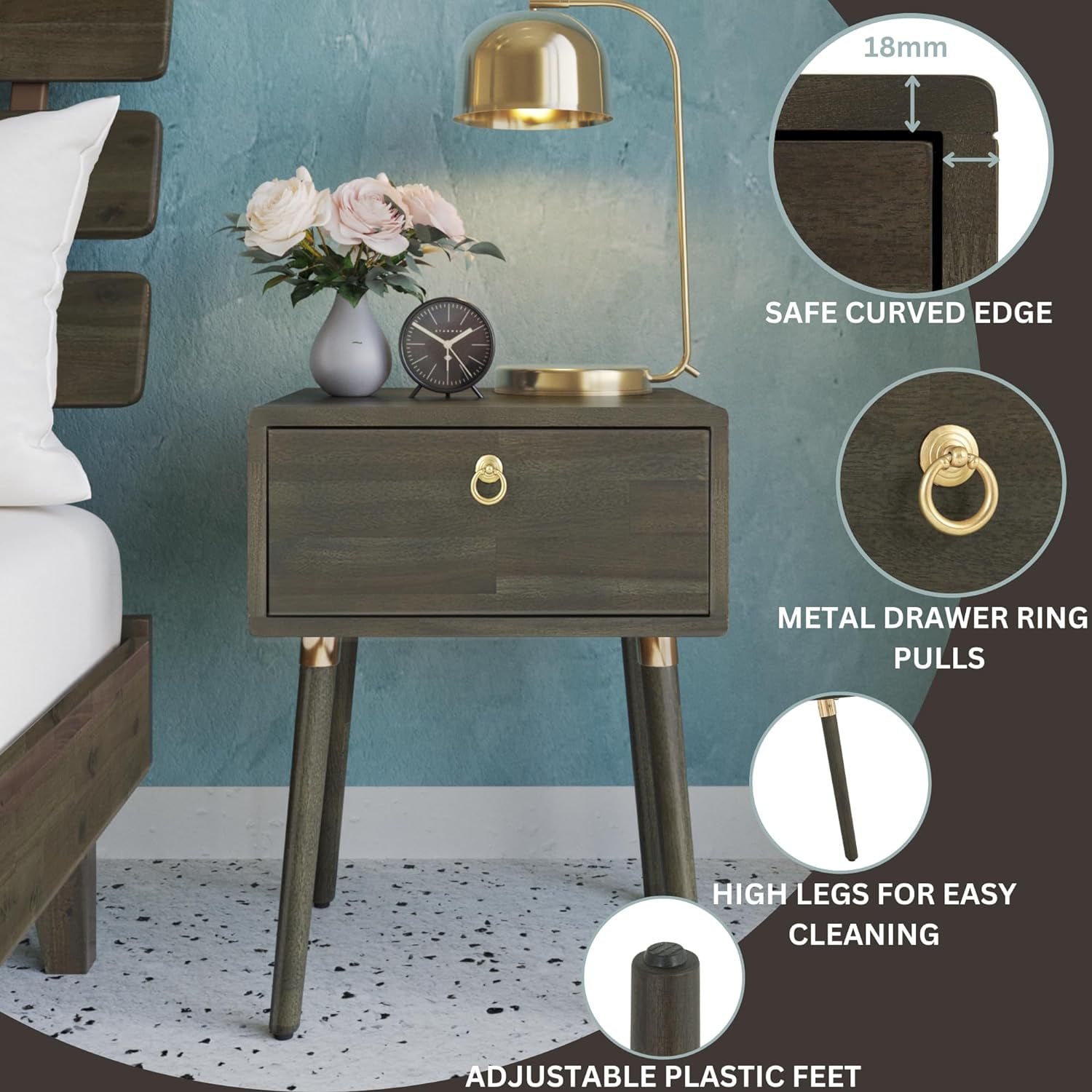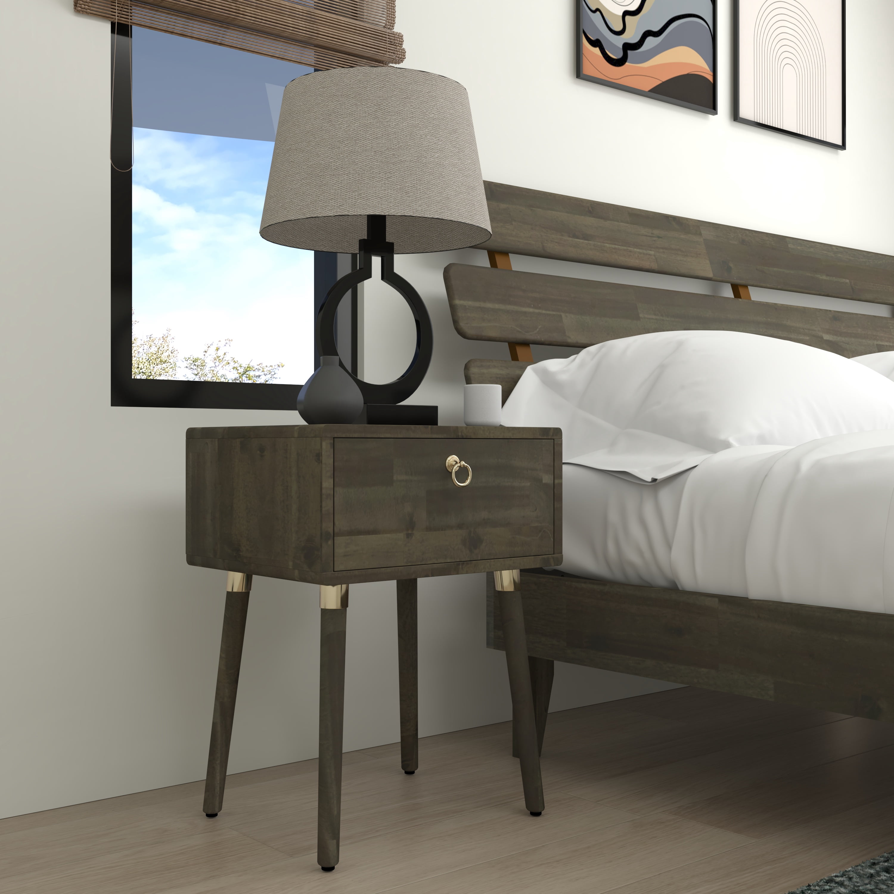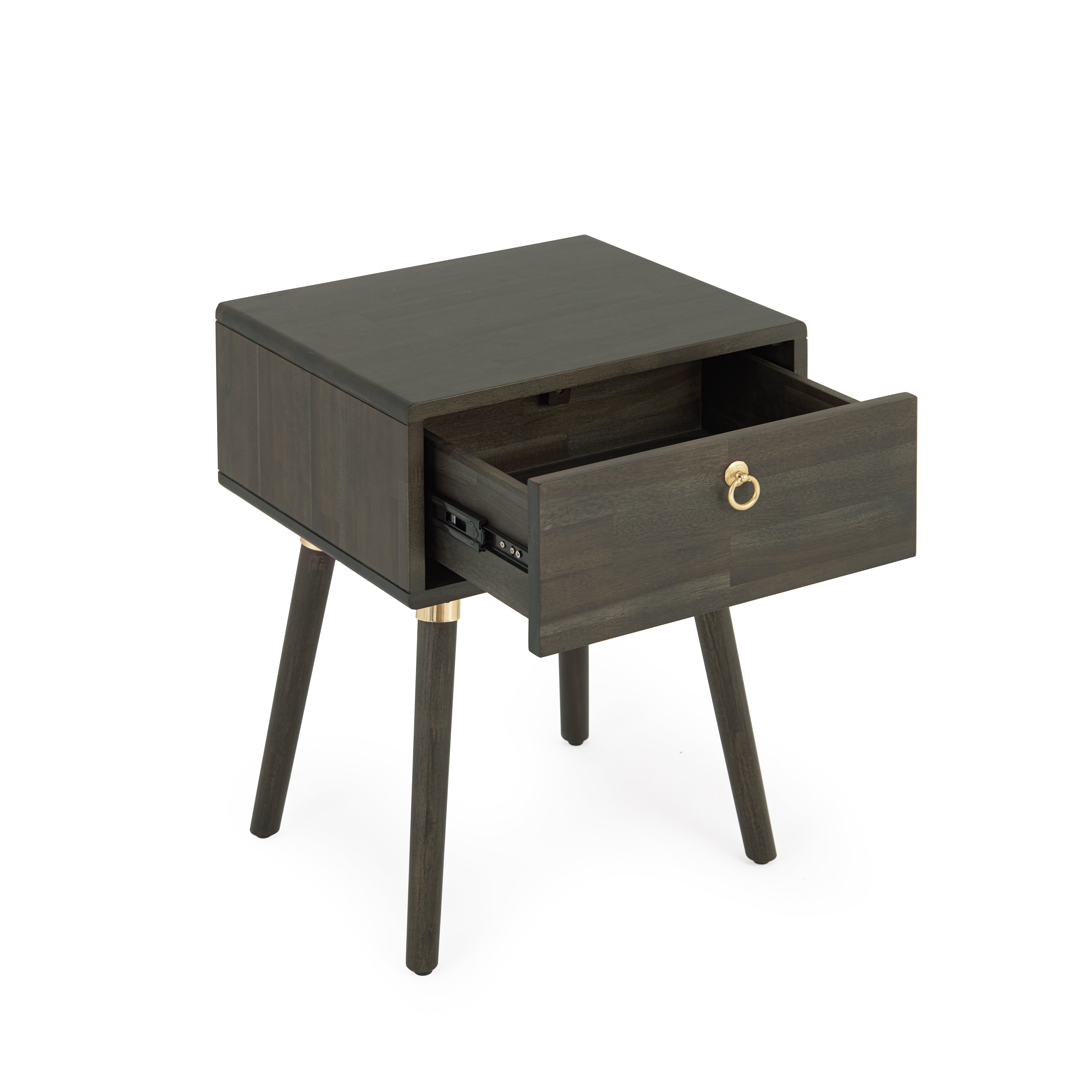 Dalen Nightstand, Mid-Century Style, Solid Wood Side Table, Mocha