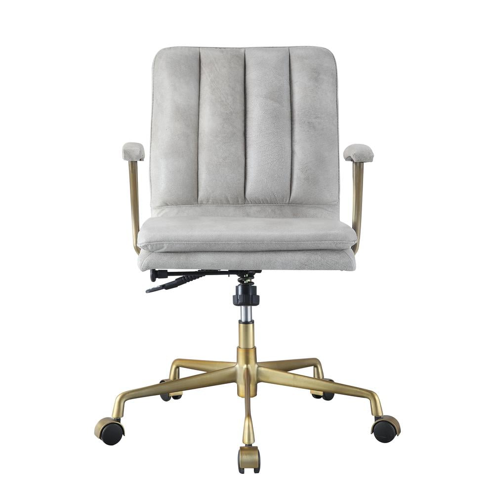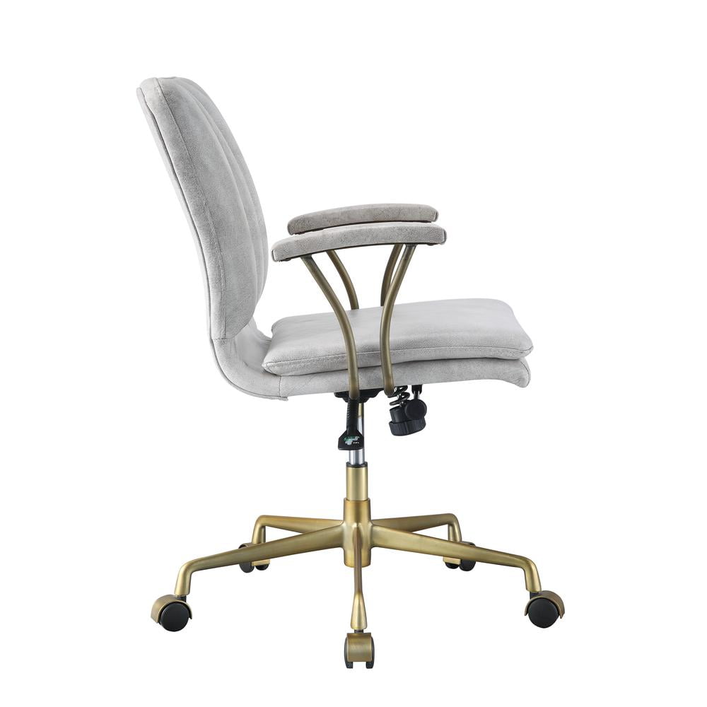 Acme Furniture Office Chair, Vintage White Top Grain Leather & Gold