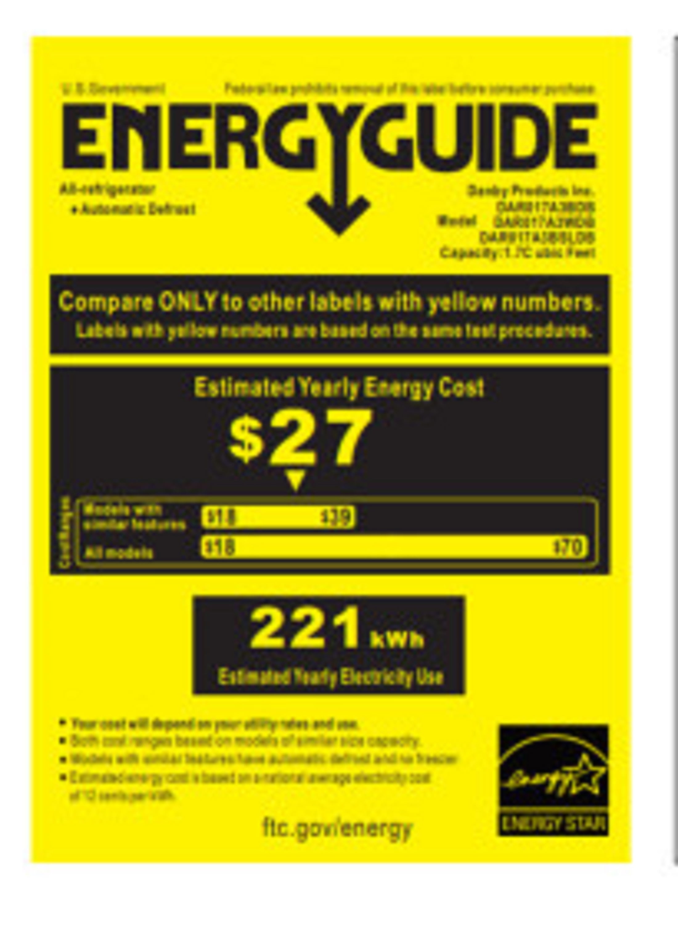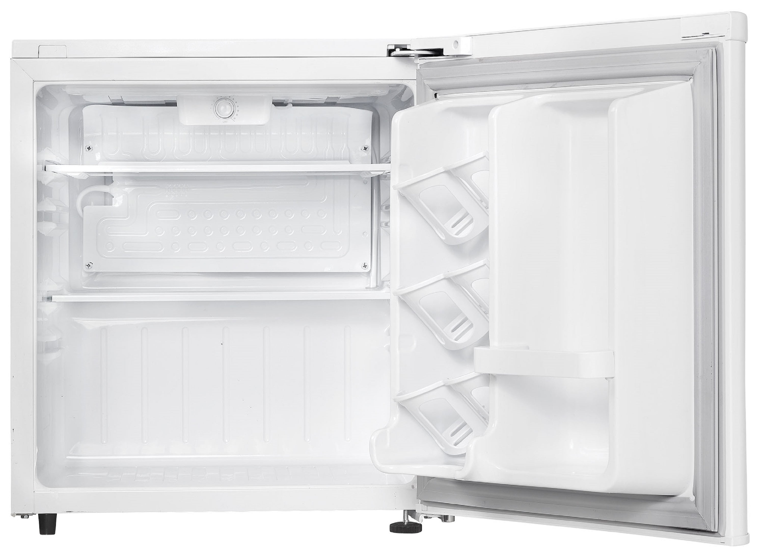 1.7 cubic foot (49 liters) capacity compact refrigerator gives you ample beverage storage space Energy Star compliant and environmentally friendly R600a refrigerant provides the utmost energy efficiency Integrated door shelving with tall bottle storage features more room for all kinds of beverages CanStor beverage dispensing system allows for an ideal place to store your canned drinks Interior white LED light makes it easy to see especially at night Scratch resistant worktop lets you place any drinks or items on top of the fridge without damaging it Automatic defrost makes cleaning this mini fridge simple and hassle-free Rubber-grip ergonomic door handle provides a user-friendly experience and easy accessibility Color: White Dimensions (W x H x D): 17.68 x 20.08 x 20.43 Weight: 44.5 pounds Manufacturer warranty: 1-year warranty