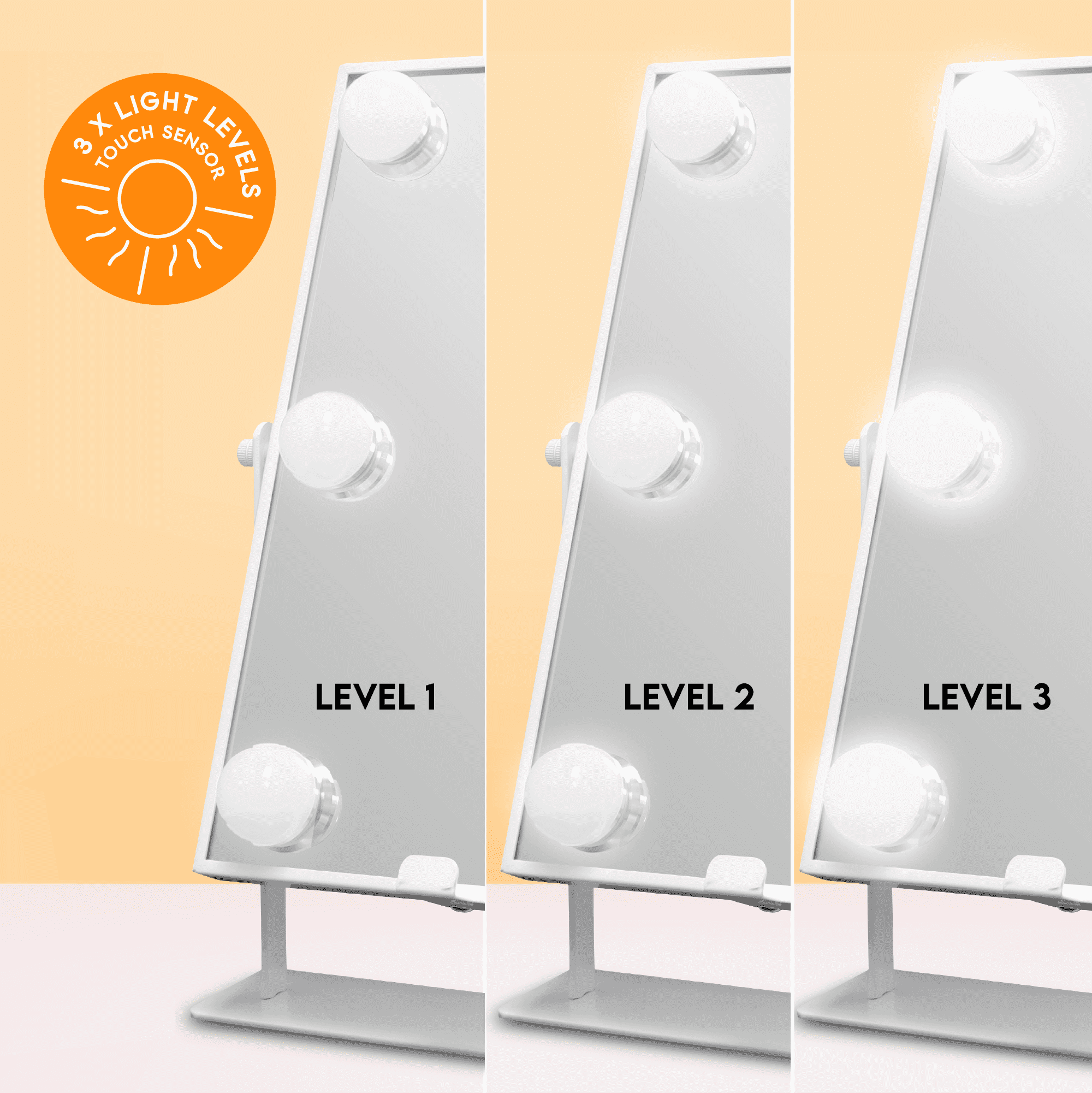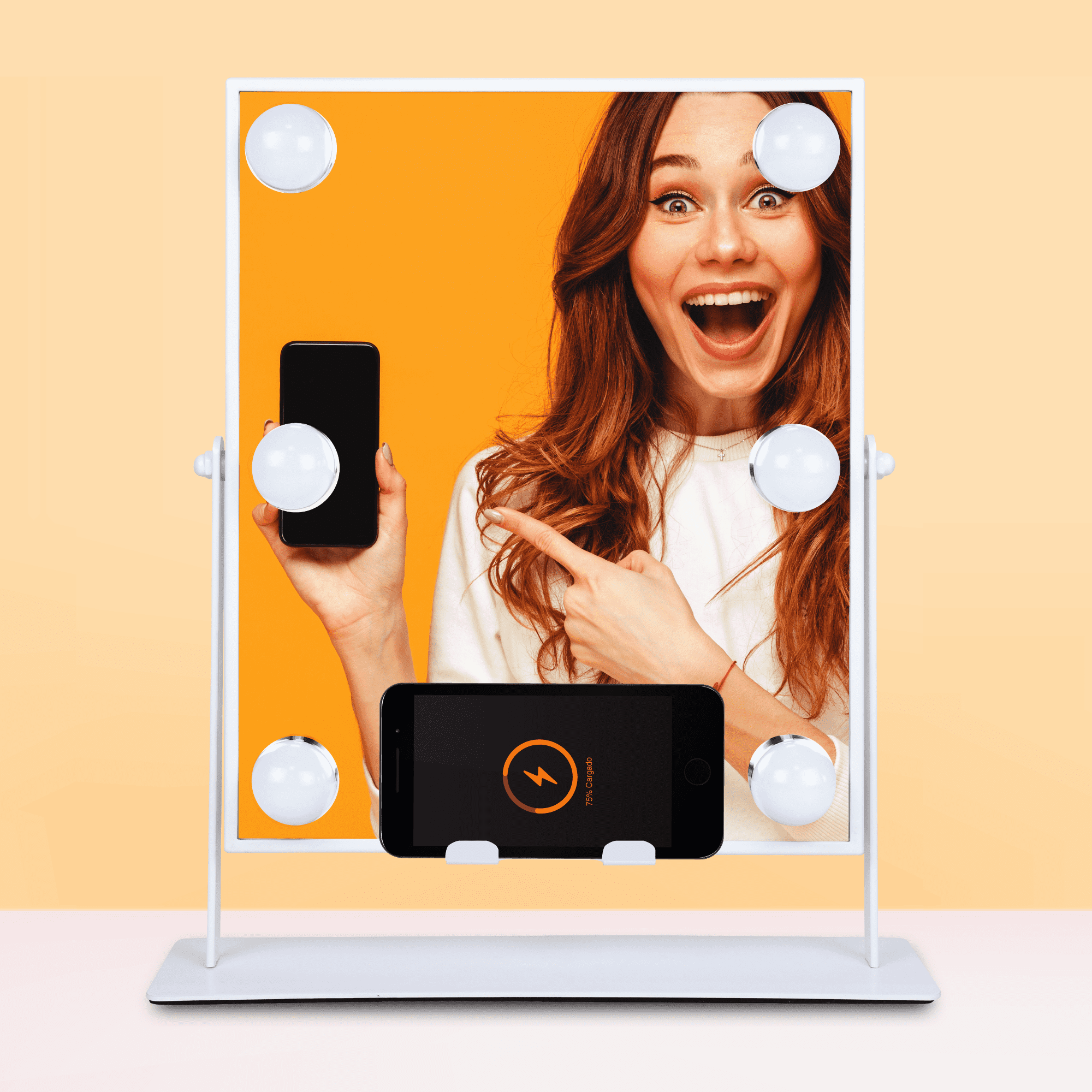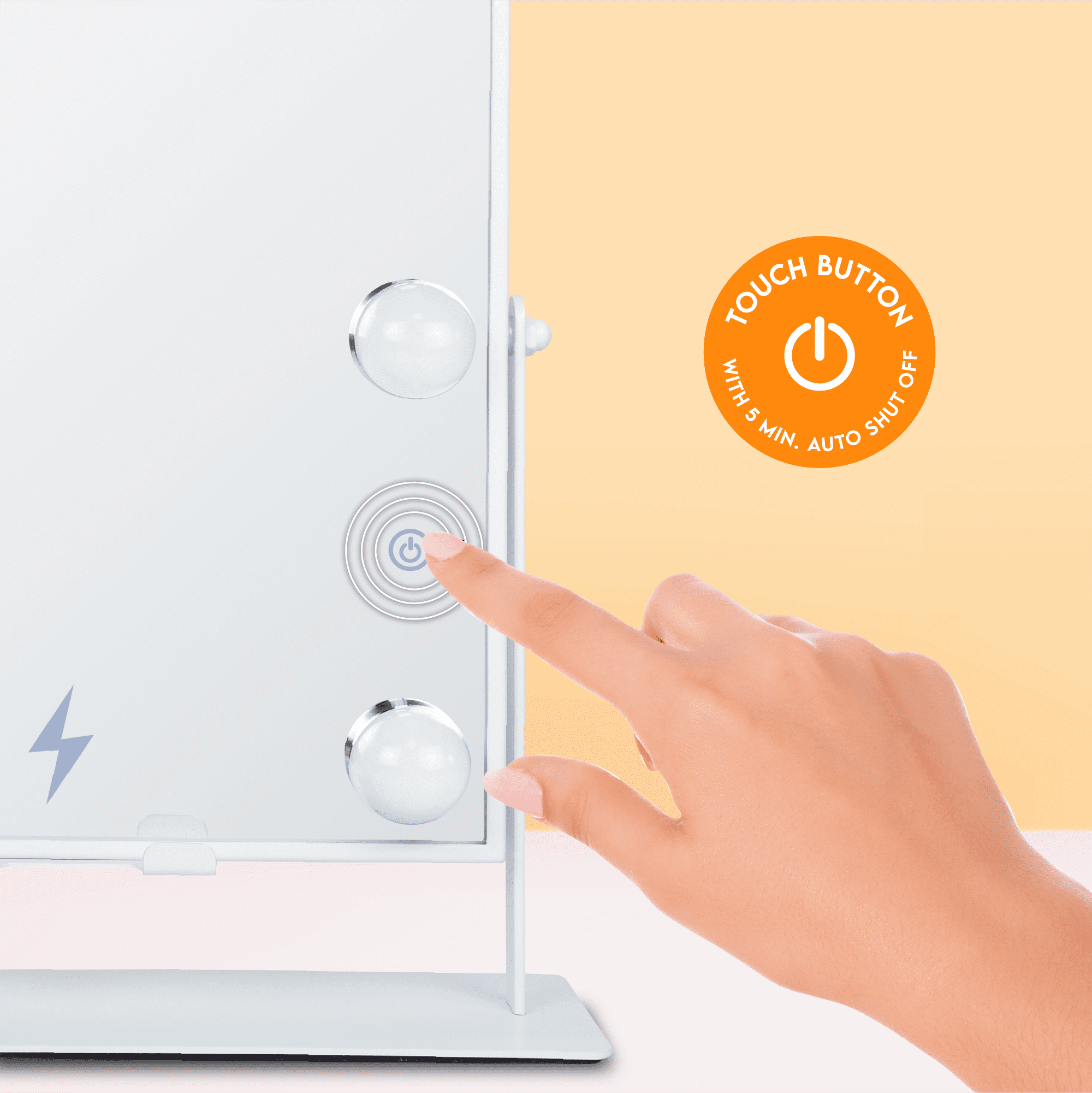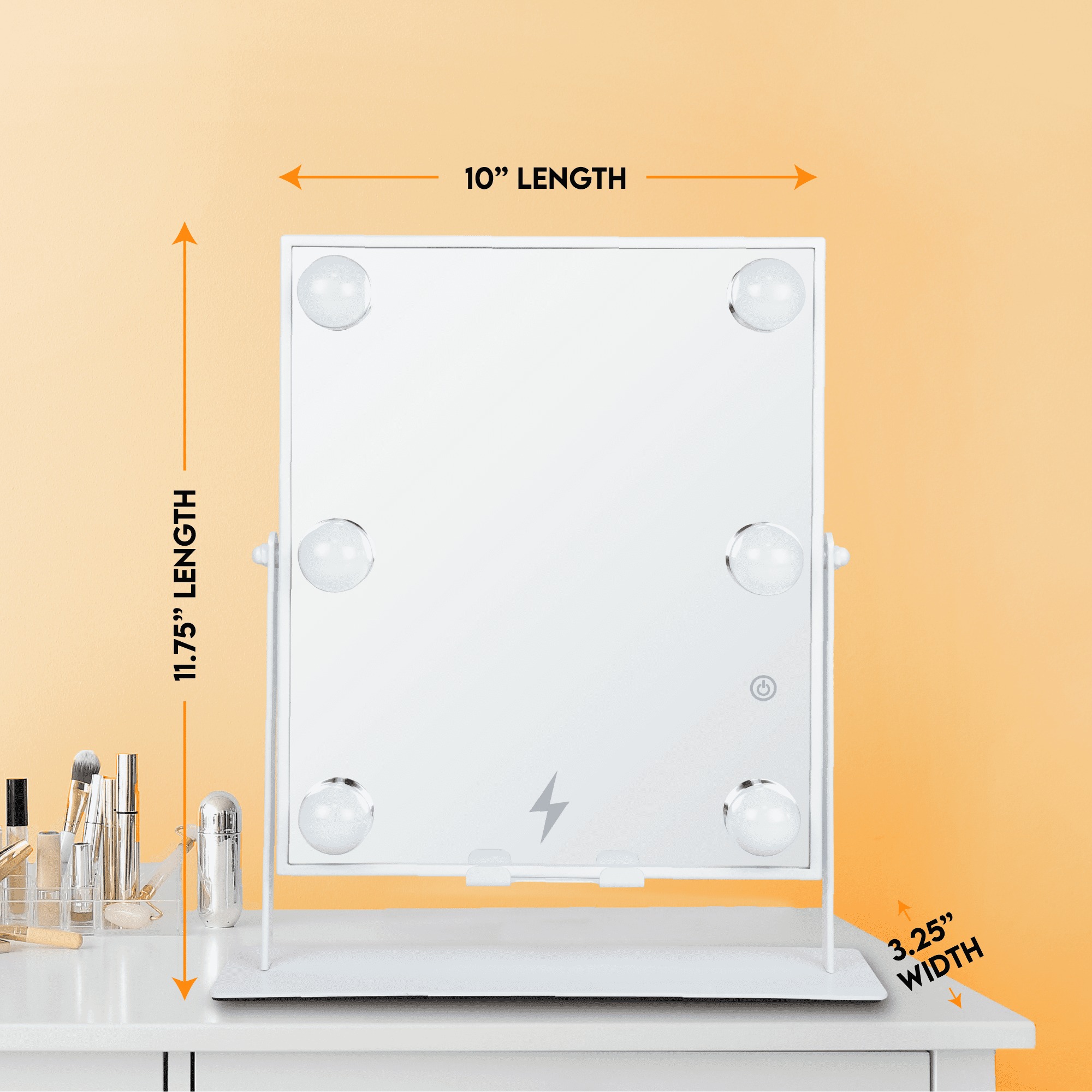 High Quality Ultra-Vue® Distortion-Free Glass Smartphone wireless charger with stand Bluetooth® Connectivity Built-in speakers to listen to music while applying makeup 5-minute auto shut-off 3 Light Levels Versatile white color finish matches any décor!