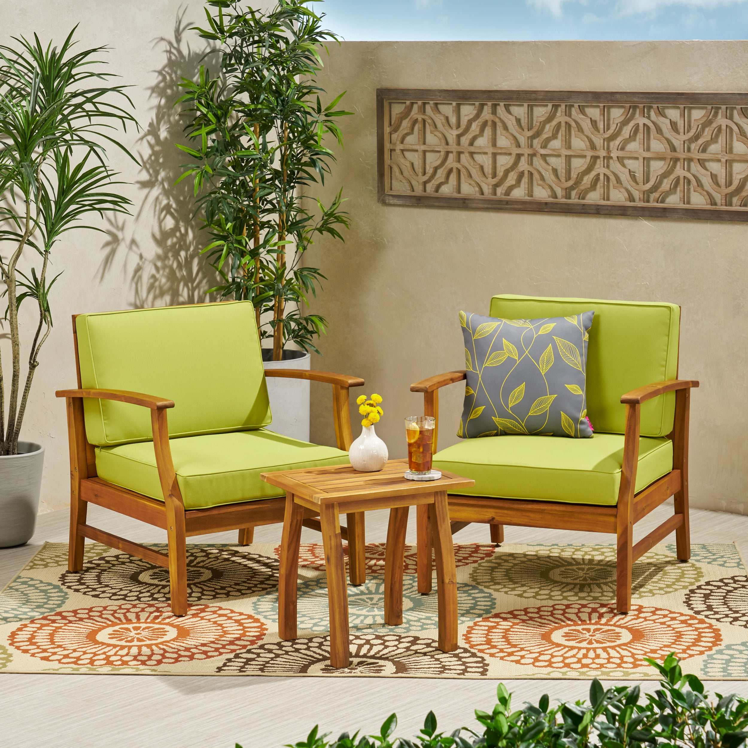 Danielle Outdoor Acacia Wood 2 Seater Chat Set with Cushions, Teak and Green