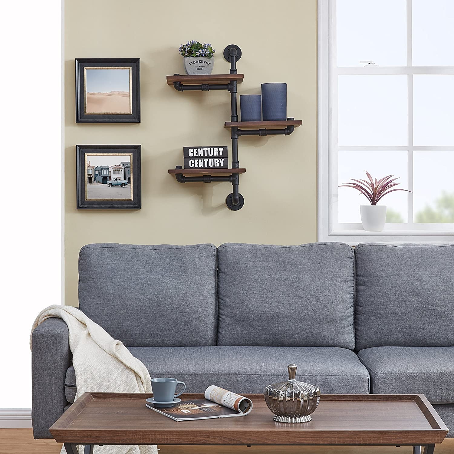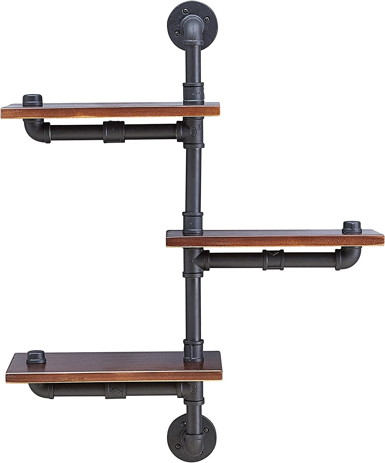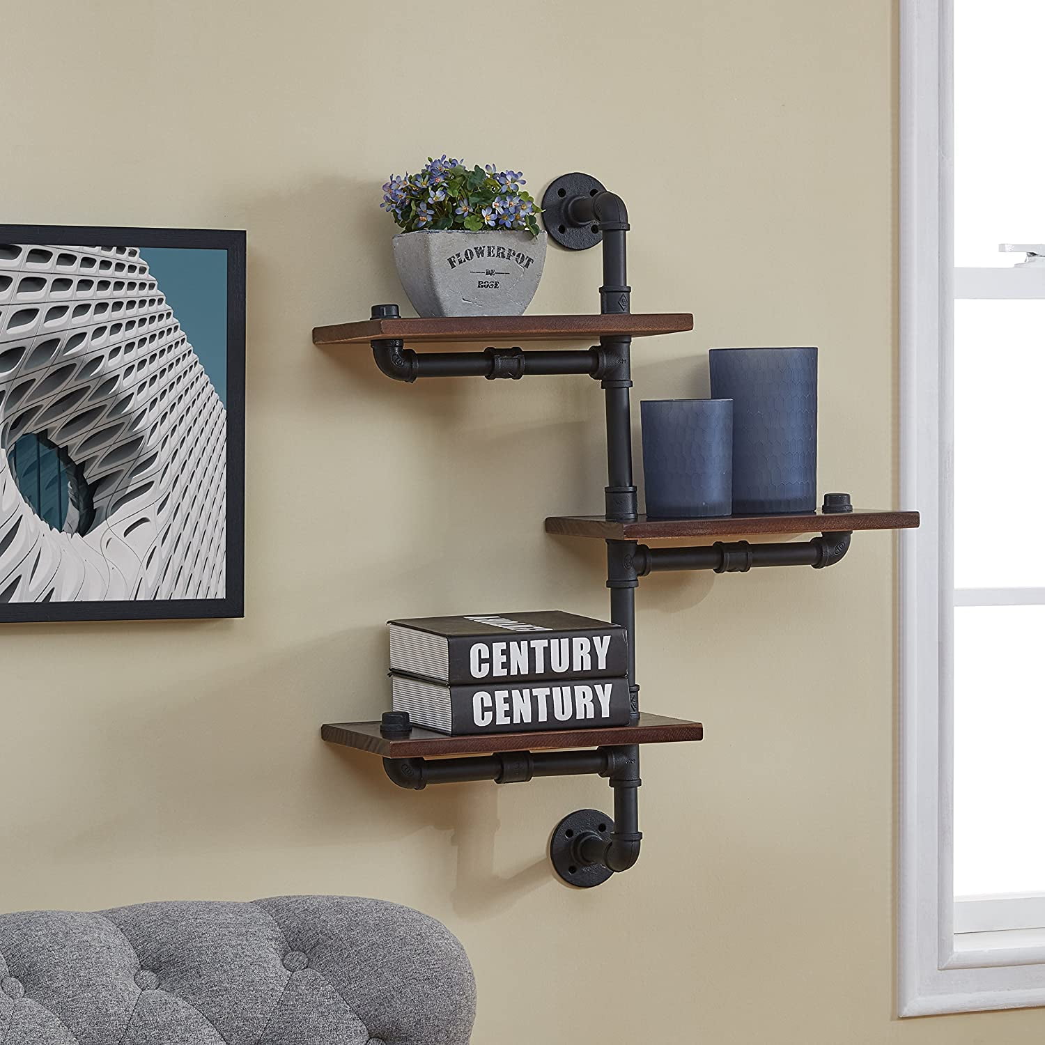 There’s no better way to add a little industrial flair to your living space than with the Danya B. 24″ 3-Tier Vertical Floating Staggered Industrial Rustic Pipe Shelving Unit. Elegantly crafted with the unique look of bare pipes finished in black, this fashionable wall accent piece comes with three stained wood shelves that can organize and display anything from books, vases, plants, or memorabilia. Display this chic wall shelf in urban abodes, contemporary spaces, industrial living rooms, or just anywhere where a bit of visual appeal is needed. This stylish 3-Tier shelf is a timeless addition to any living space. The unique combination of black finished pipes and stained wood shelves bring a timeless industrial-chic look, with plenty of space to organize and proudly display your favorite memories and mementos. Add a refined touch of rustic flair to your living room, bedroom, or anywhere you want to add a little extra style.