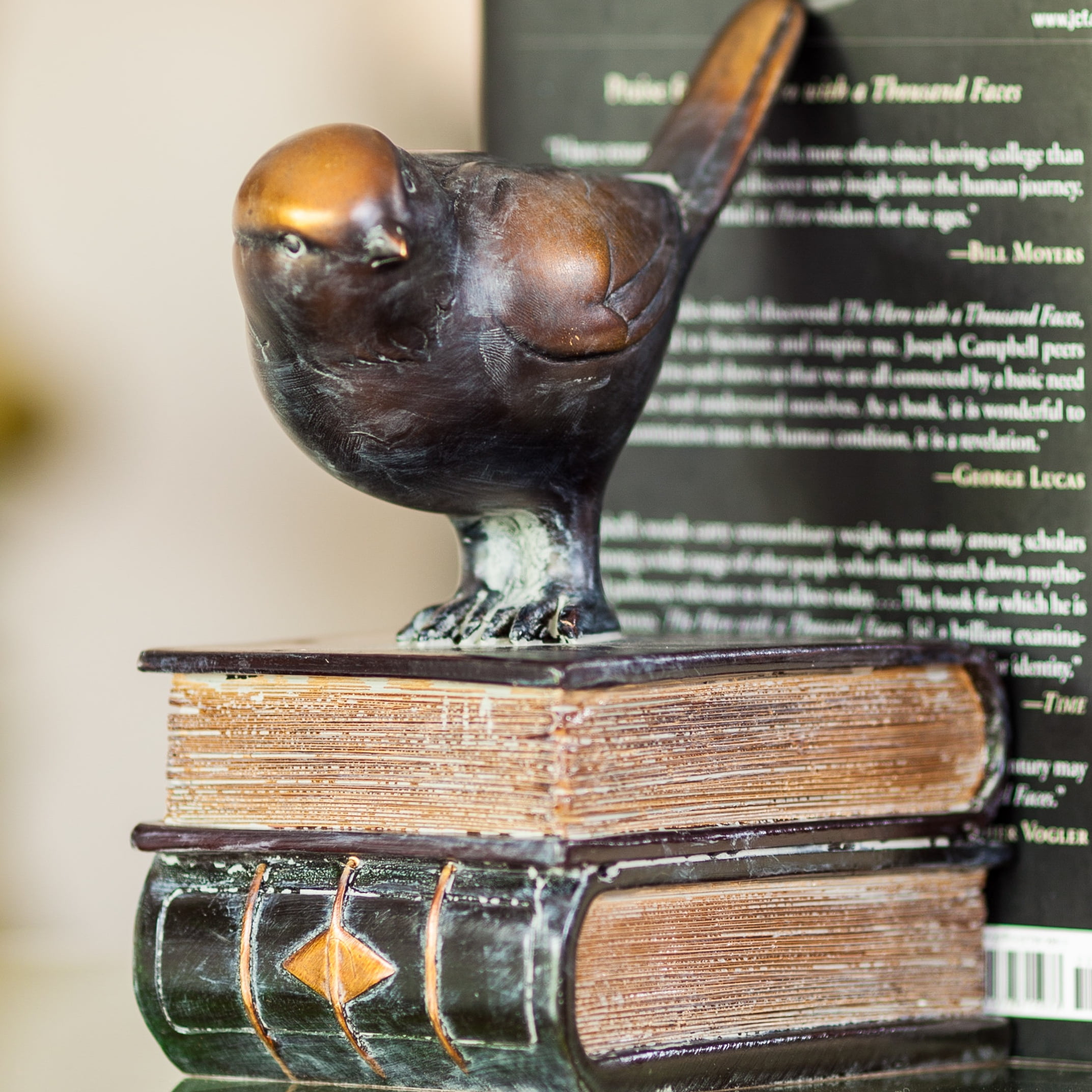 Danya B Antique Bronze Birds on Books Statue Bookends – Set of 2