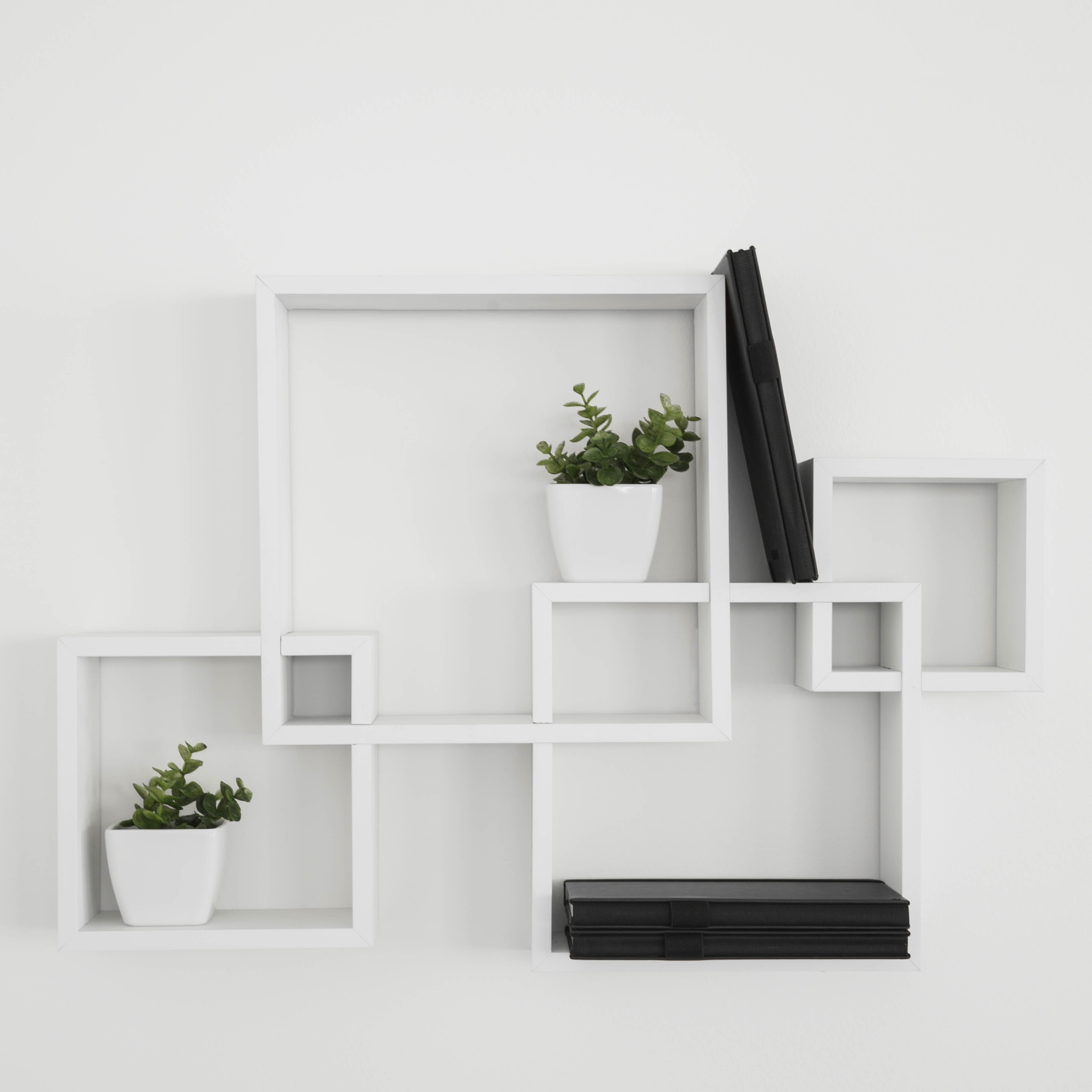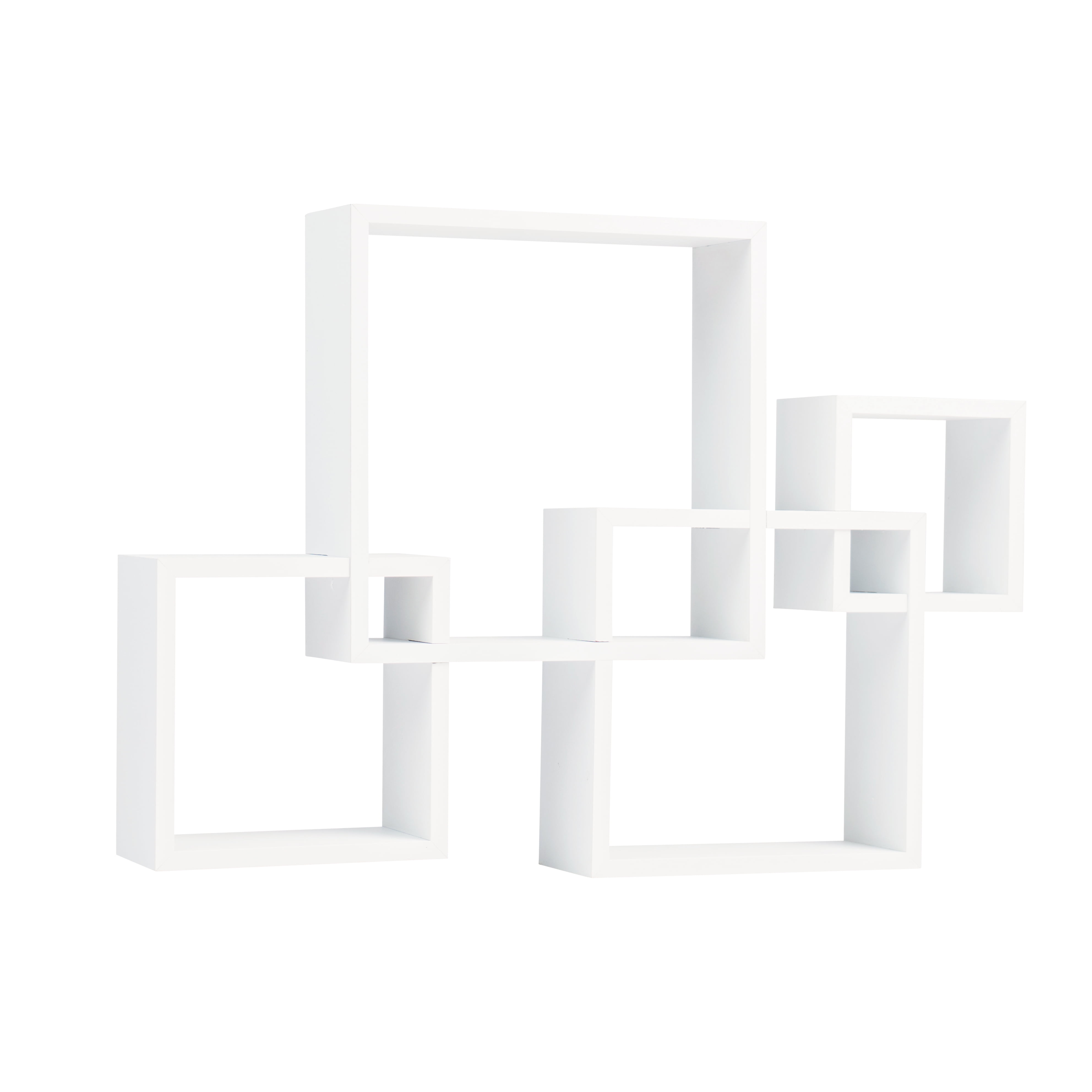Add a fun and playful flair to your living space with the Danya BTM Intersecting Cube Shelves – White. Intersecting cubes create an alluring geometric wall art that doubles as a functional shelf for books, photographs, foliage, and other home d������cor. The versatile white finish allows easy integration to any color motif. Mount the Danya BTM Intersecting Cube Shelves – White in contemporary living rooms or bedrooms to create a fun and modern statement room! Danya BTM is a registered trademark of Danya B Inc.