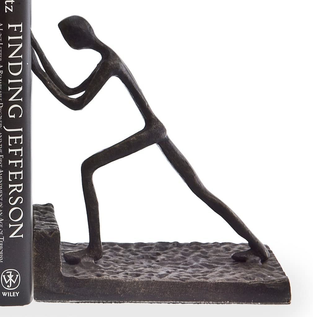 Bookends keep books in place, but Danya B. bookend set with men pushing into the books adds character and style to your shelves at home or in your office. Hand crafted in iron with tarnish-proof bronze finish with gold patina. Danya B. is a registered trademark of Danya B Inc.