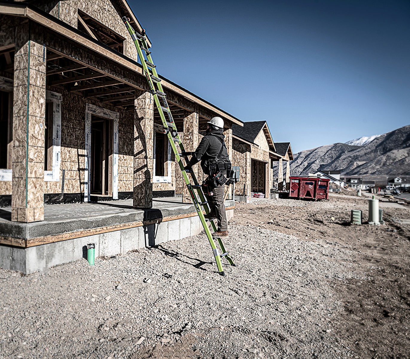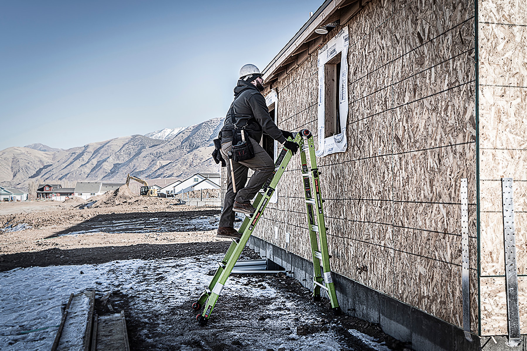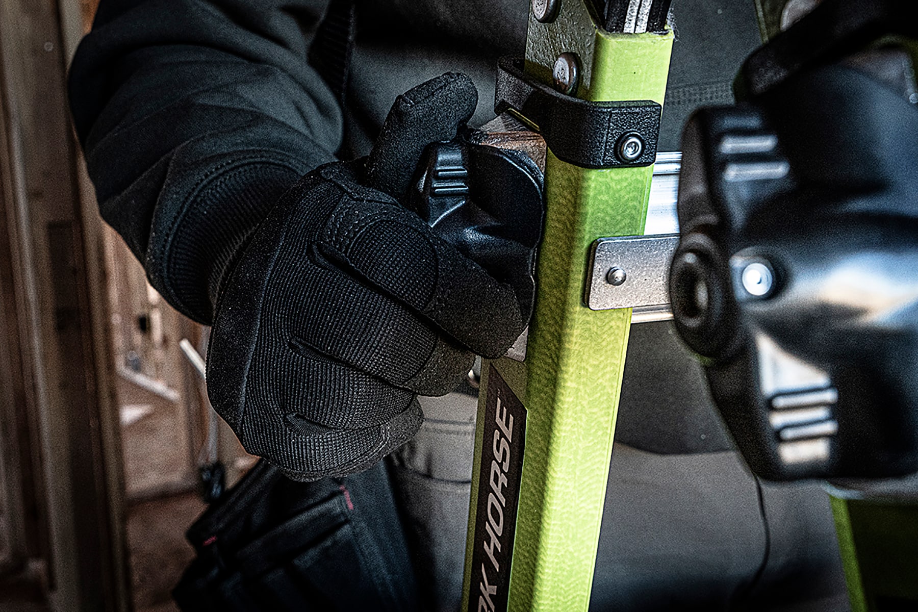 The Little Giant® Dark Horse™ combines some of our best ladder features into one versatile, multi-position ladder that will suit your ladder needs for years to come. This multi-position ladder accomplishes multiple tasks with just one ladder. Set up the Dark Horse in stepladder, extension, 90-degree, staircase and trestle-and-plank positions, for an easy climbing experience. Made from durable, non-conductive fiberglass, this ladder is ideal for most jobs, especially ones working around electricity. The Dark Horse is made with Little Giant’s iconic Hi-Viz green fiberglass, a safety-promoting color that increases its visibility for others, keeping you safer while in use. The ladder’s wide-flared base increases side-tip stability to prevent falls from accidental overreaching. Meeting or exceeding all OSHA and ANSI standards, the Dark Horse is rated Type IA to hold 300 lbs.