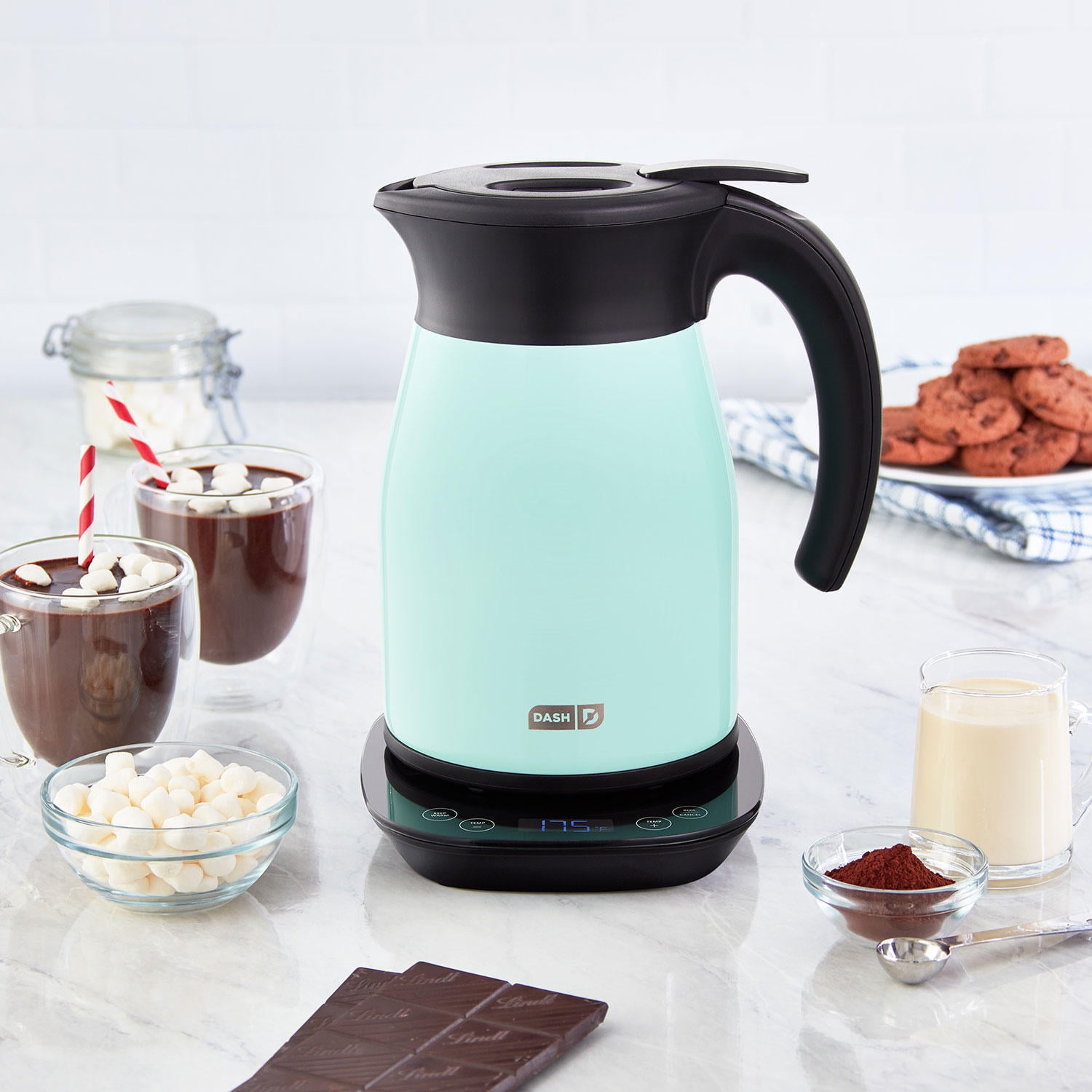 Keep drinks hot or cold for hours with the Dash Insulated Kettle This kettle has stainless steel dual walled vacuum insulation so your drinks stay at a consistent temperature even when traveling or resting on the kitchen table. With the digital interface you can heat to boiling temperature with the touch of a button or set a precise temperature up to The Kettle has a cool touch exterior and comes with an anti spill lid and lever controlled spout thats easy to use with a single hand. A built in probe allows you to read the exact internal temperature of the kettle on the Digital Display. Great for entertaining or travel the Dash Insulated Kettle ensures that your beverages are always the perfect temperature.