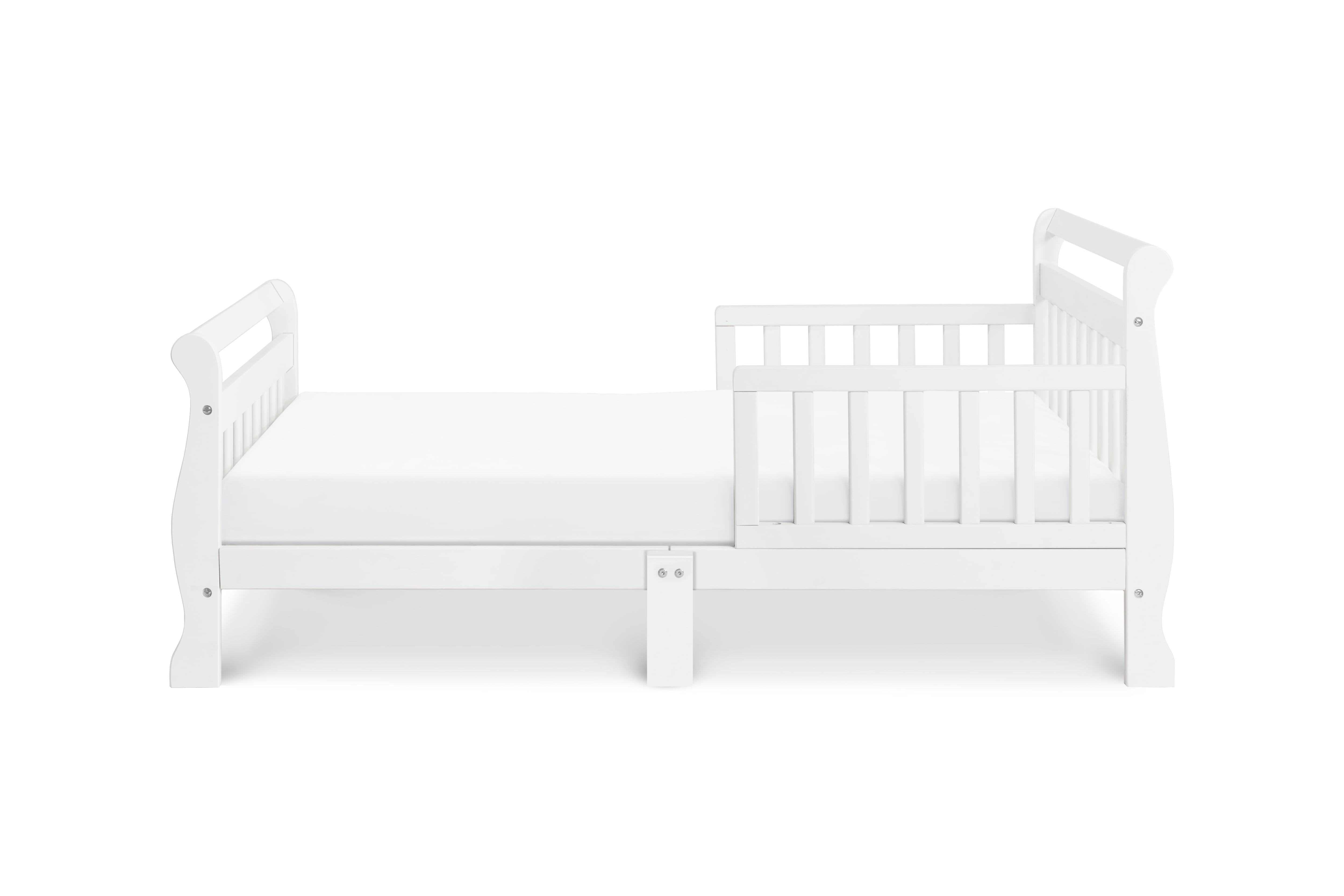 The DaVinci Baby Sleigh Toddler Bed brings the joyful charm of our luxurious sleigh cribs to the next stage of childhood. This adorable bed is set at an appropriately low height, so toddlers can safely climb in and out by themselves. The Sleigh Toddler Bed is ideal for helping toddlers sleep safely and securely while transitioning out of a crib. Sleigh Toddler Bed is solidly built from New Zealand pine wood and is available in four rich finishes.