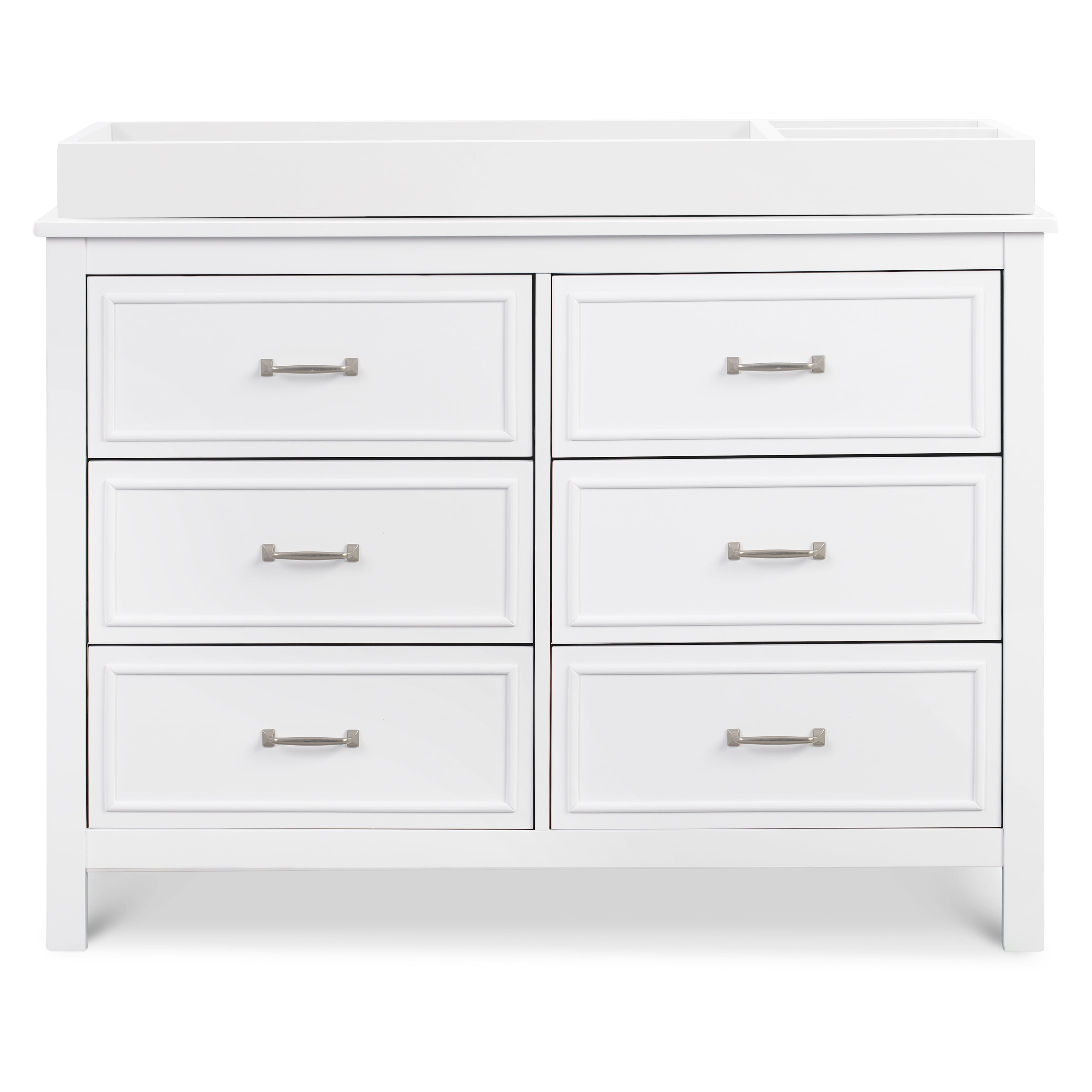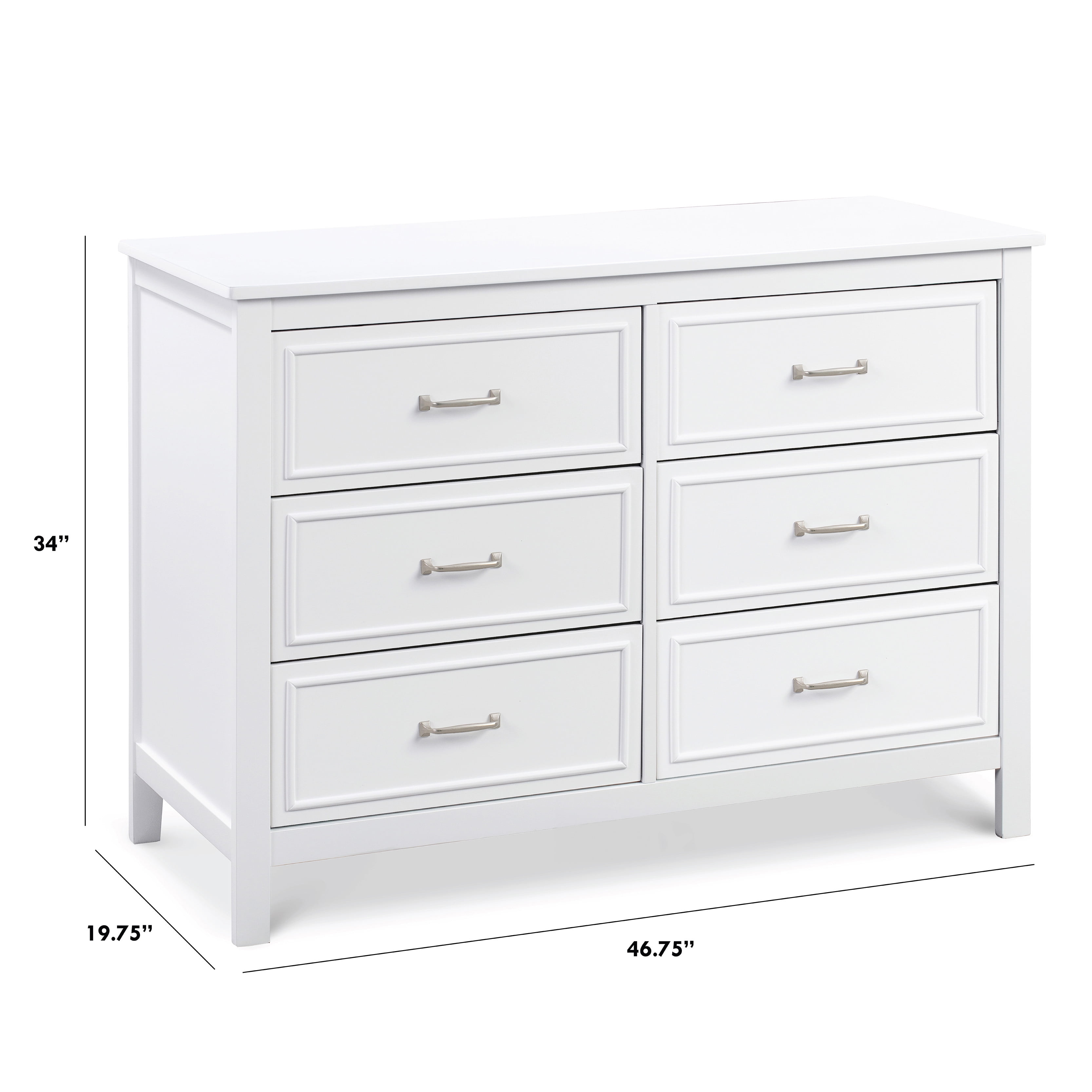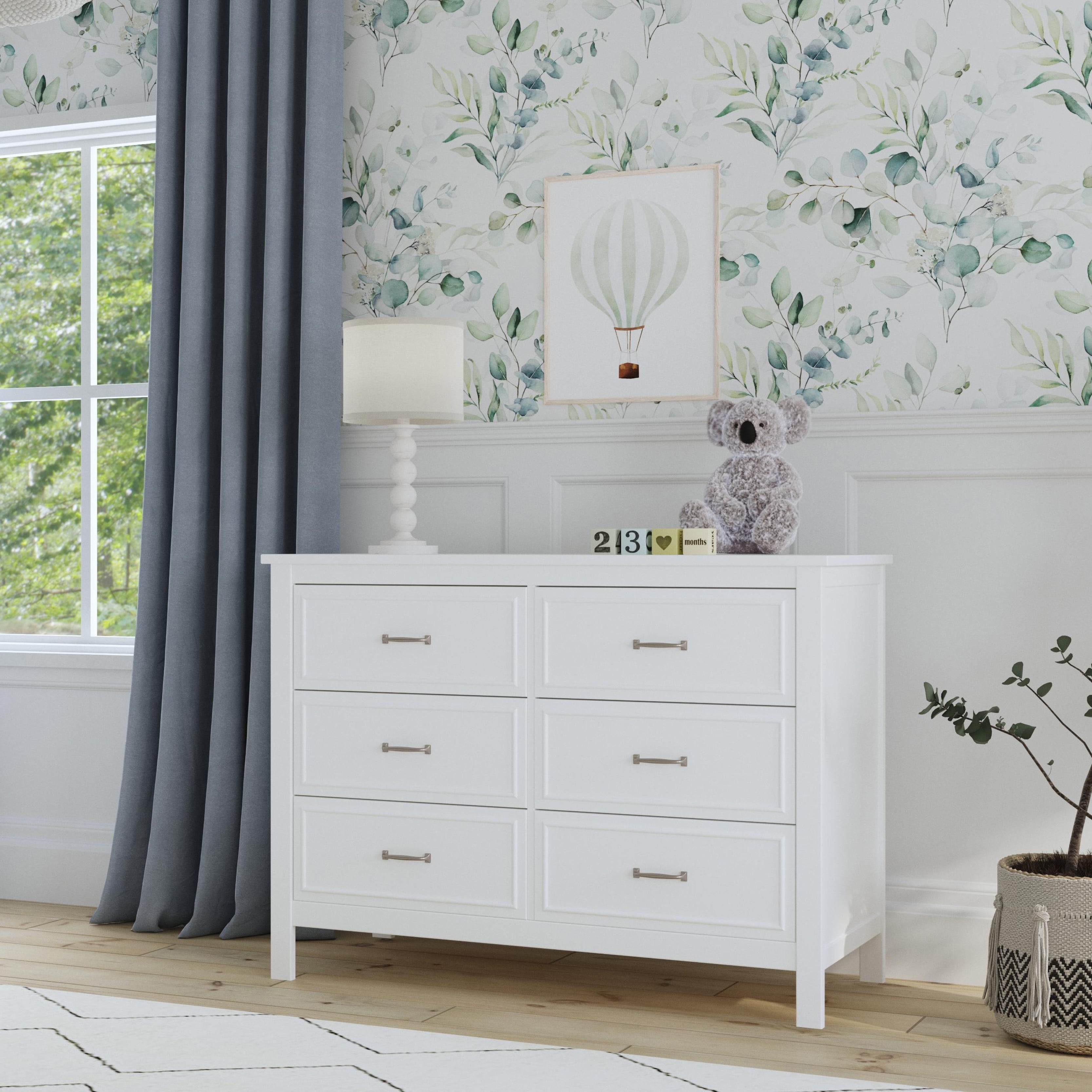 The Charlie 6-Drawer Dresser is the perfect accent piece for your nursery or any room in your home. It features six drawers with generous storage capacity and classic metal pulls. With its timeless design, this dresser will complement any bedroom furniture.