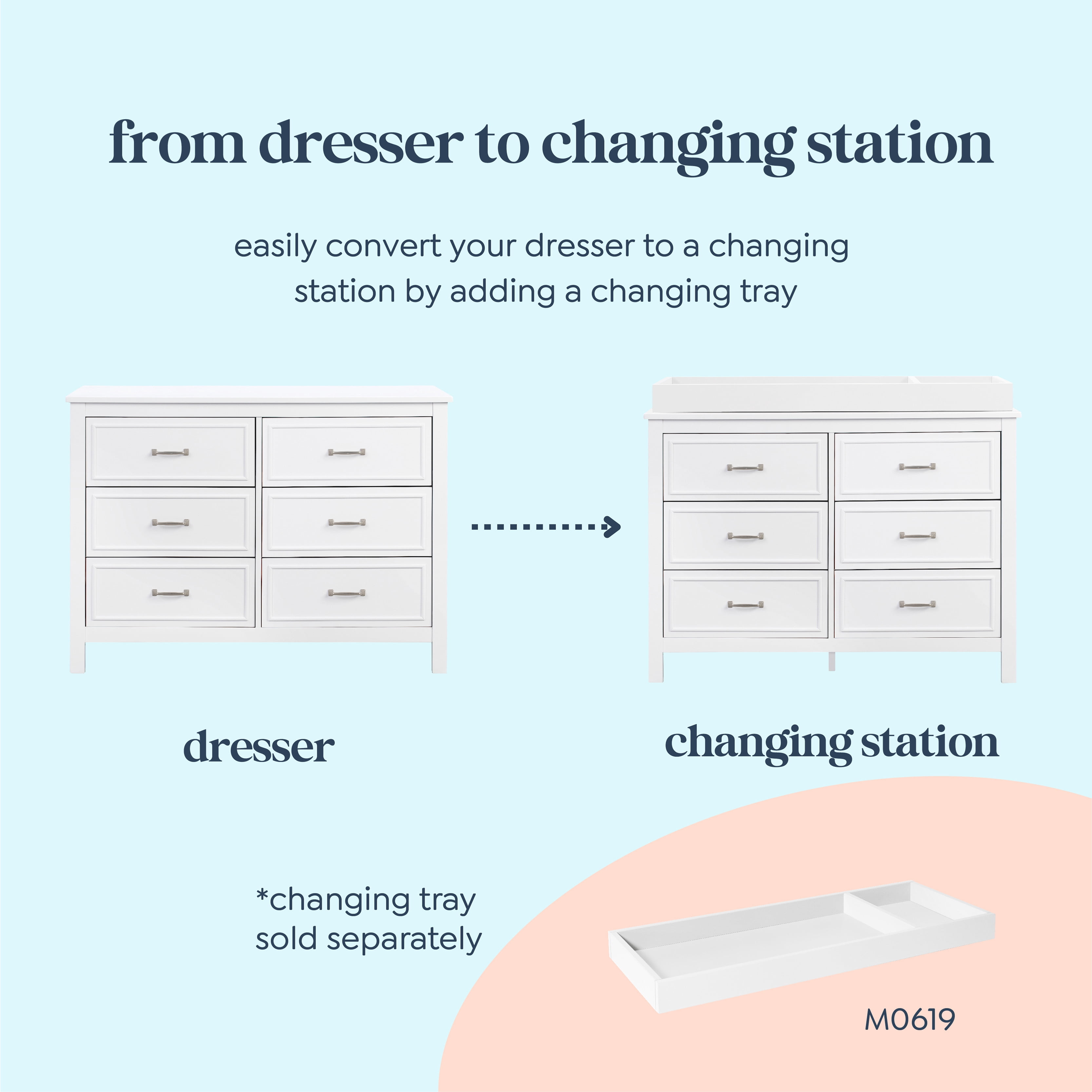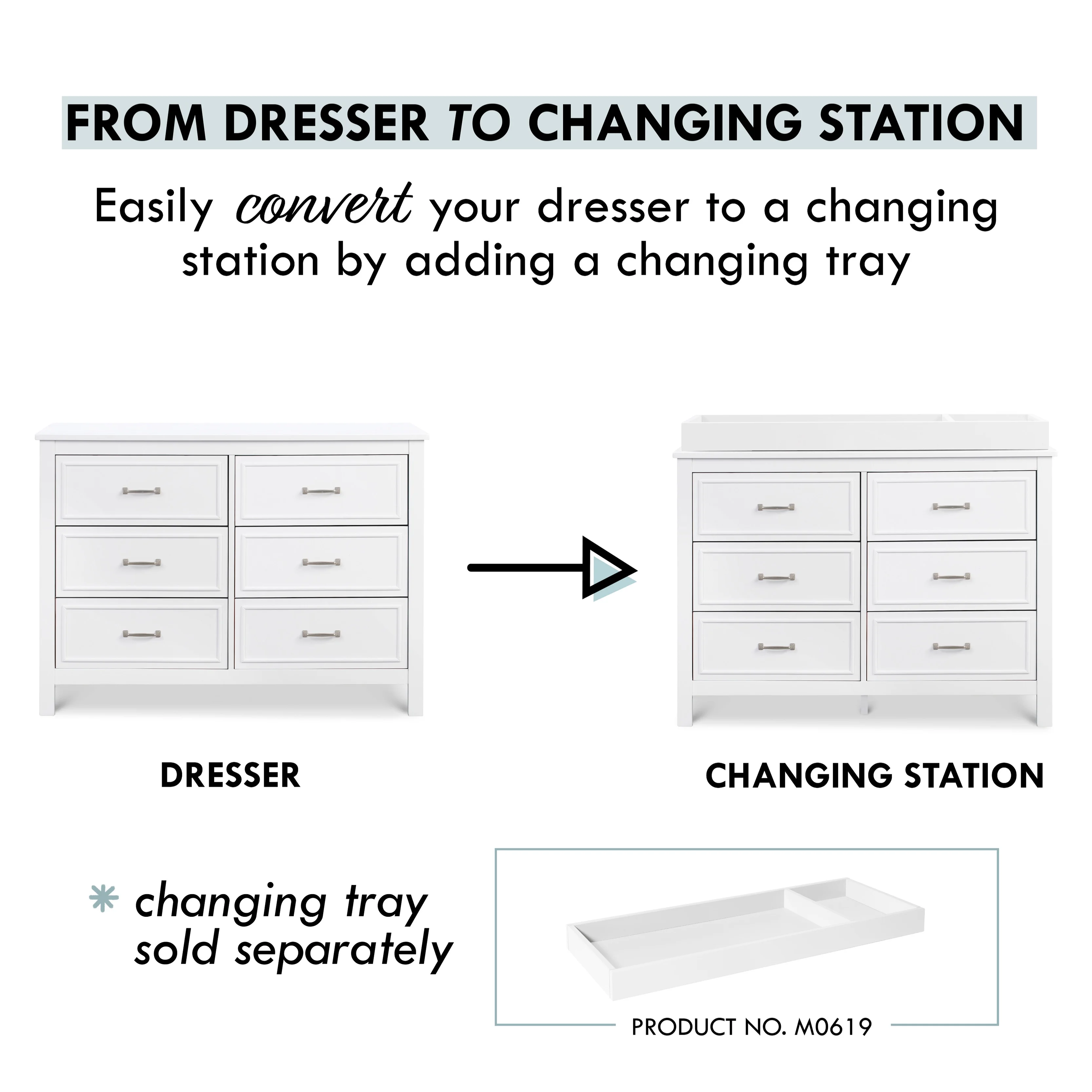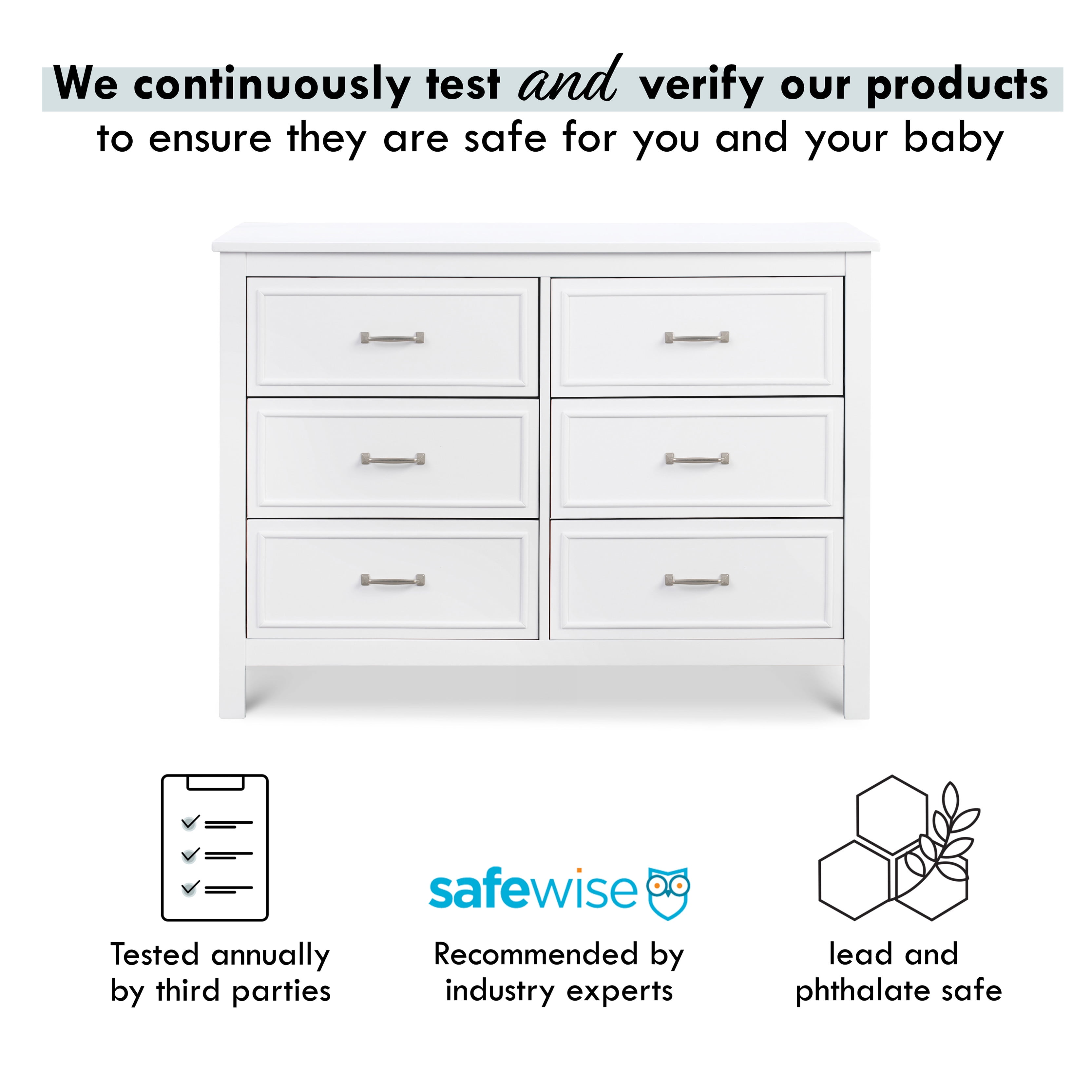 Features: DURABILITY: 6 spacious drawers that are built to hold all the adorable baby clothes, blankets, and more. VERSATILE DESIGN: Changing station now. Big kid dresser later! This dresser is designed so that you can add a DaVinci changing tray (#M0619) to use as a convenient changing station during the baby years. SMOOTH GLIDE: Euro drawer glides make opening the drawers easy even when your hands are full with your baby METAL PULLS: This dresser features upgraded metal pulls that protect it from easy nicks and damages Product Weight: 28.22 lbs QUALITY MATERIAL: Made of solid sustainable New Zealand pinewood and TSCA compliant engineered wood -only the best for your baby FOR YOUR BABY’S SAFETY: Say goodbye to toxic chemicals! Finished in a non-toxic multi-step painting process and lead and phthalate safe. Rest assured knowing it meets or exceeds ASTM International and U.S. CPSC safety standards. Stop mechanism and anti-tip kit included for additional safety EASY ASSEMBLY: We’ve done the hardest part for you! Drawer glides come pre-assembled so that you can put your dresser together more quickly and start enjoying your nursery sooner