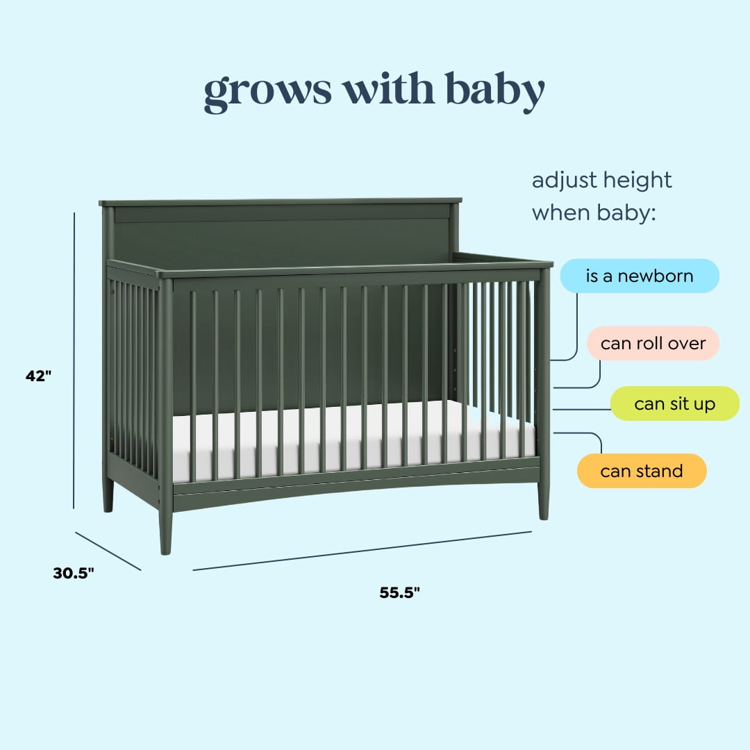 4-in-1 CONVERTIBILITY: Designed to save you the hassle (and extra money!) of buying multiple beds as your little one grows. Easily converts to a toddler bed, daybed, and full-size bed (toddler kit #M19699 and full-size kit #M5789 sold separately) GROWS WITH BABY: 4 adjustable mattress positions that you can lower as your baby begins to sit and stand. We’ve built this crib to withstand even the most active babies and toddlers and last through your child’s teen years QUALITY MATERIAL: Made of 100% solid sustainable New Zealand pine wood -only the best for your sweet baby FOR YOUR BABY’S SAFETY: Say goodbye to toxic chemicals! Finished in a non-toxic multi-step painting process and lead and phthalate safe. Rest assured knowing it meets or exceeds ASTM International and U.S. CPSC safety standards