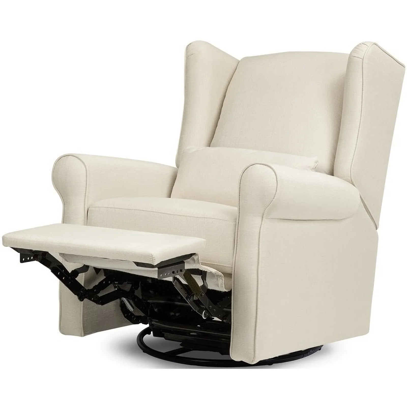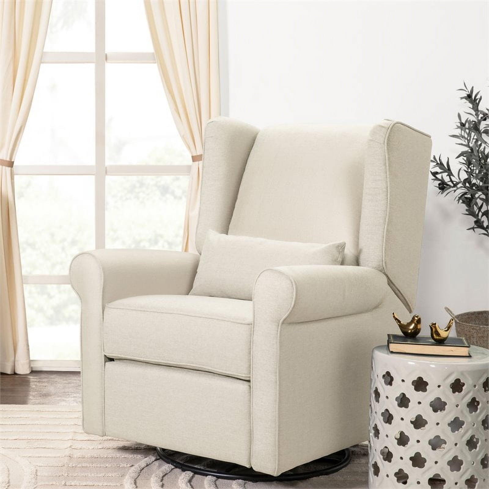 DaVinci Hayden Glider Rocking Chair with 360-Degree Swivel and Recline, Indoor, Off-White DaVinci Hayden Recliner and Swivel Glider GREENGUARD GOLD CERTIFIED, ensuring a healthier indoor environment for your baby Features a metal base for smooth 360-degree swivel motion and gentle gliding Hidden reclining mechanism for a stylish look with easy leg rest operation Upholstery is free of toxic chemicals, including PBDEs and Formaldehyde Meets all CA TB117-2013 flammability requirements High back headrest provides comfort for parents of all heights