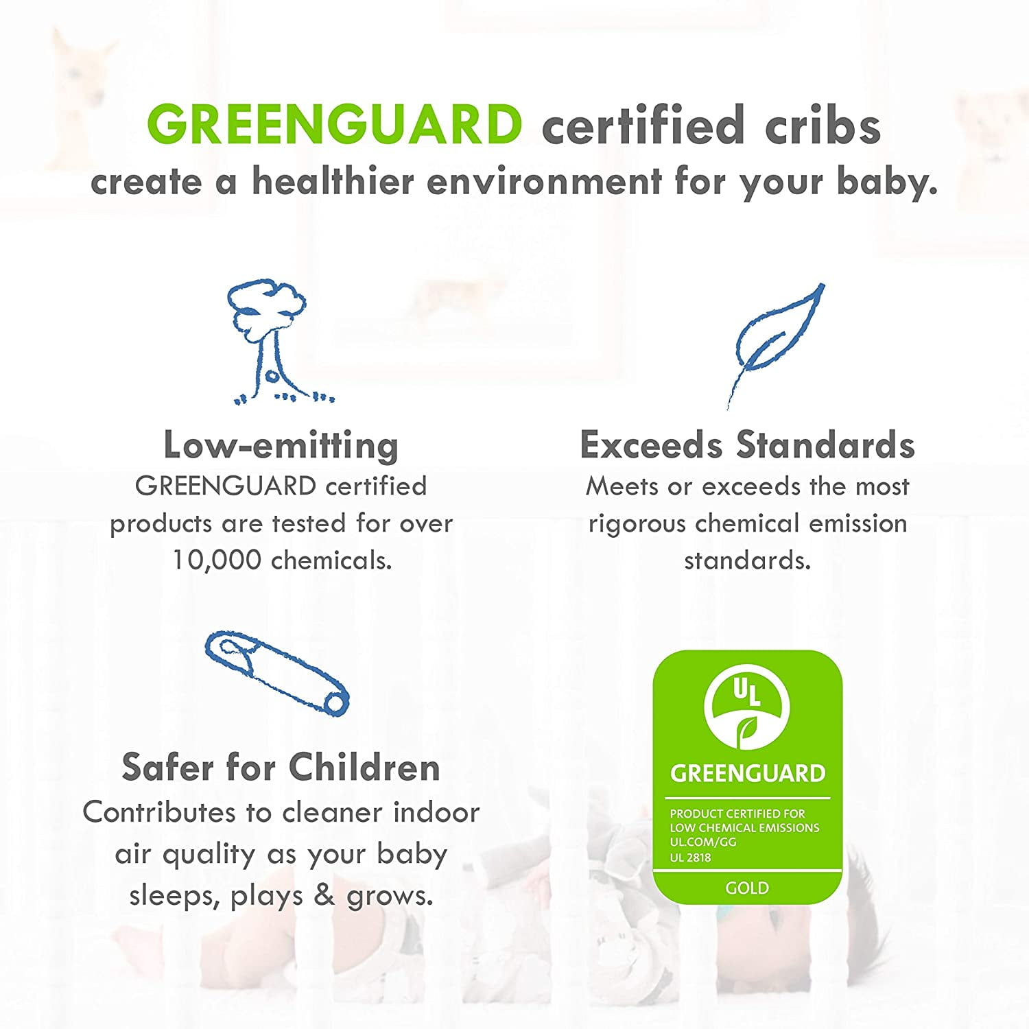 Imported GREENGUARD Gold Certified: This product has been tested for chemicals It contributes to cleaner indoor air creating a healthier environment for your baby to sleep play and grow GROWS WITH BABY: Four adjustable mattress positions that can be lowered as your baby begins to sit and stand Easily converts to toddler bed daybed and full-size bed (toddler kit M3899 and full-size kit M4799 sold separately) FOR YOUR BABY’S SAFETY: Say goodbye to toxic chemicals Finished in a non-toxic multi-step painting process and lead and phthalate-safe MATTRESS COMPATIBILITY: While this crib is a standard size regular crib for the best fit we recommend DaVinci’s line of non-toxic, and waterproof mattresses