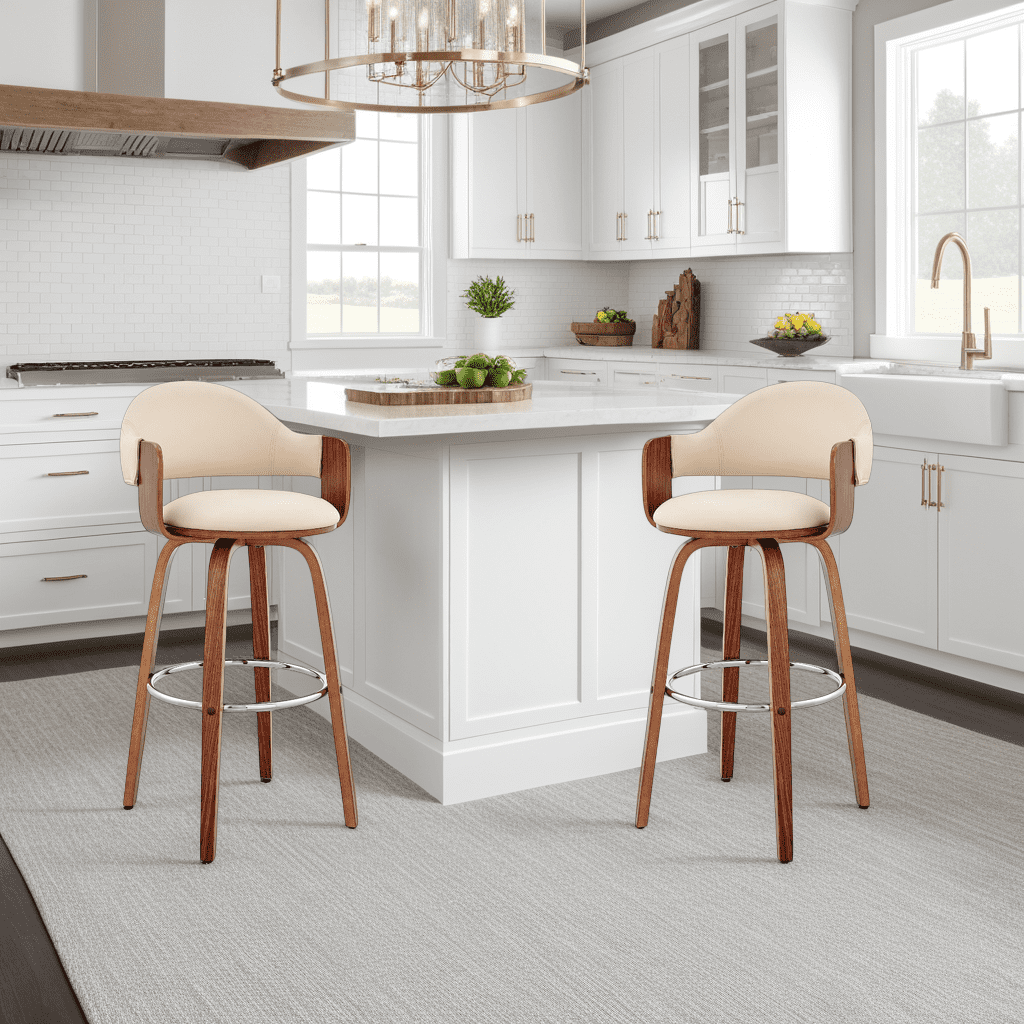 Daxton 26″ Cream Faux Leather and Walnut Wood Bar Stool