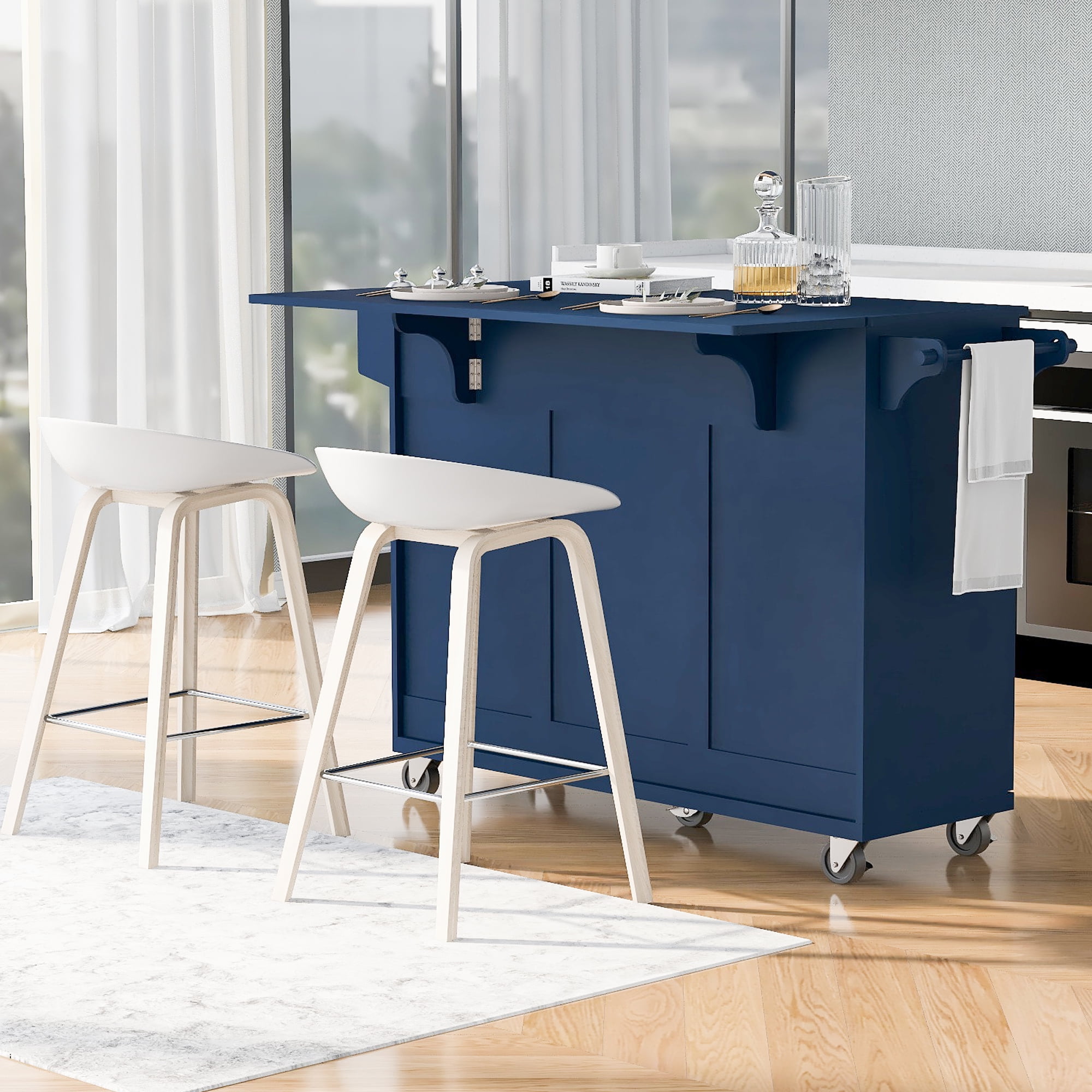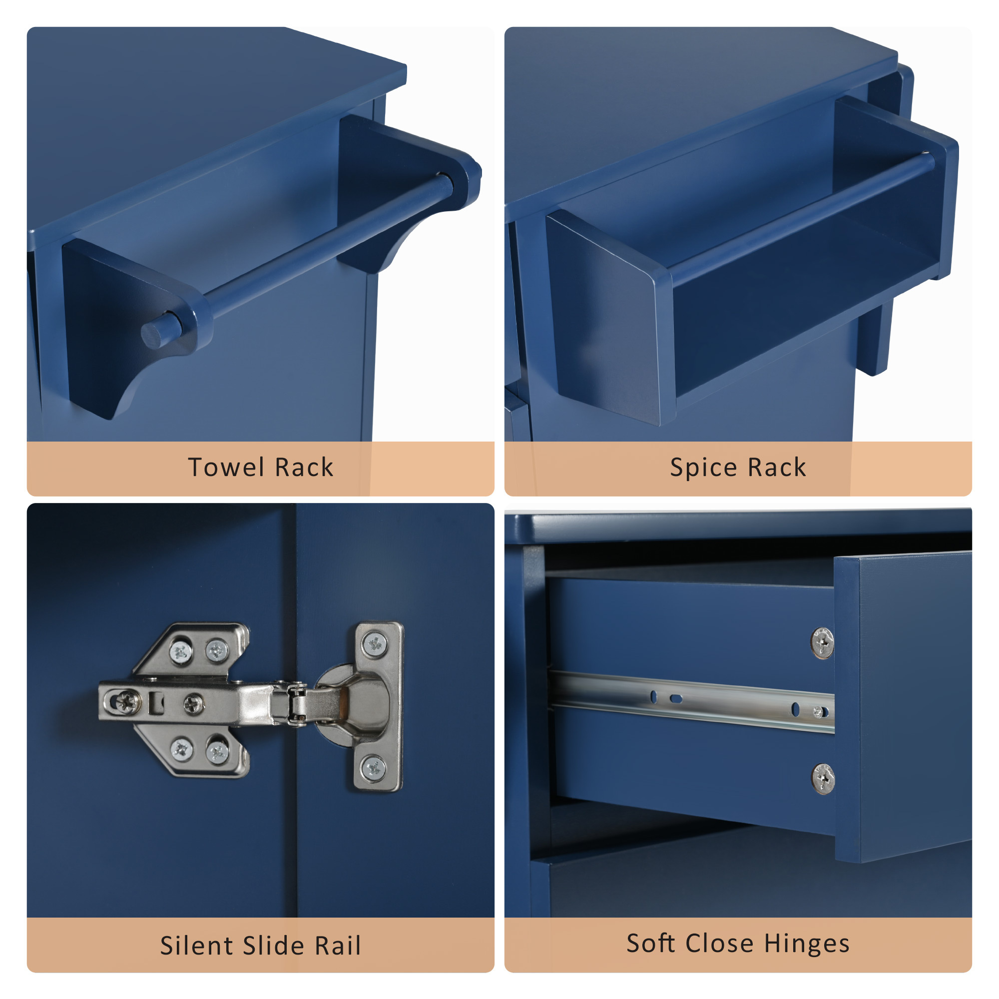DEALTOPS 53.2” Rolling Kitchen Island with 3 Doors & 2 Drawers & Adjustable Shelves & Drop-leaf Tabletop for Dining Room-Blue