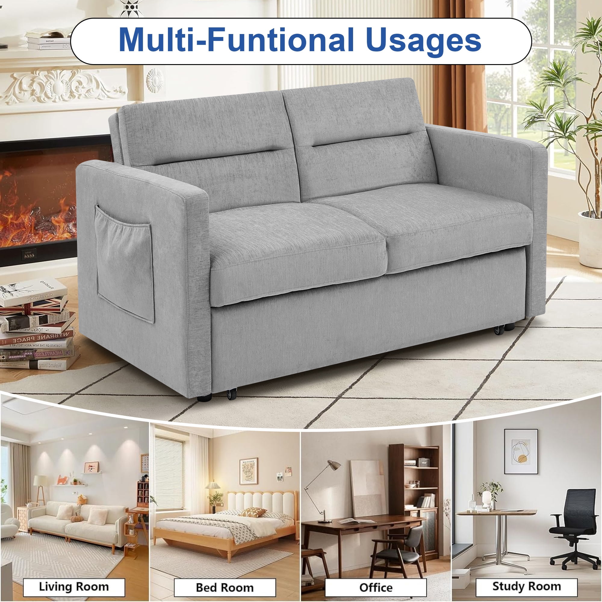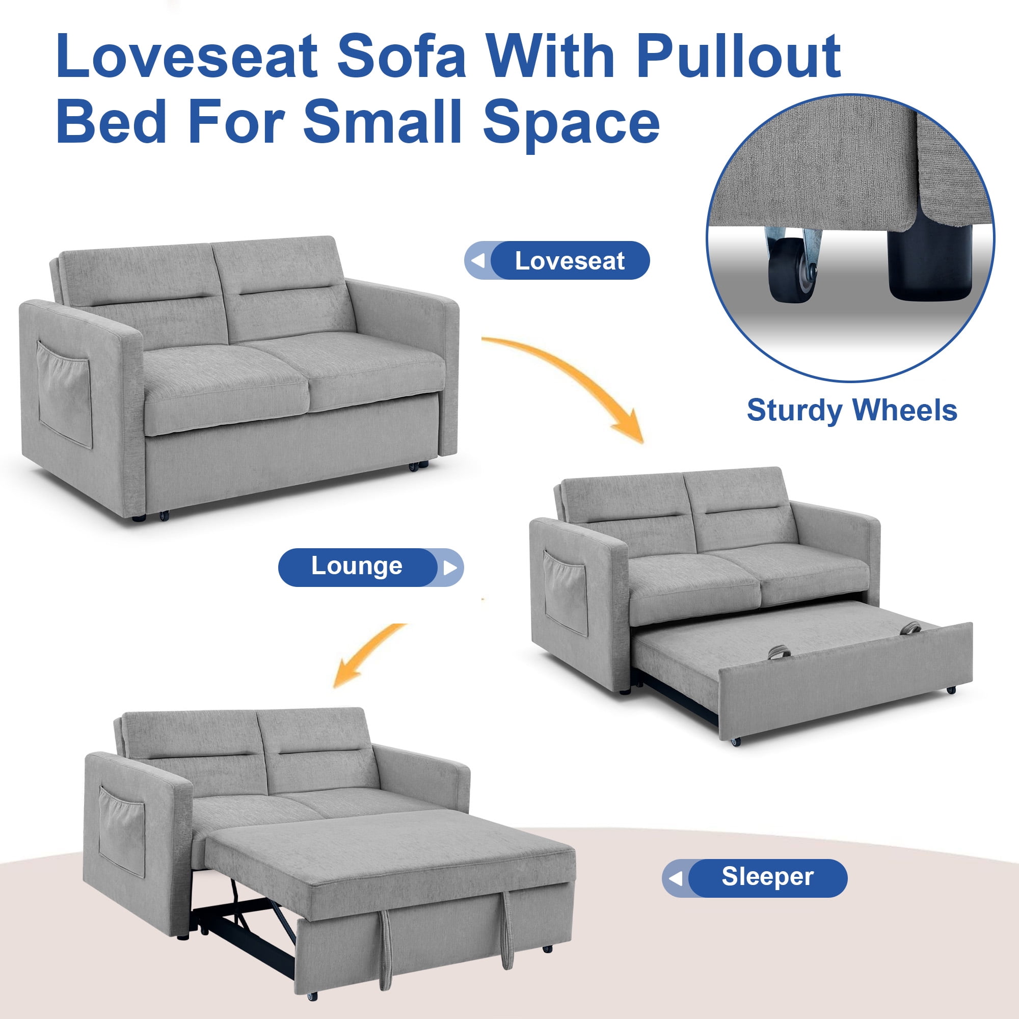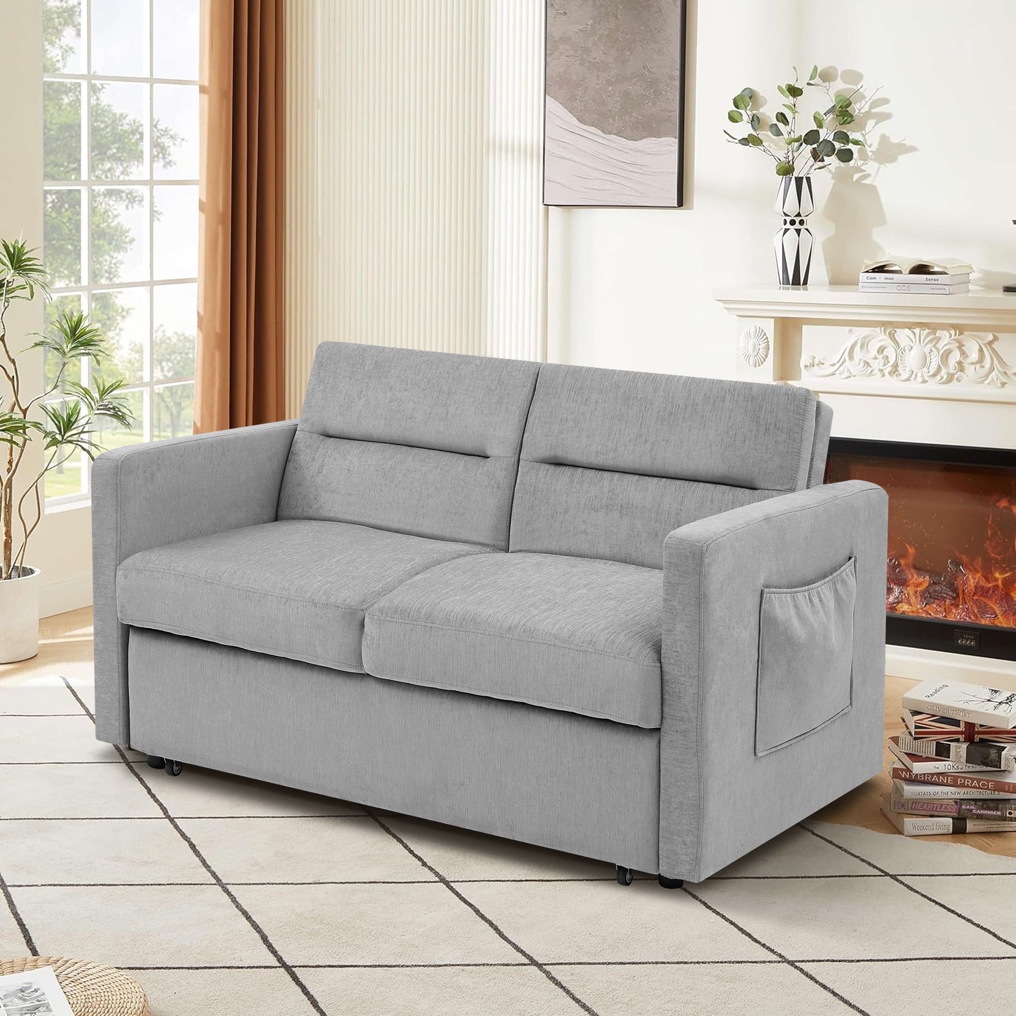 DEALTOPS Convertible Pull Out Sofa Bed, Adjustable Loveseat Sleeper with Side Pockets, Gray