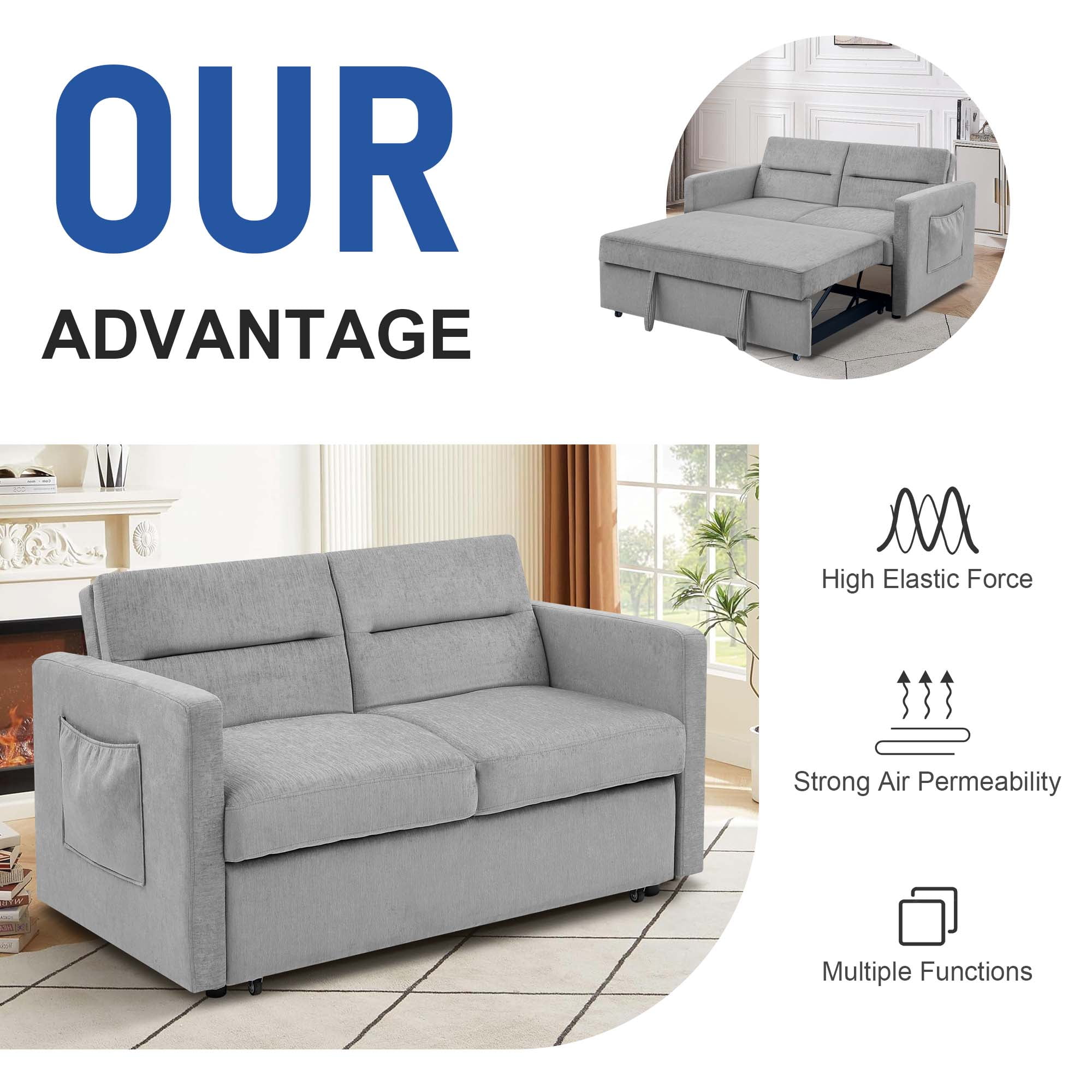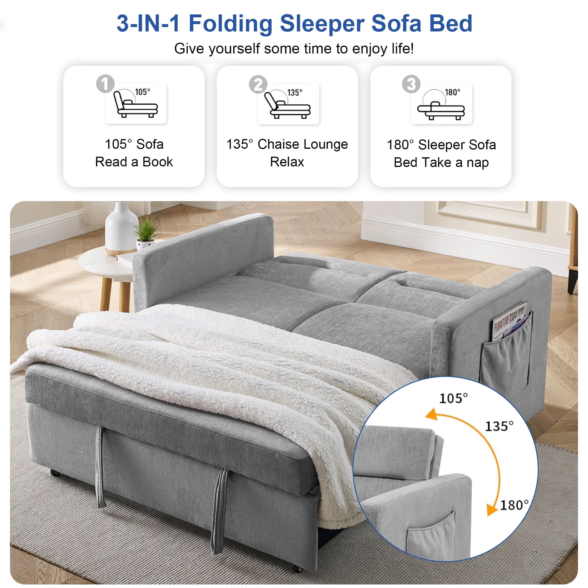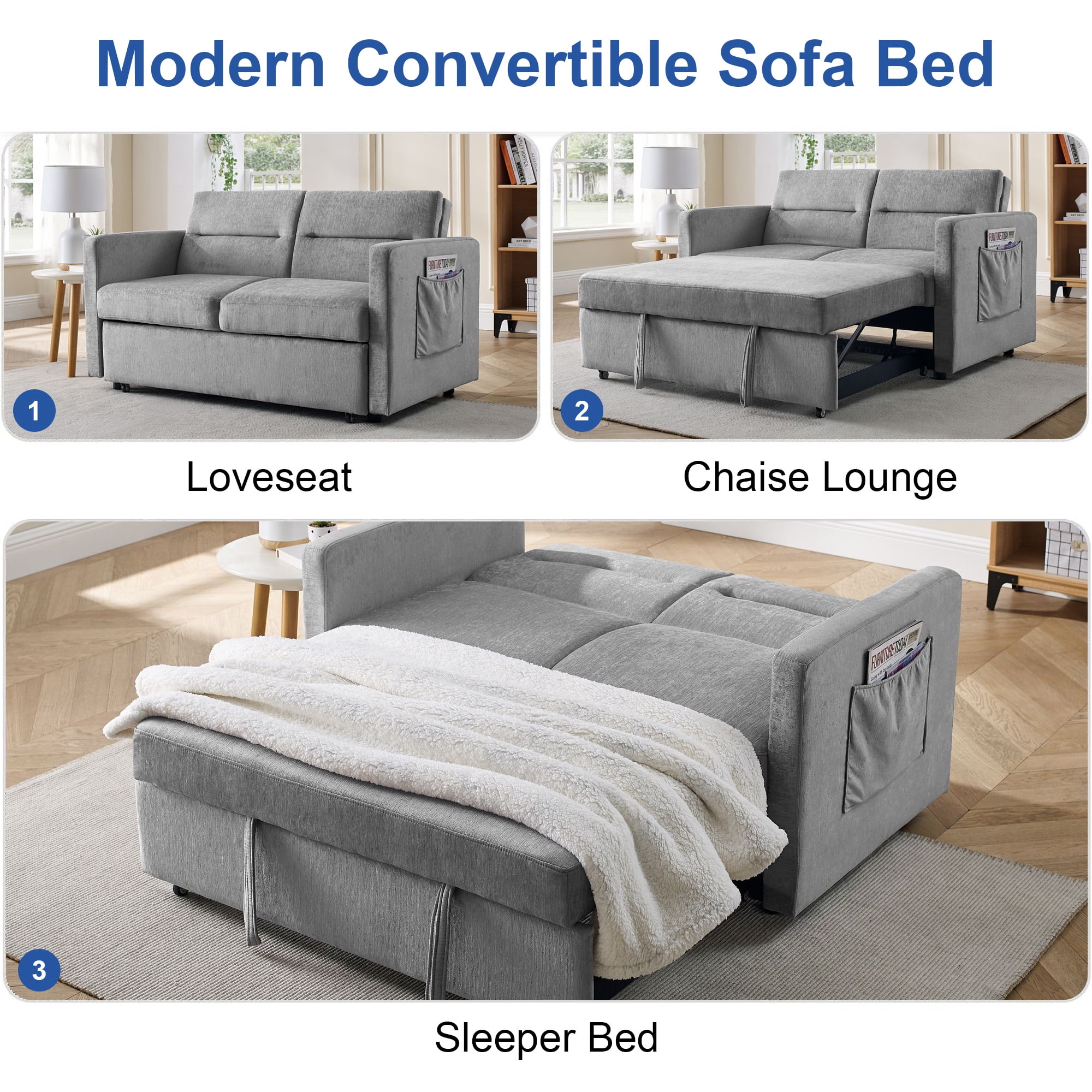 DEALTOPS Convertible Pull Out Sofa Bed, Adjustable Loveseat Sleeper with Side Pockets, Gray