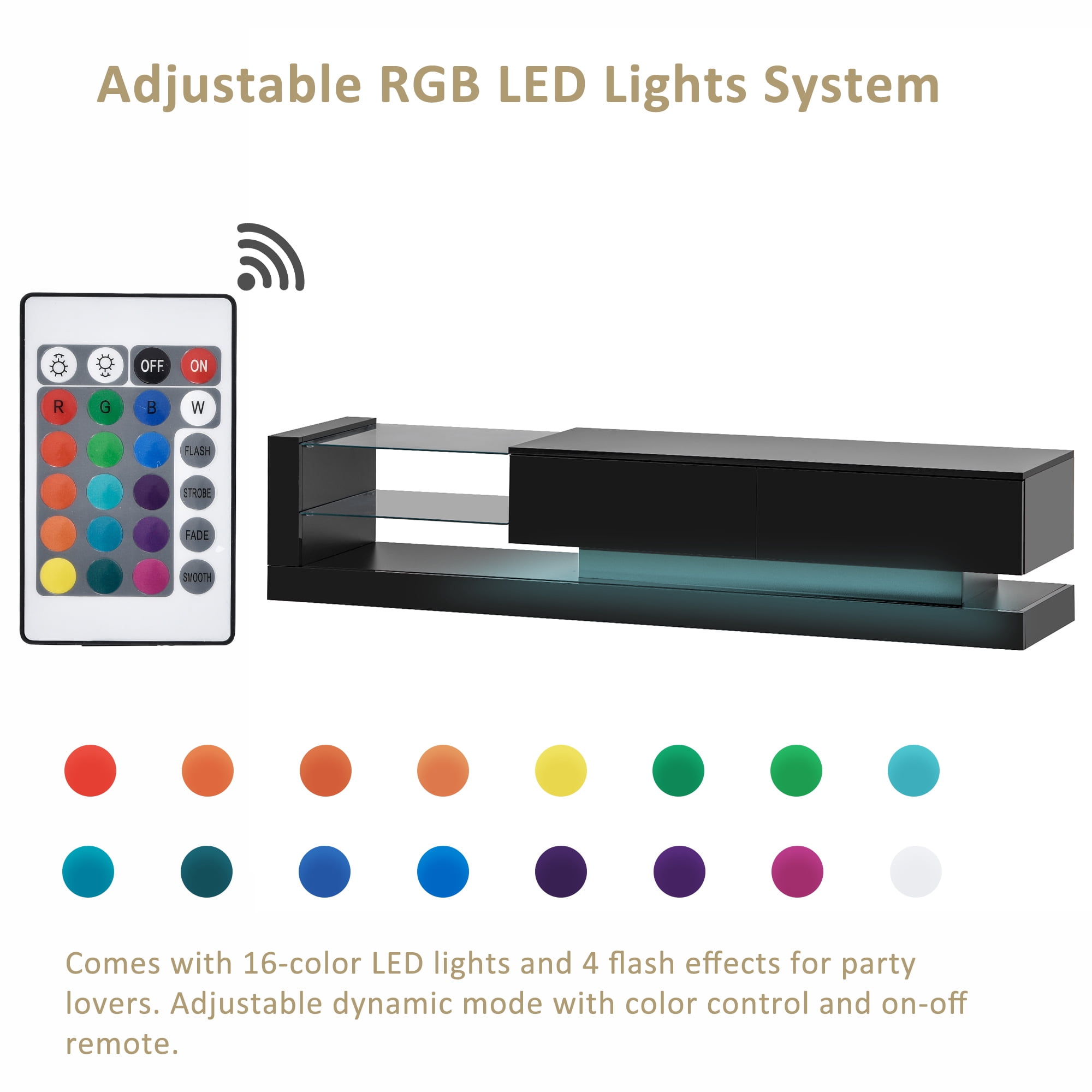 DEALTOPS Modern High Gloss TV Stand with Storage Cabinets and 16-Color RGB LED Lights for TVs up to 75” – Black